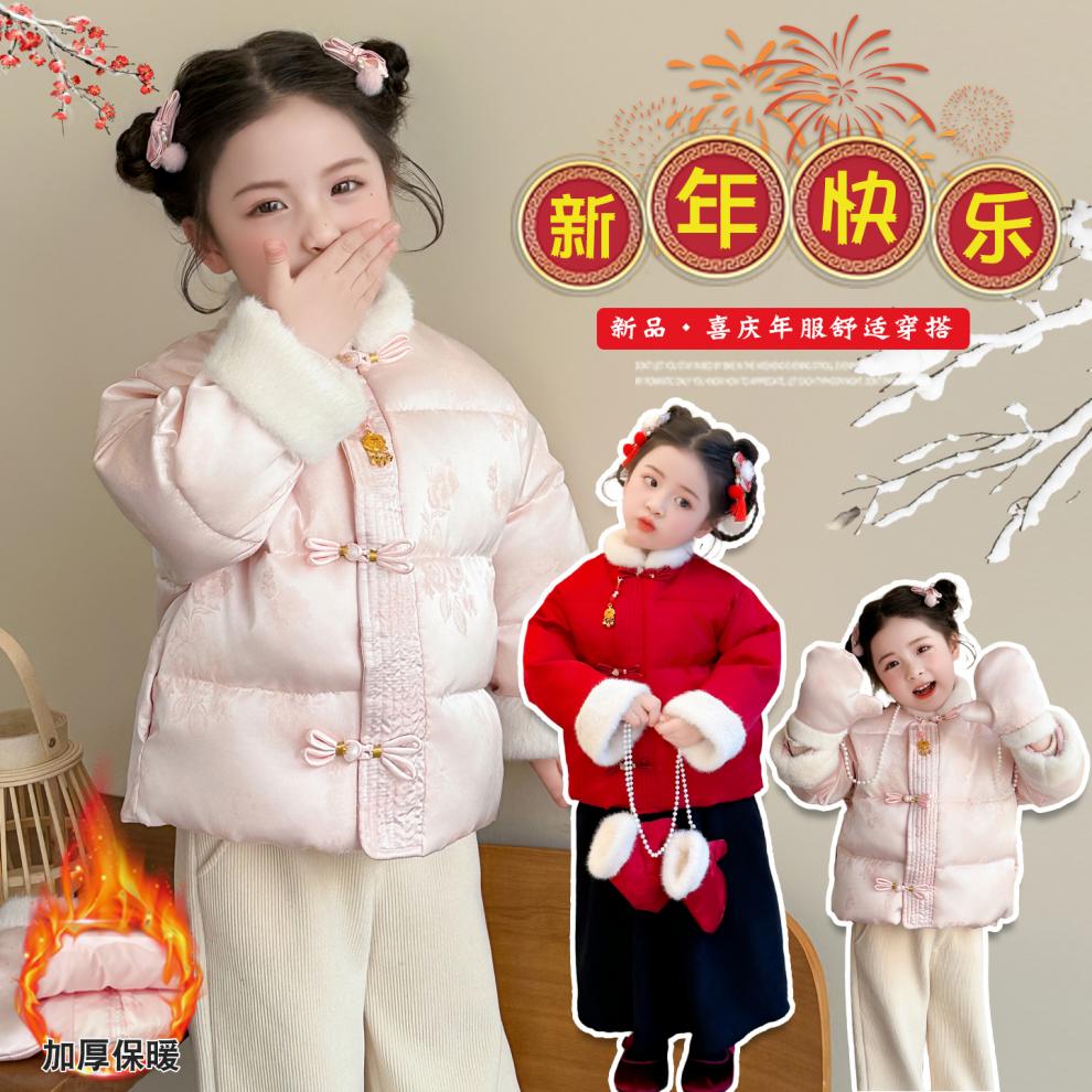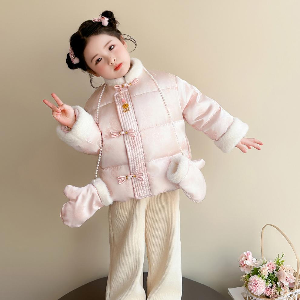 G.duck Little Yellow Duck Girls Chinese Style Cotton Clothes Winter 2026 New Children's Hanfu New Chinese New Year Clothes Jacket Baby Over Pink 90 cm