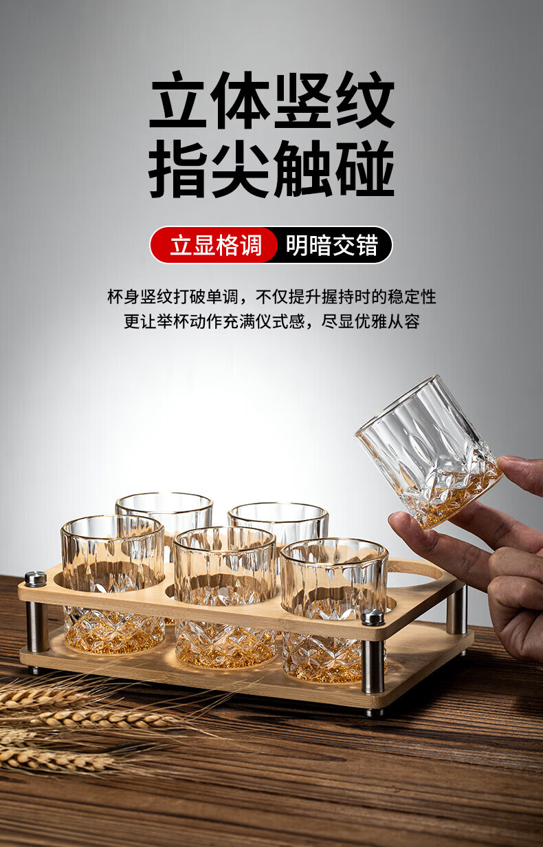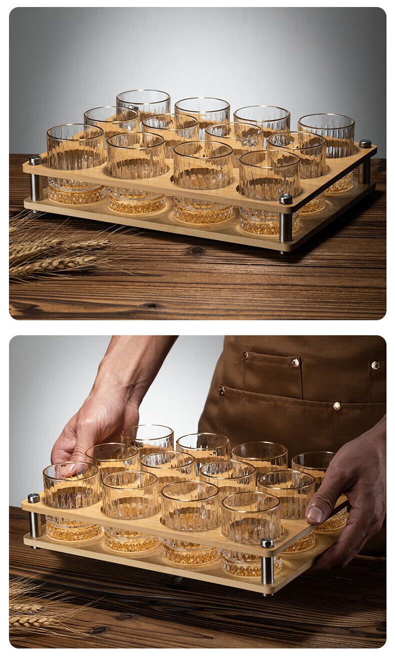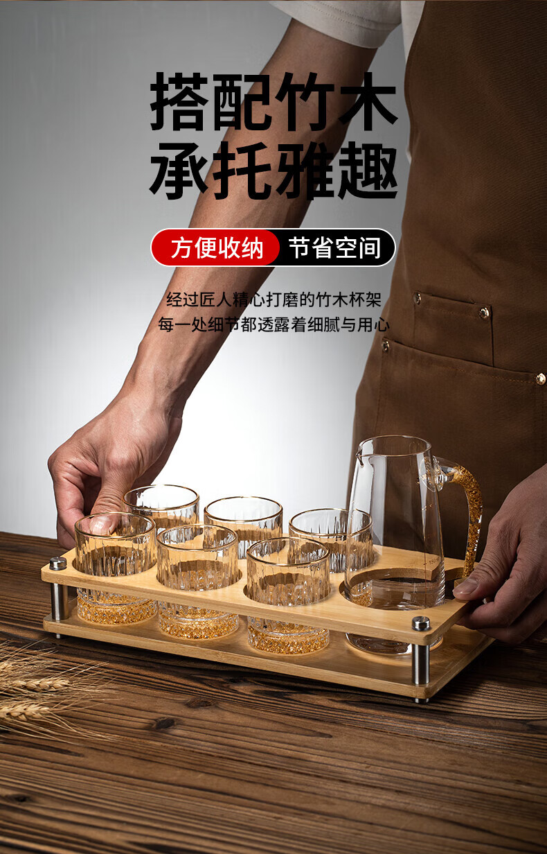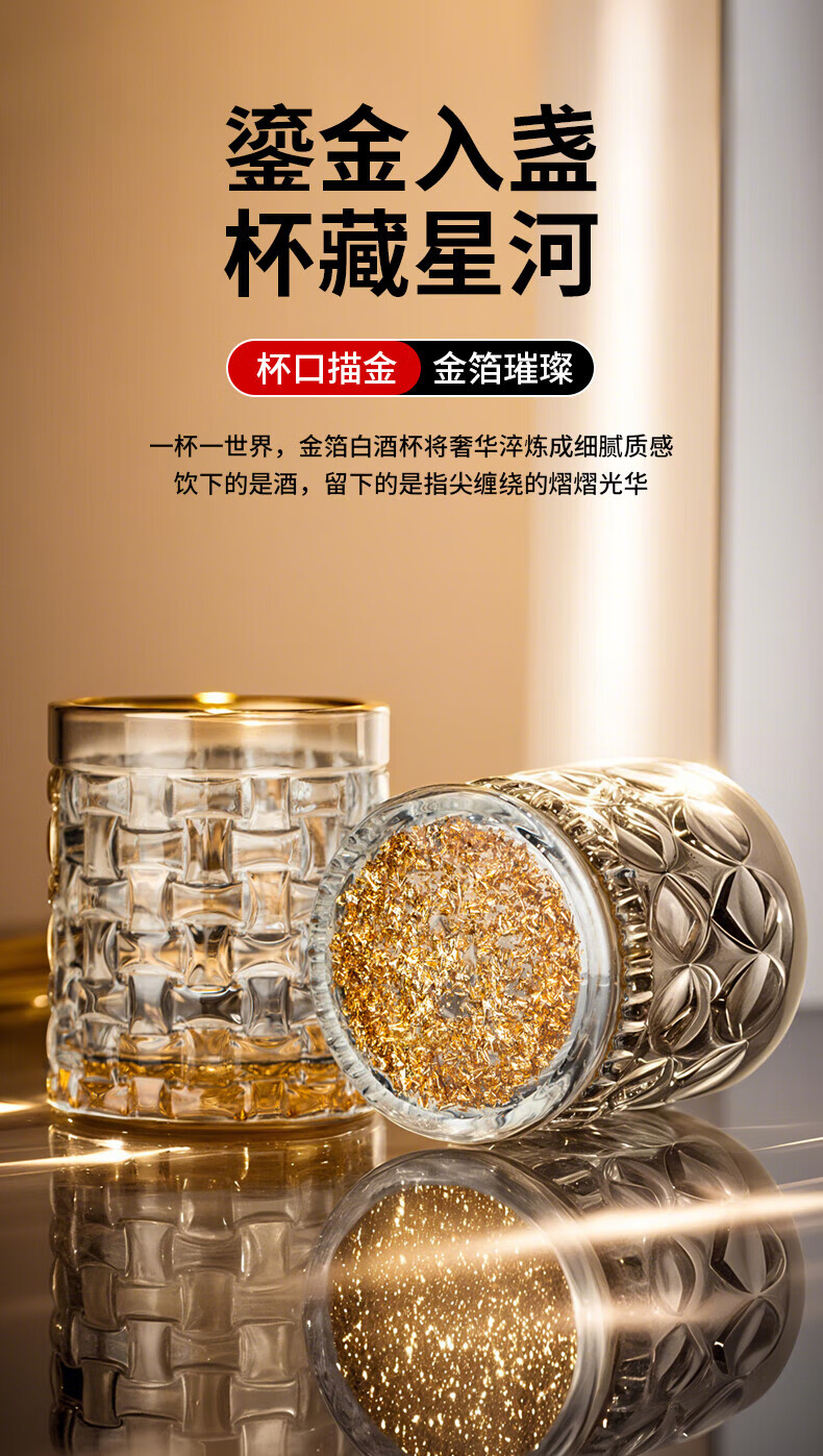 Green Apple (QINGPINGGUO) same style 2 Liang wine glasses for household liquor crystal glass Chinese style 100ml wine set with stand foreign wine glasses bamboo rattan cup 12 pieces gold rim gold bottom + cup holder