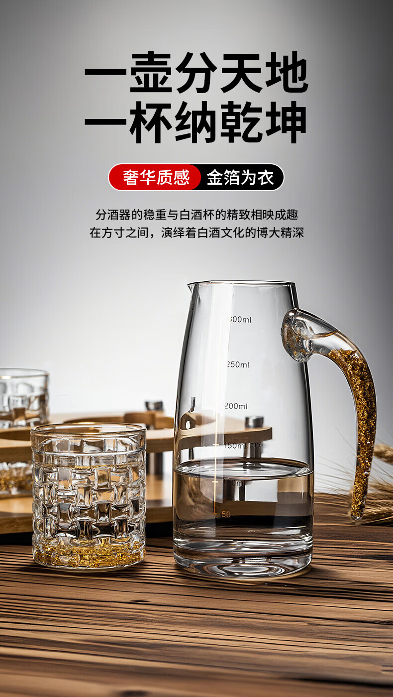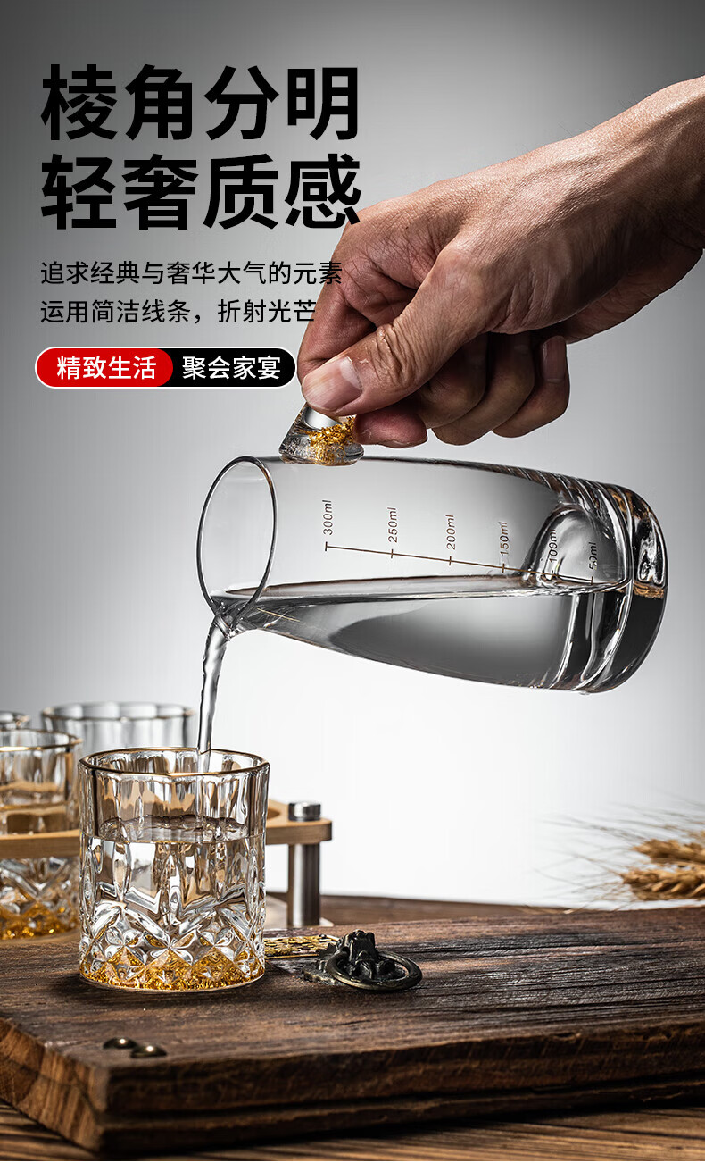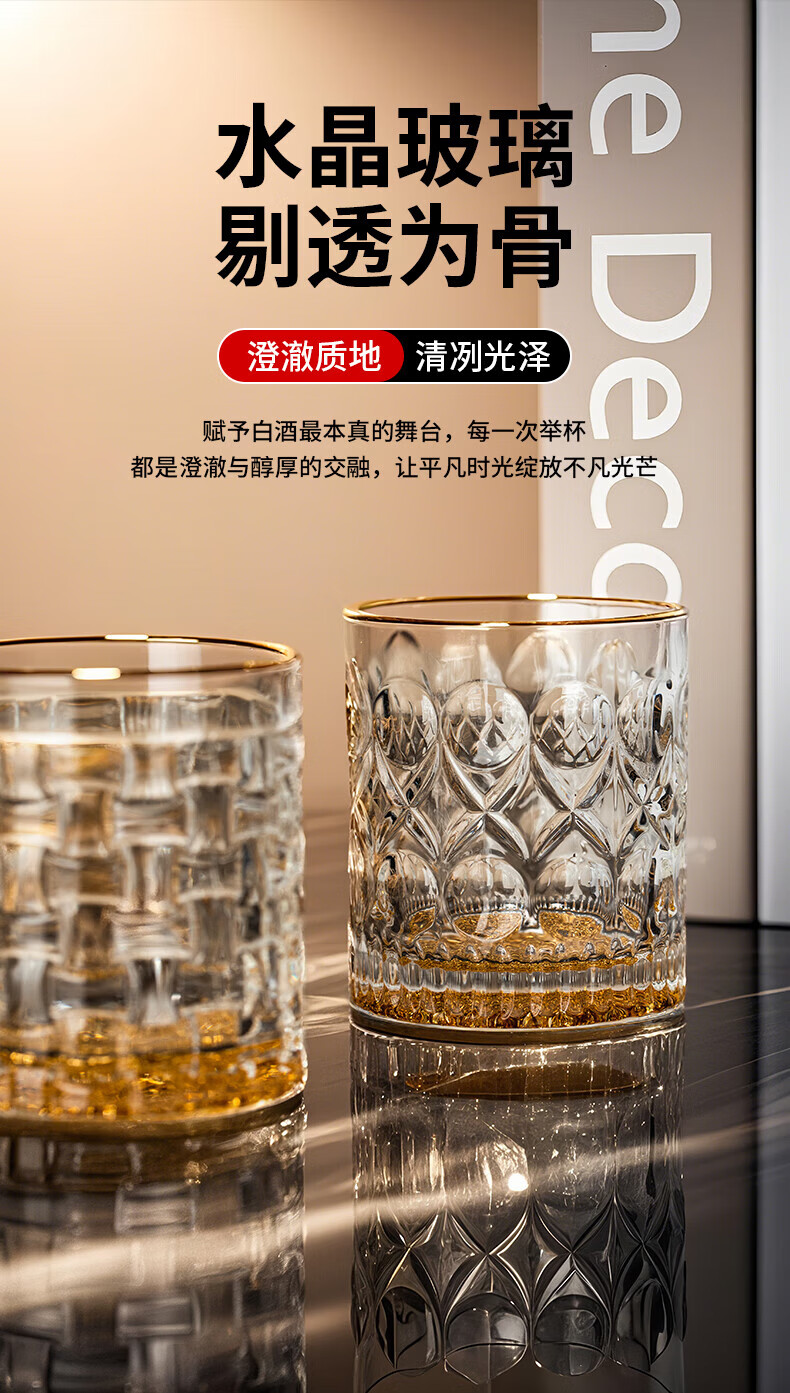 Green Apple (QINGPINGGUO) same style 2 Liang wine glasses for household liquor crystal glass Chinese style 100ml wine set with stand foreign wine glasses bamboo rattan cup 12 pieces gold rim gold bottom + cup holder