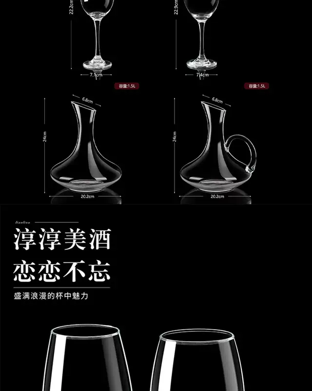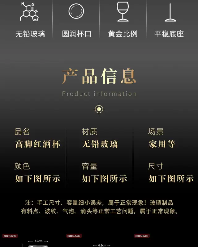 Yusenyi household thickened red wine decanter set commercial large and small red wine cup glass goblet wine glass (thickened glass) red wine cup 320ml (pack of 6)