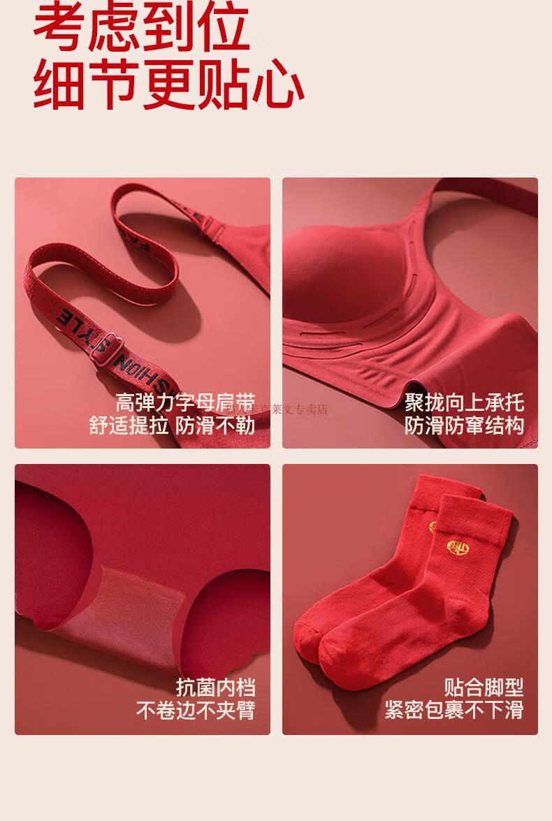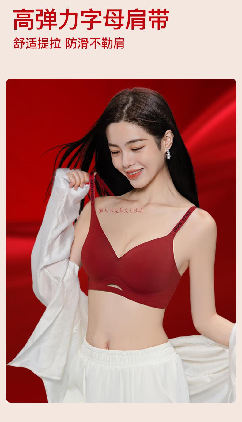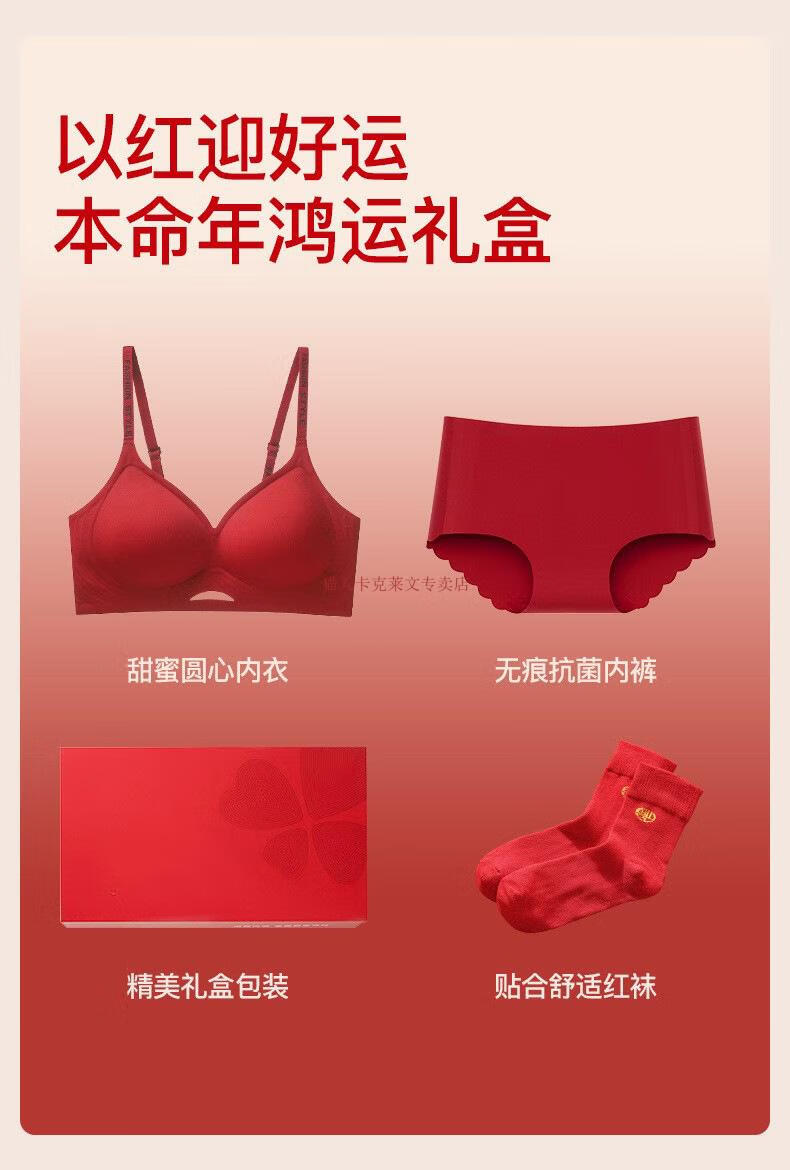Yalu zodiac year red underwear female horse year bride wedding seamless small breast push-up bra set gift box two / set #999 legendary wine red - sweet circle center / underwear + underwear S recommended 32AB
