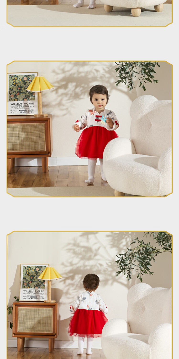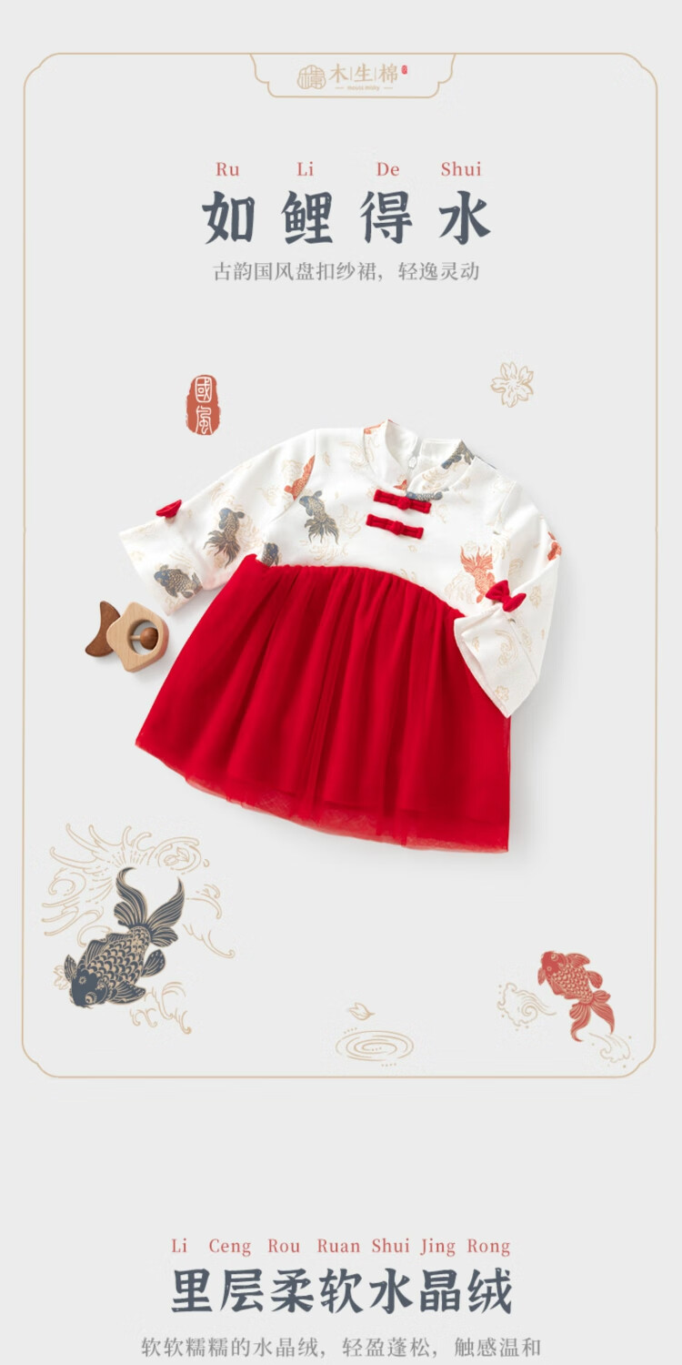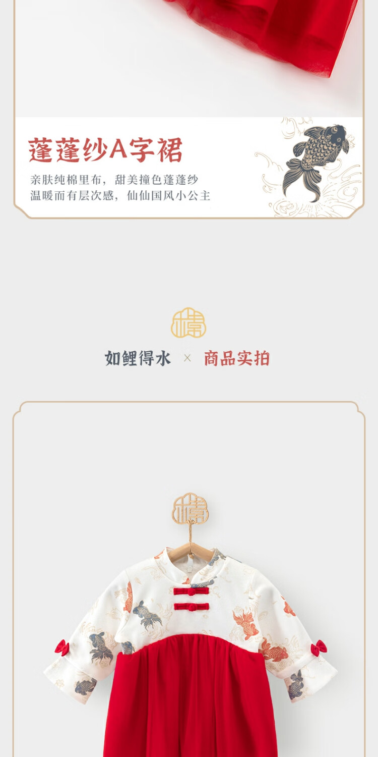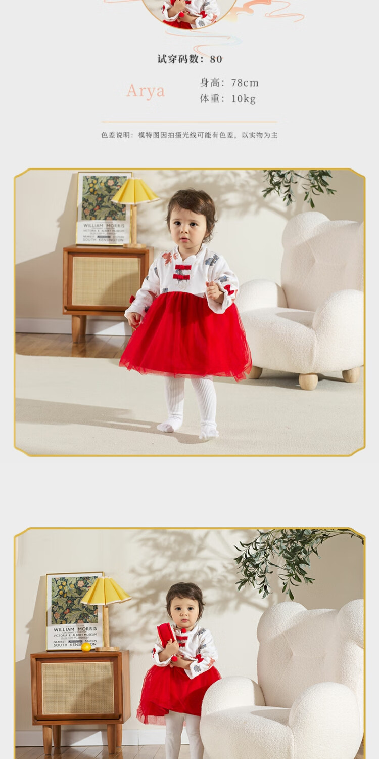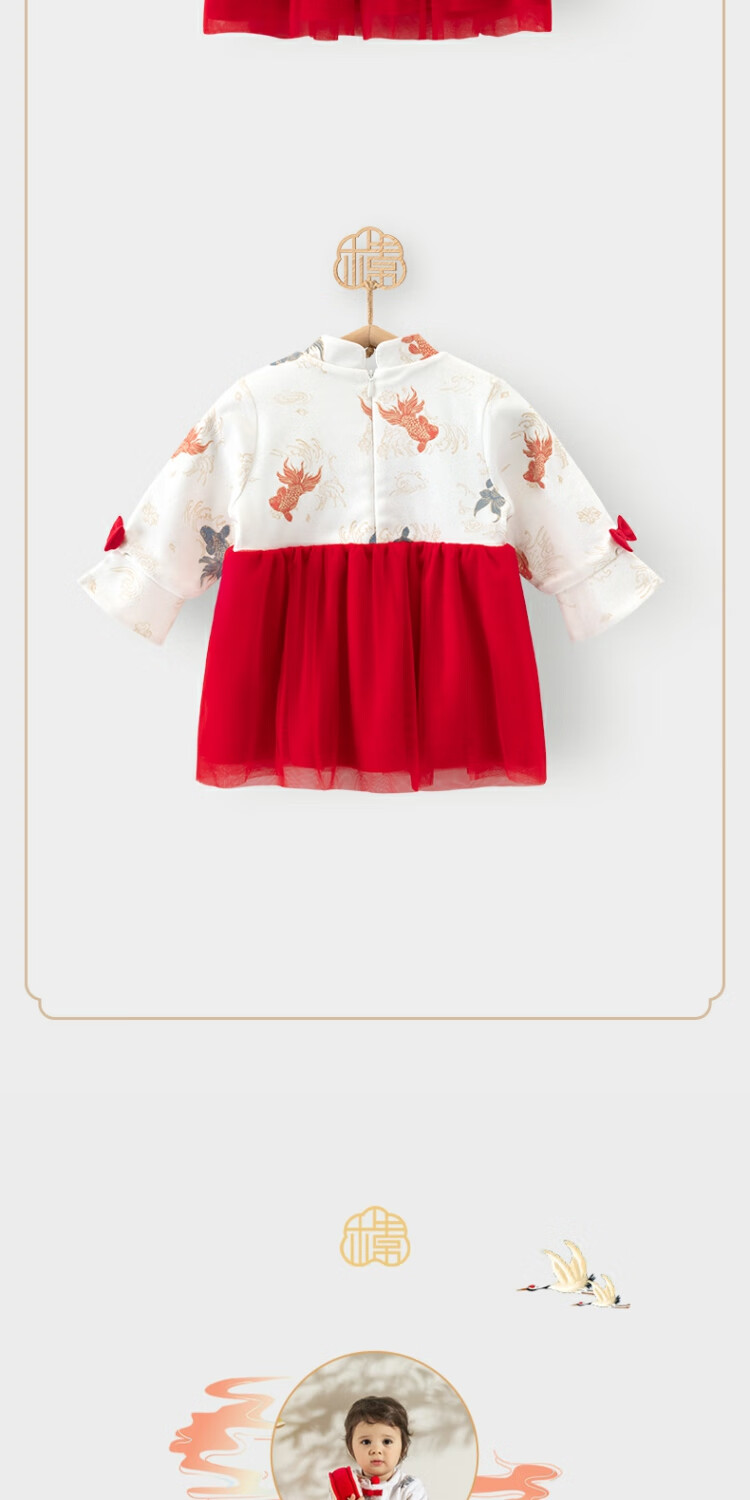 Wooden cotton baby girl velvet dress autumn and winter warm Hanfu skirt baby Chinese one-year-old dress gauze skirt princess skirt white / Ruli De Shui 90 cm