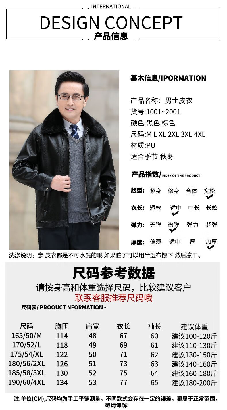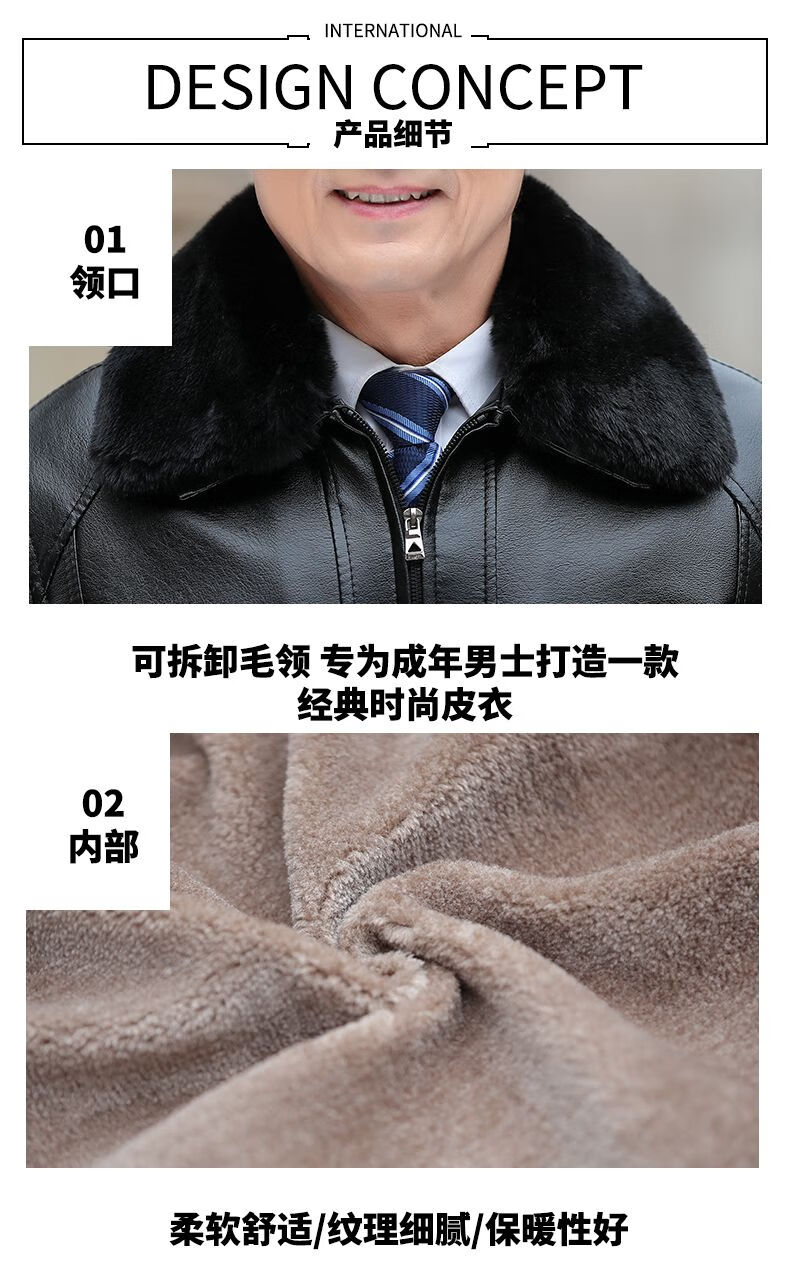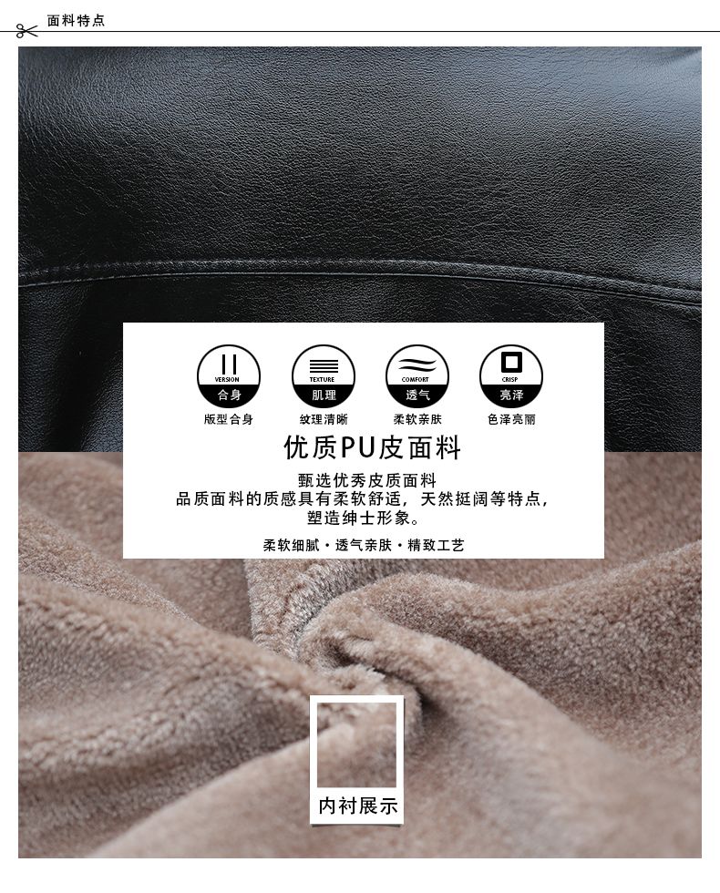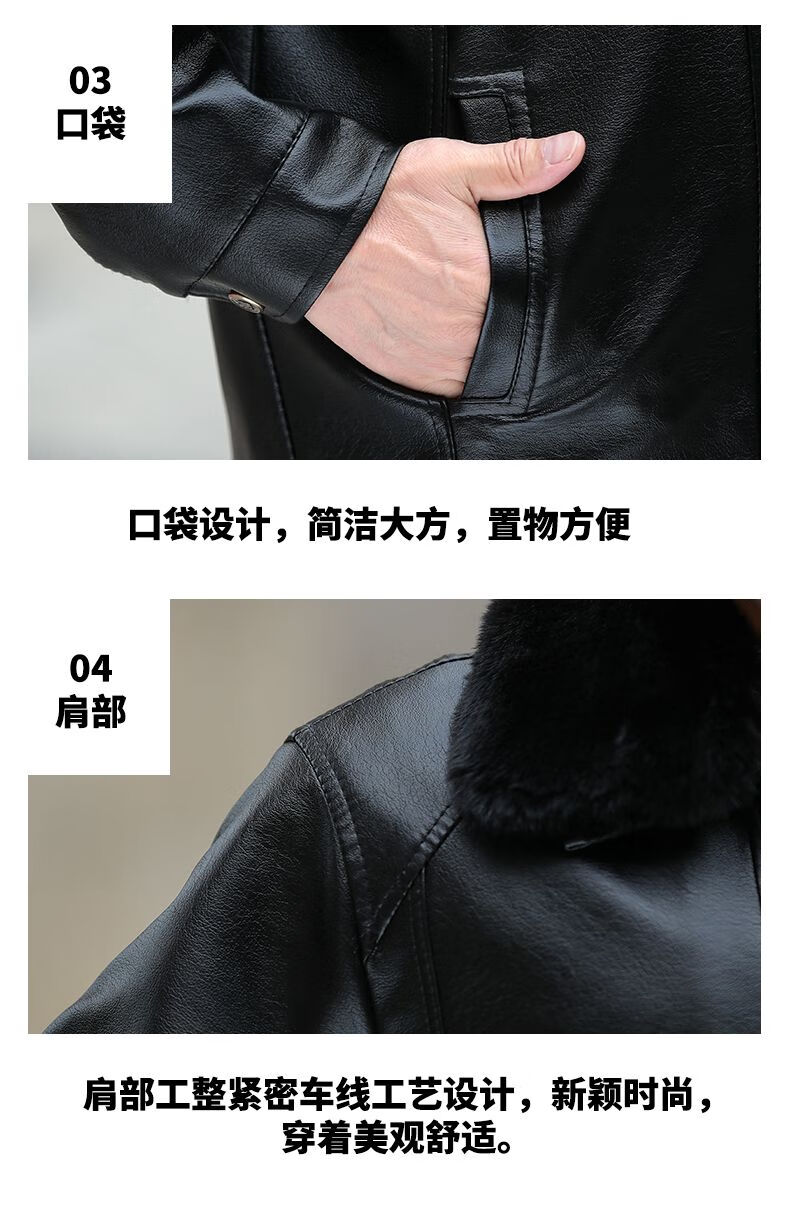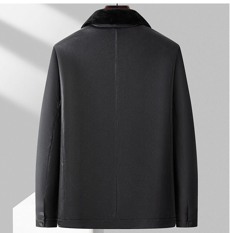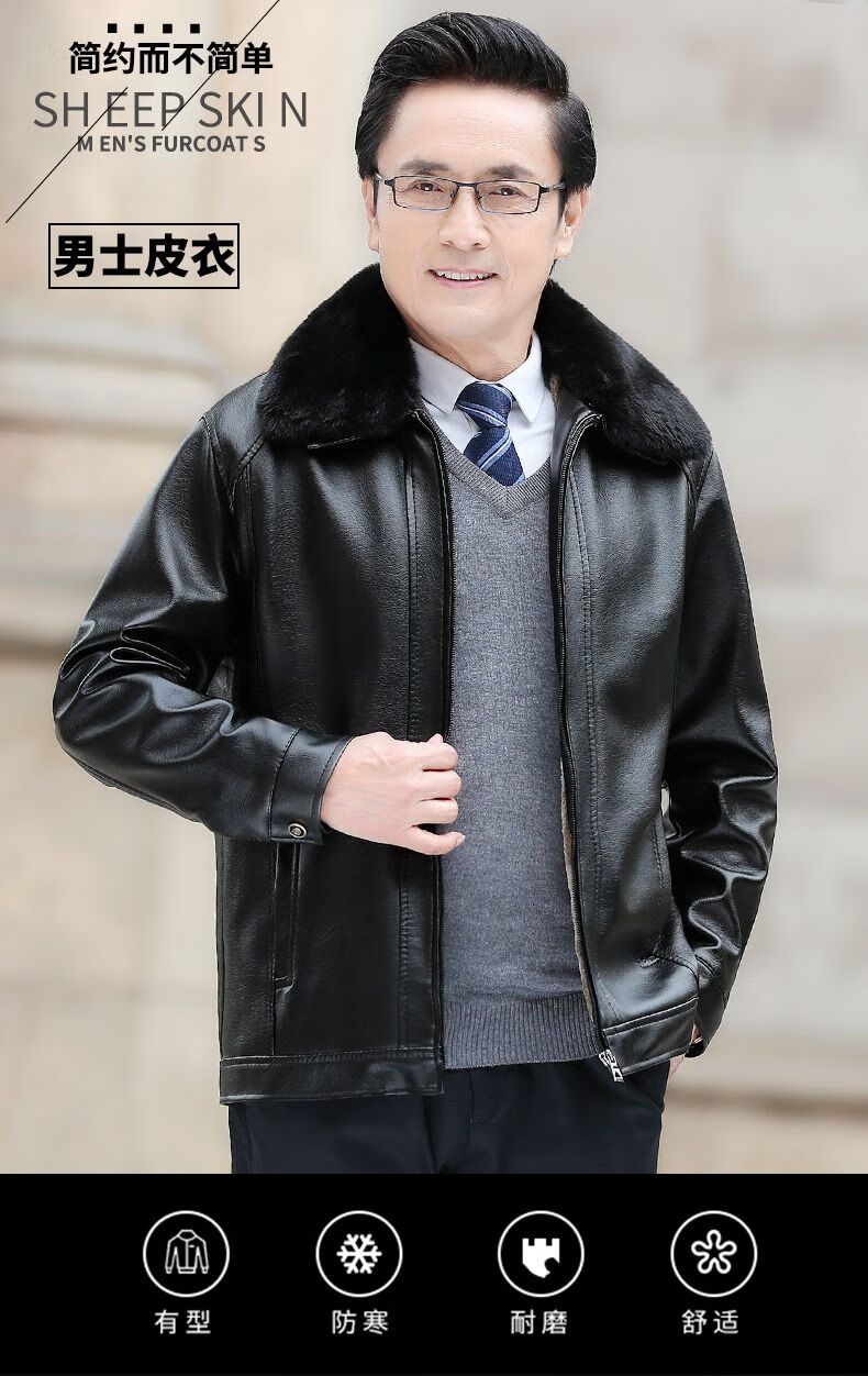 Playboy middle-aged men's leather jacket plus velvet thickened men's casual leather jacket loose large size PU leather jacket middle-aged and elderly dad's outfit black L 175/54 size 130-150Jin Jin equals 0.5 kg