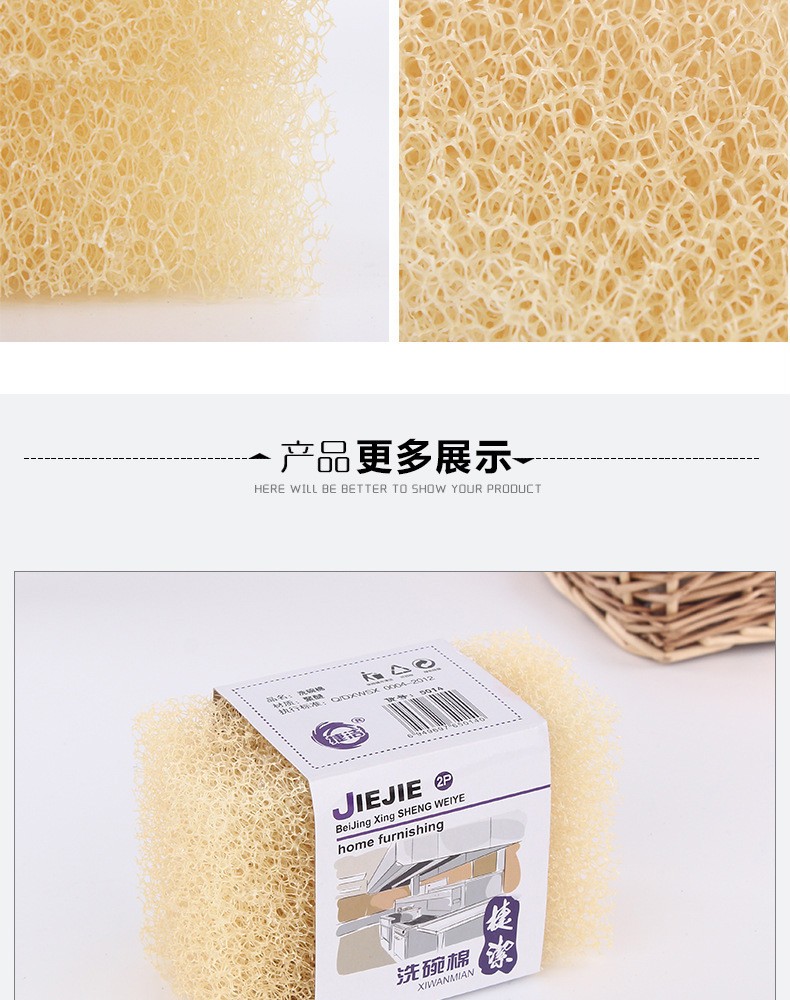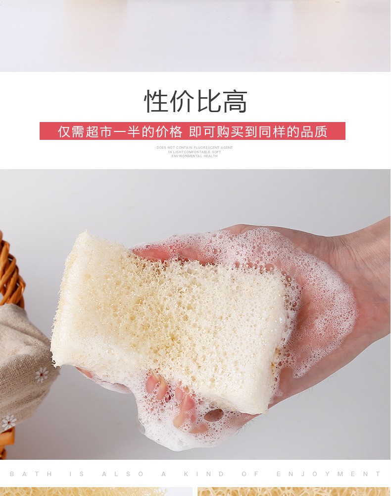 LNGA LANDGRE Large Hole Imitation Loofah Dishwashing Sponge Large Hole Dishwashing Cotton Kitchen Cleaning and Decontamination Non-stick Oil Pan Sponge Scrub Beige (Pack of 4) 12*7.5*3cm