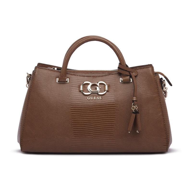 GUESS women's handbag zipper closure removable shoulder strap multi-compartment design lightweight carry brown crocodile pattern Braun ONE SIZE