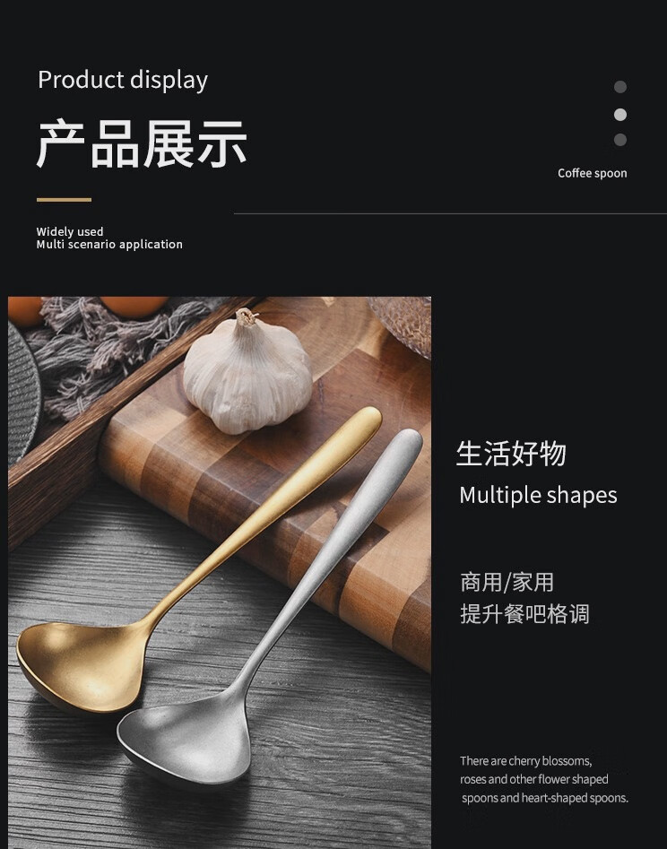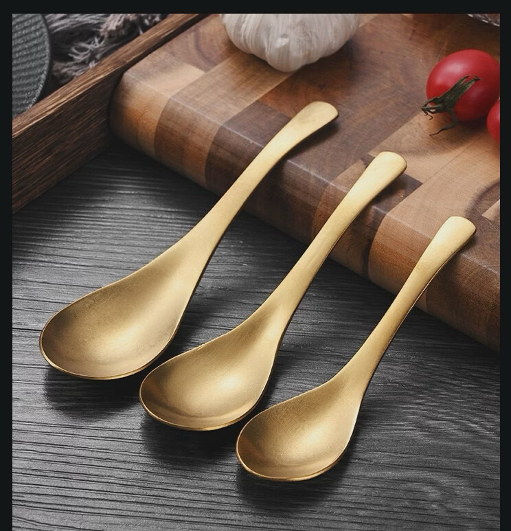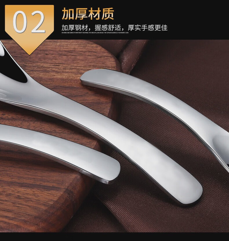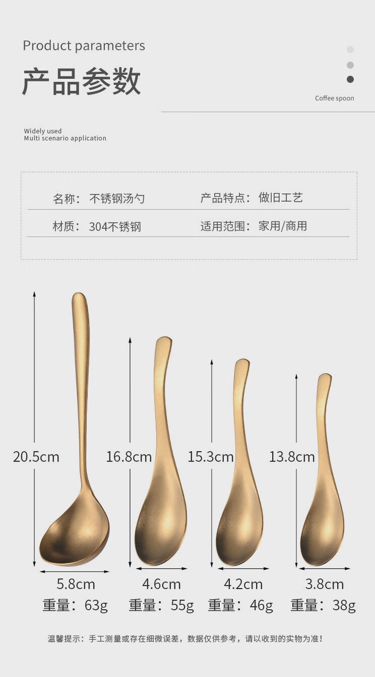 Fantasy stainless steel palace round head spoon hotel restaurant stainless steel spoon hotel iron spoon commercial use 20 pieces 304 frosted-rose gold-medium size
