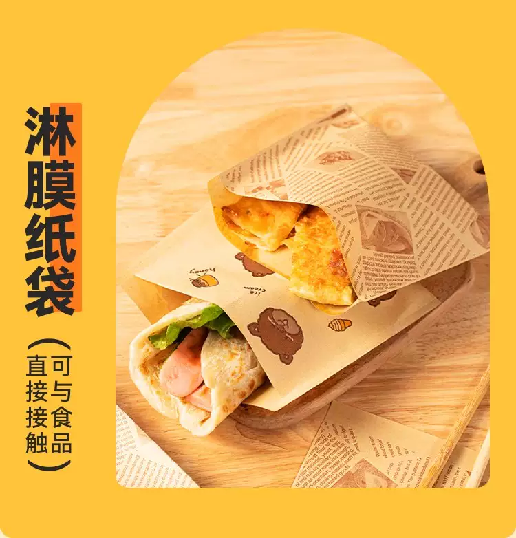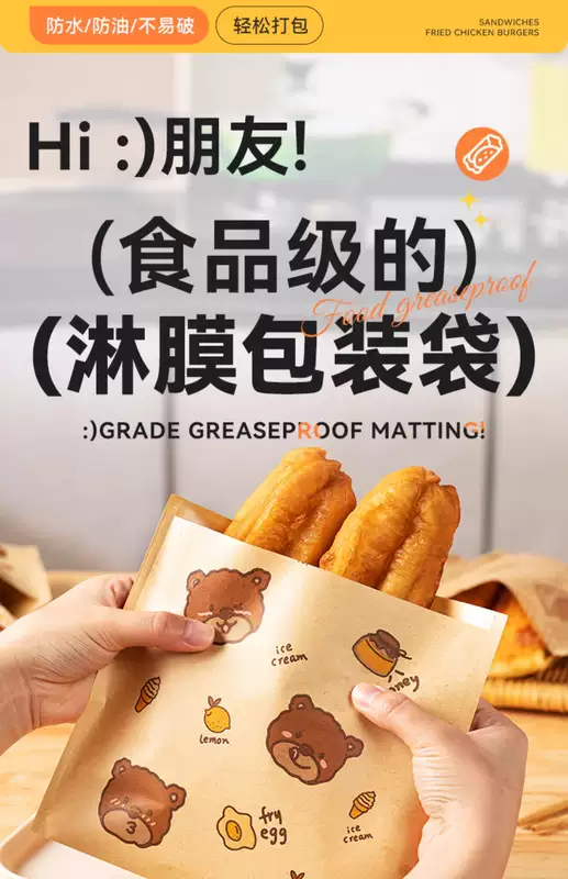 Yusenyi burger wrapper special sandwich grease-proof paper bag cake disposable toast rice ball hand-written breakfast box household 1 piece (anti-fog type) ziplock bag self-adhesive flat pocket 200 sheets