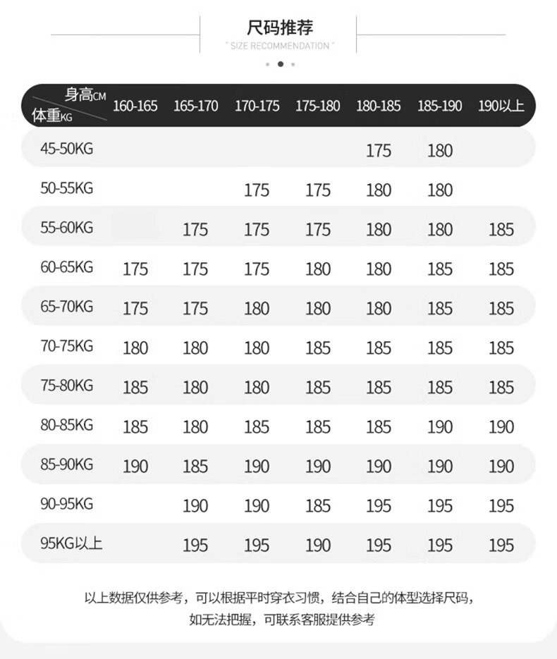 China (cm) 160-165/84-86 165-170 / 88-90 167-172 / 92-96 168-173 / 98-102 170-176 / 106-110
