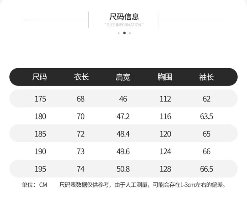 China (cm) 165 / 88-90 170 / 96-98 175 / 108-110 180 / 118-122 185 / 126-130