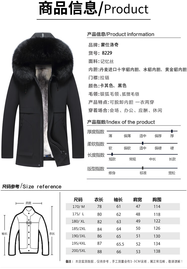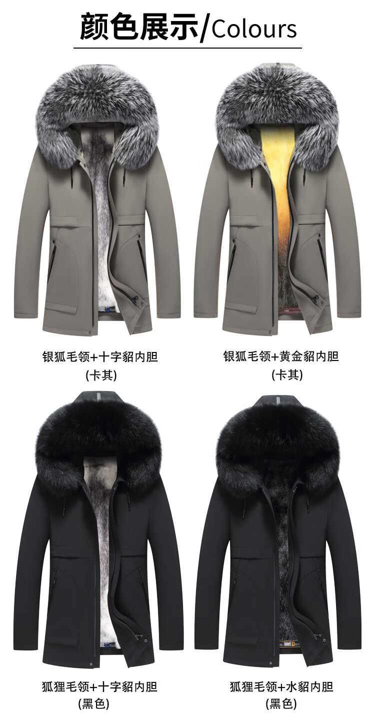CHEVALPES international first-line brand 2025 winter new parka men's mink liner short fur integrated mink khaki fox fur collar + mink liner M 170