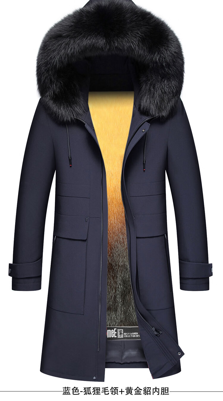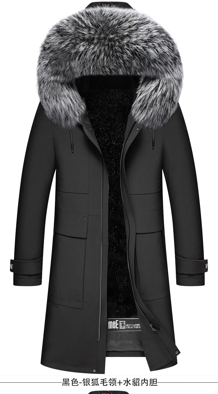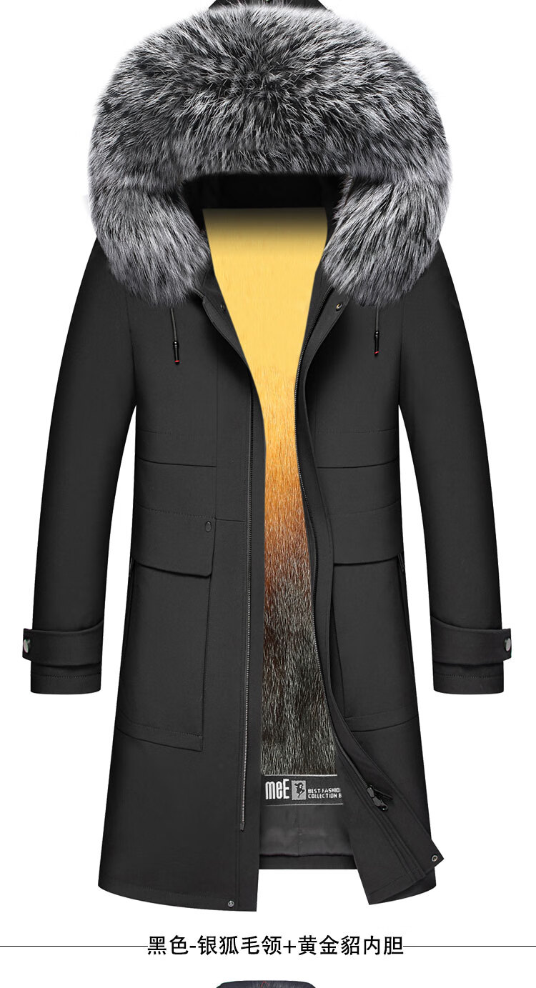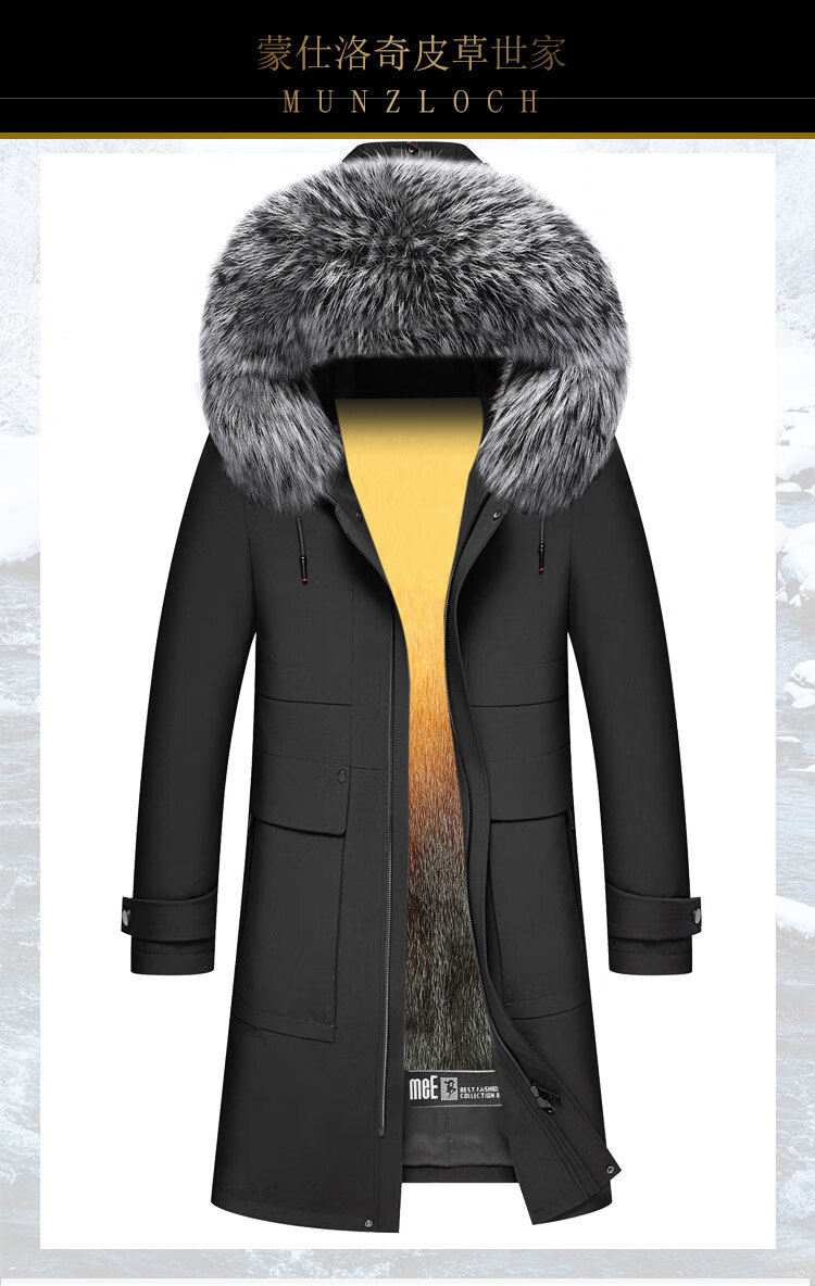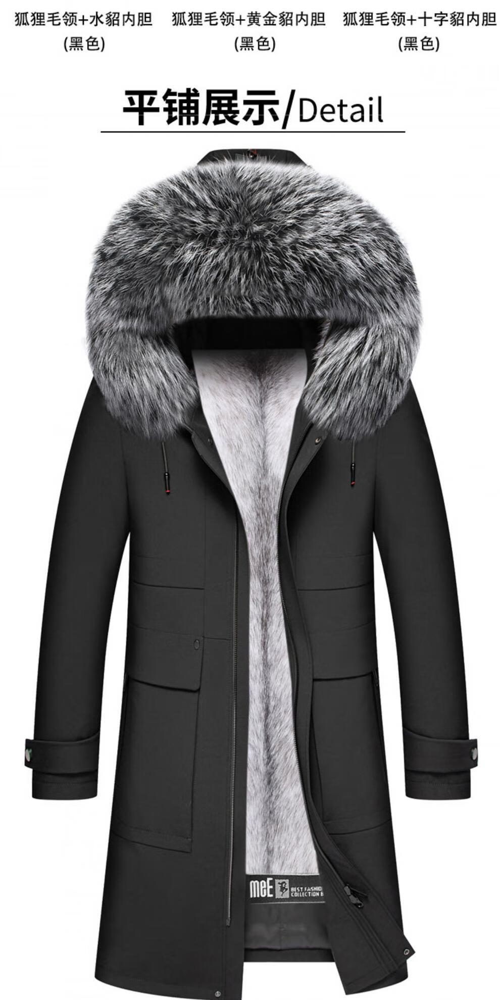 Международный бренд первой линии CHEVALPES, новинка 2025 года, мужская парка на длинной норковой подкладке, интегрированная норковая куртка для мужчин, воротник из черного меха лисы + норковая подкладка M 170