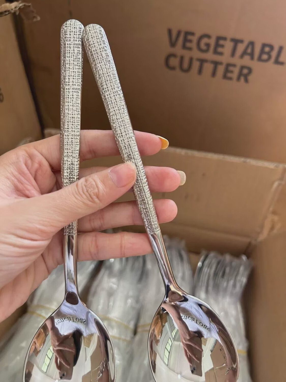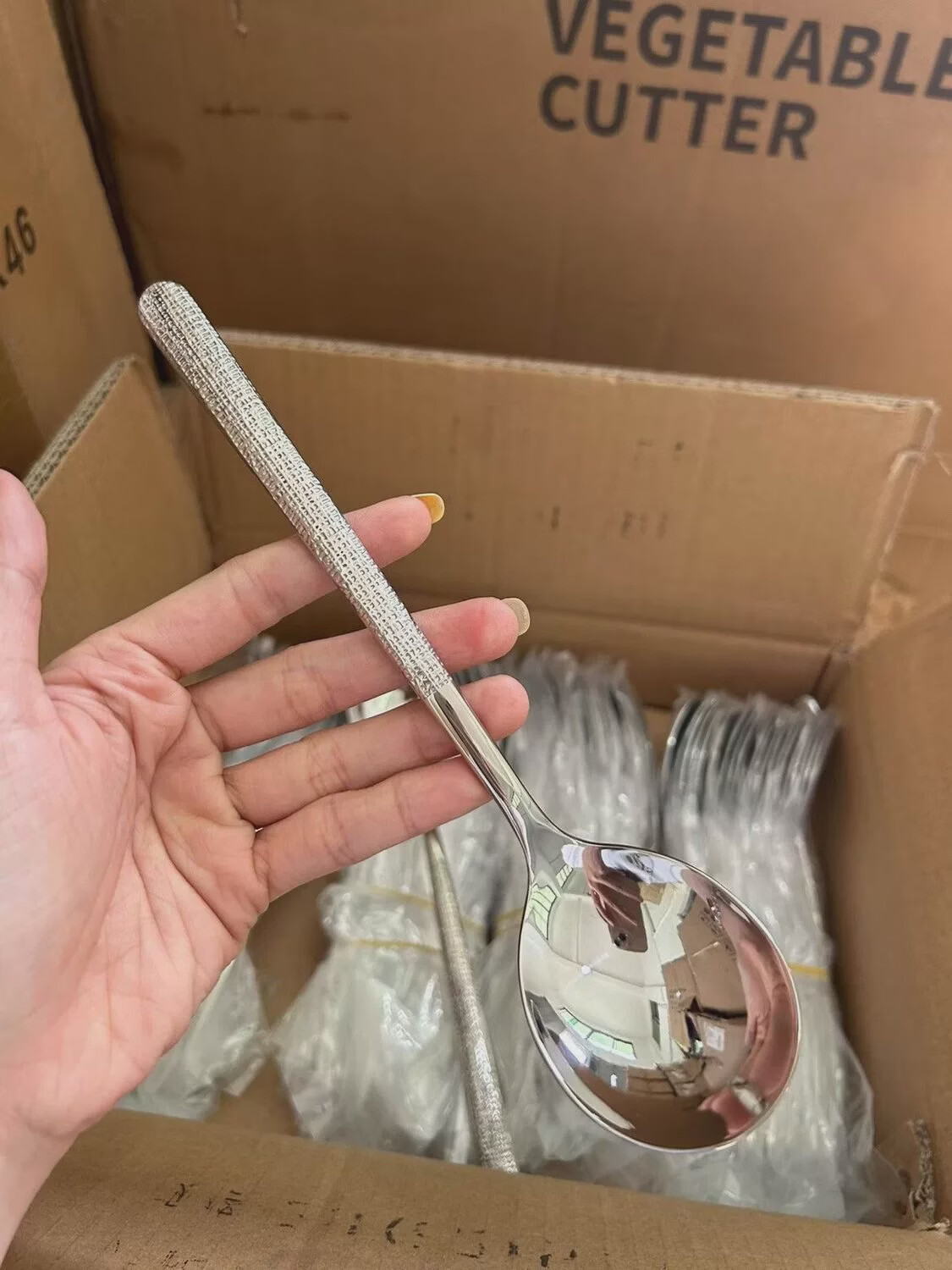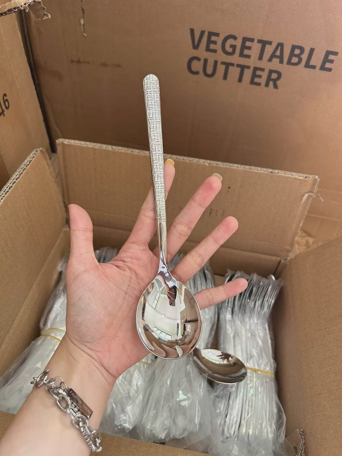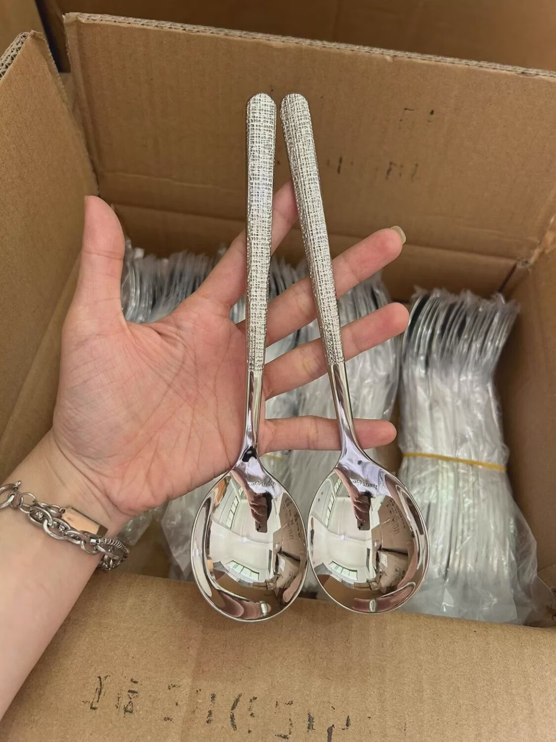 Yong Huan disposable spoons individually packaged commercial take-out spoons with ice cracks stainless steel spoons high-looking ice cracks 500 pieces factory batch packaging