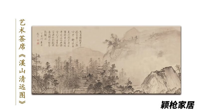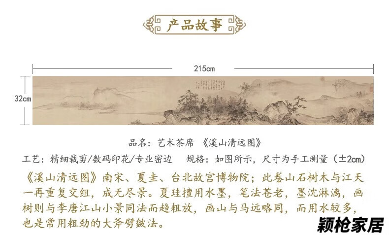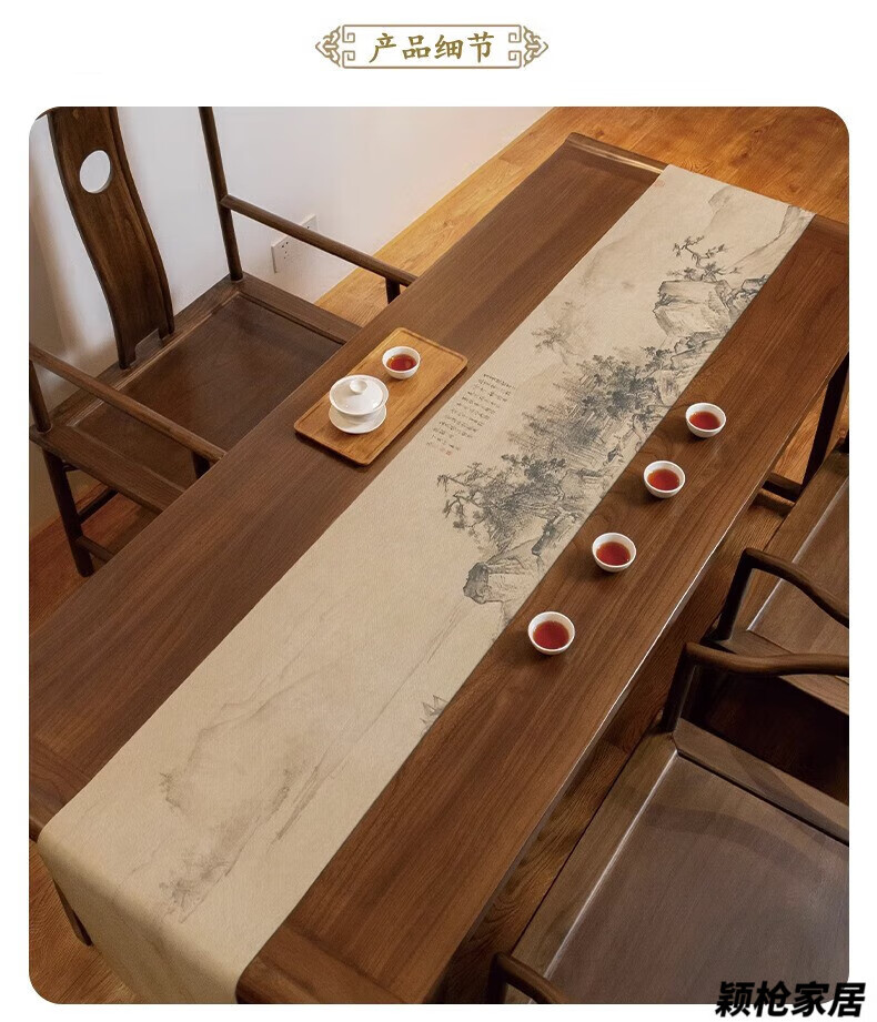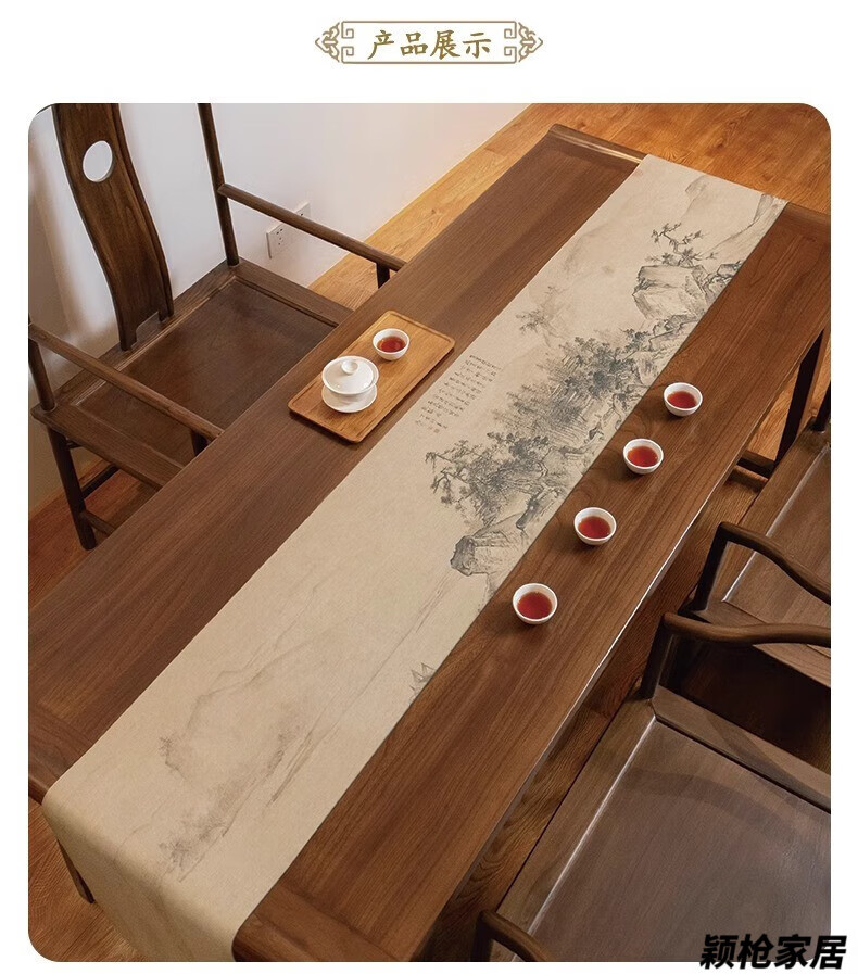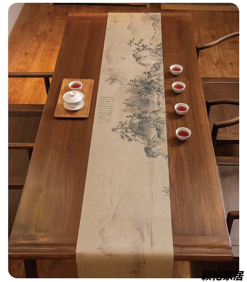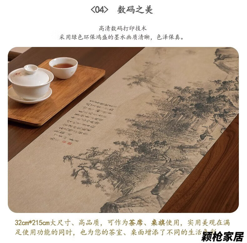 MPPMCK new Chinese style thickened long tea towel new Chinese style table flag waterproof mat ink landscape painting Zen tea table mat cloth Xishan Qingyuan map waterproof tea flag 32*120cm (applicable to desktop 0.5m-0.8m)