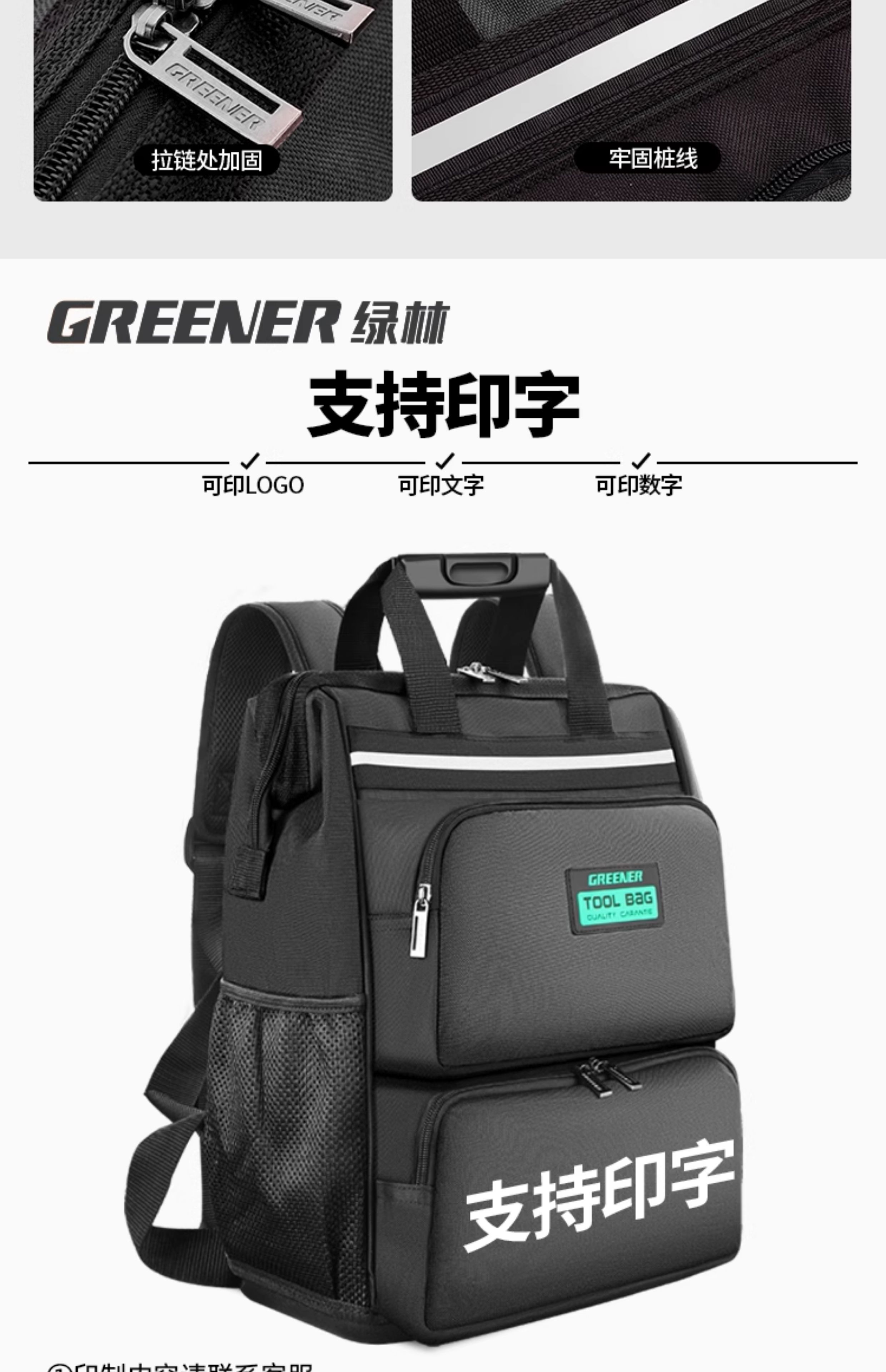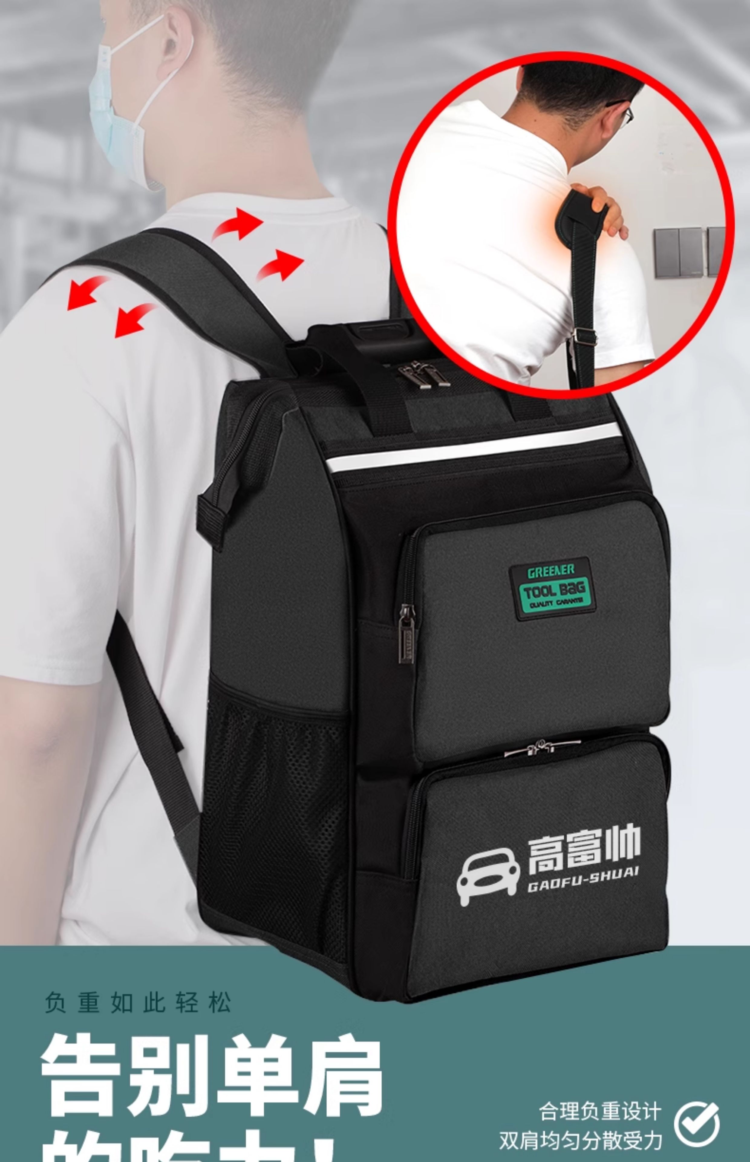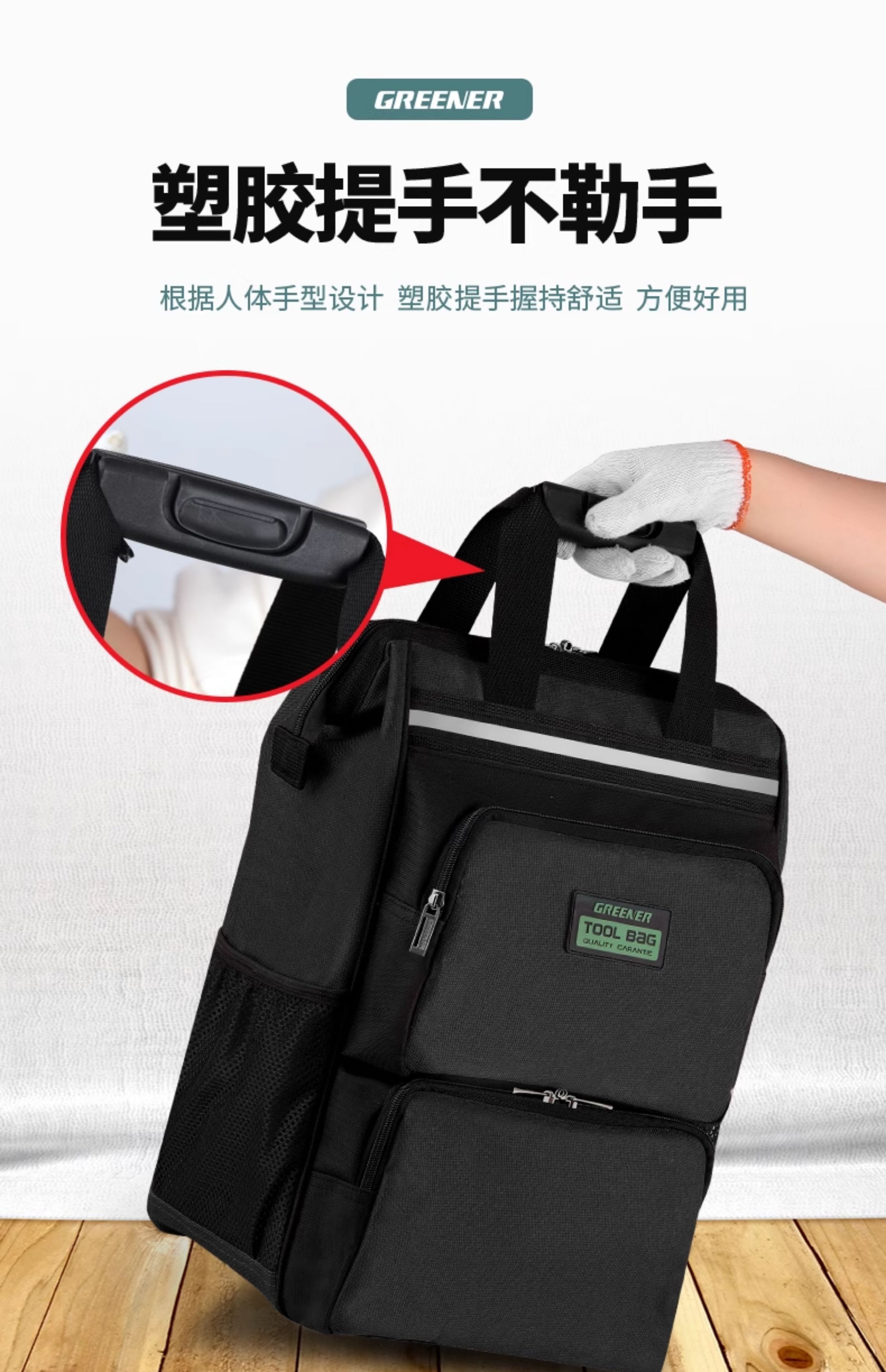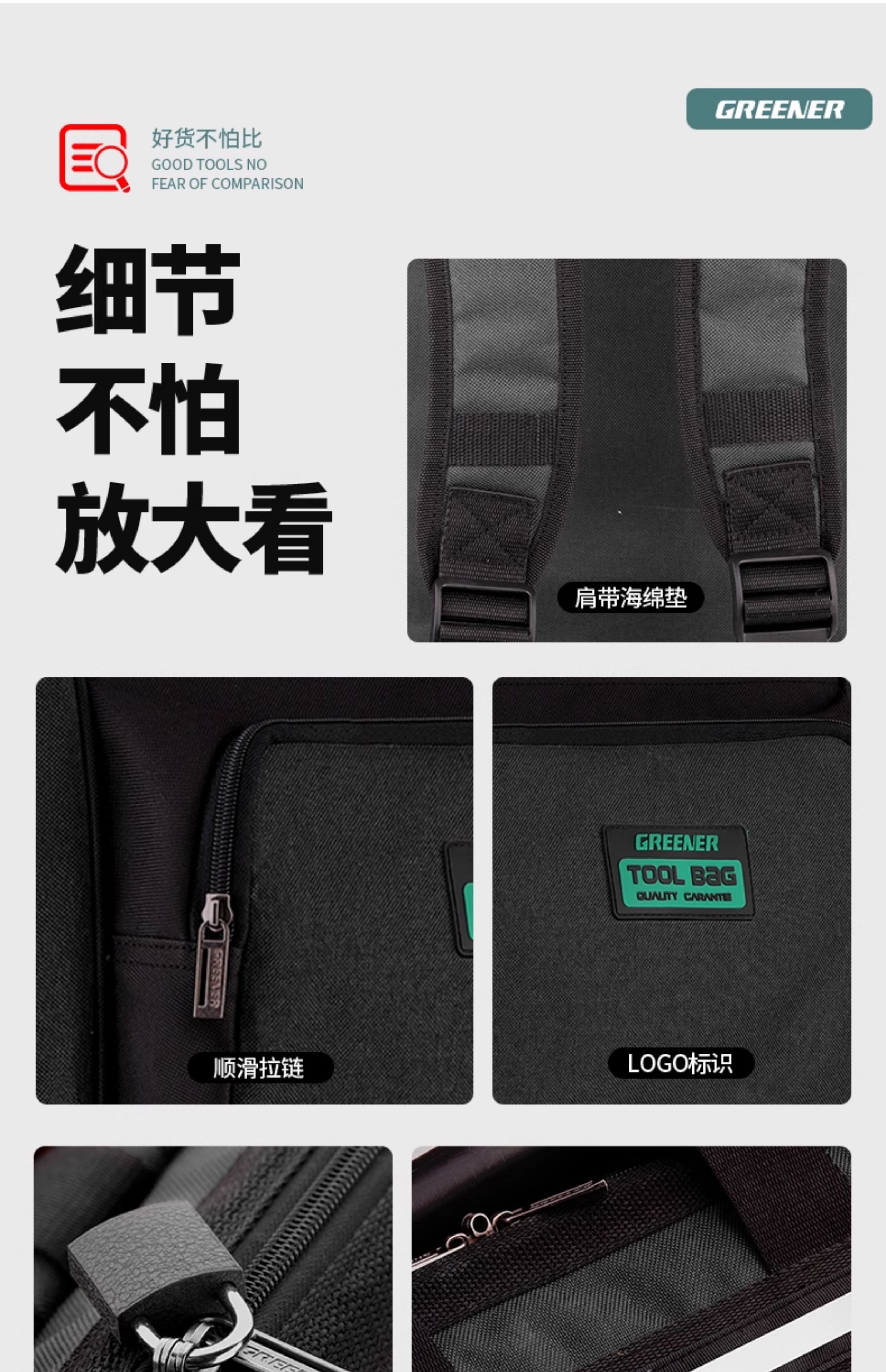 GREENER Tool Backpack Men's Multifunctional Backpack Repair Canvas Durable Portable Installation Electrician Special 16-inch Classic Green Load-bearing 100Jin Jin is equal to 0.5kg