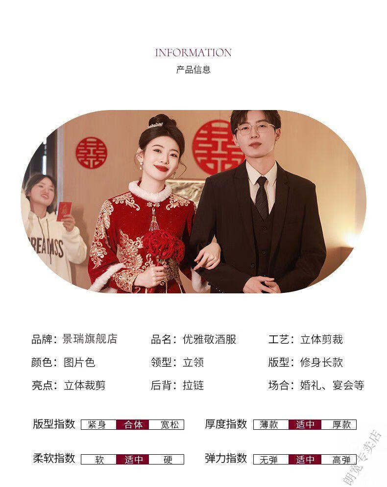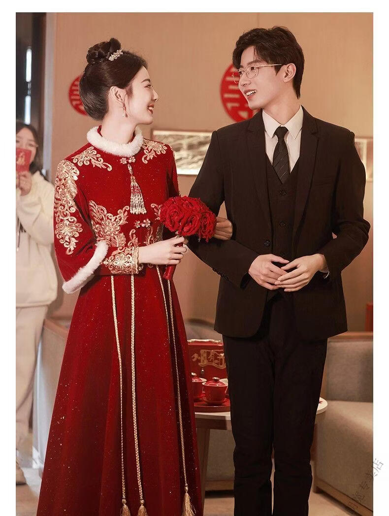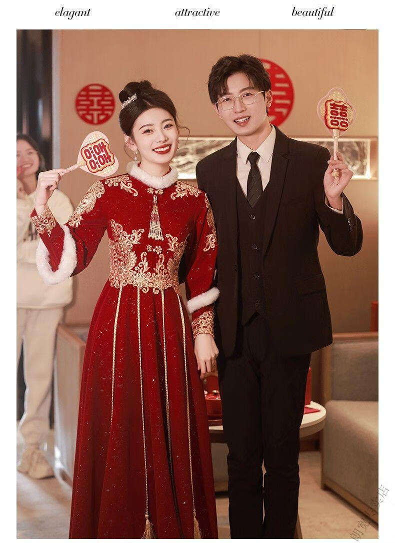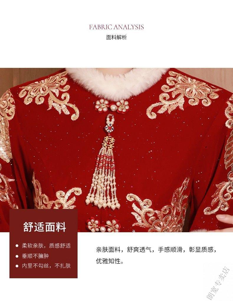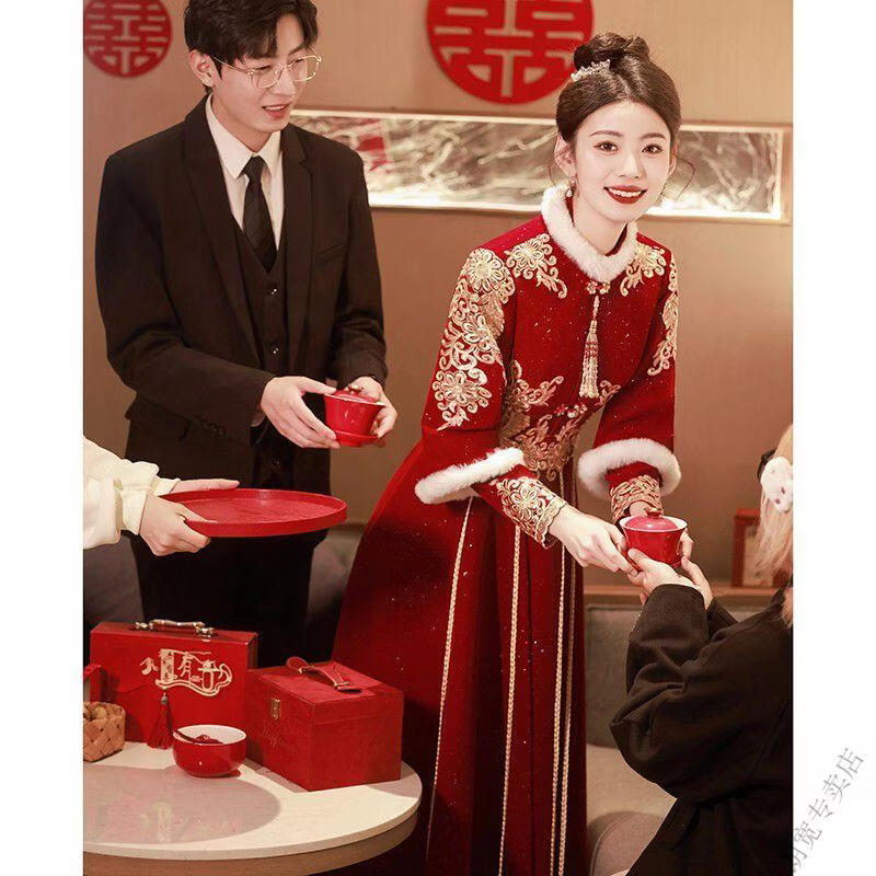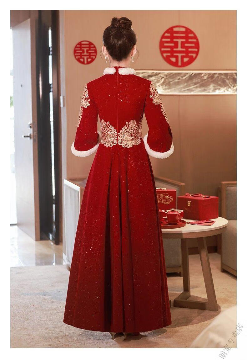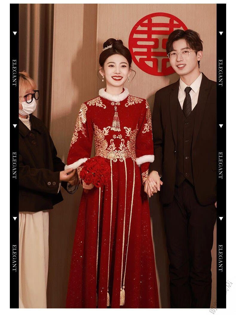 Pierre Cardin Cheongsam Toast Wear Bride 2025 New Red Engagement Wedding Dress Chinese Style Xiuhe Wedding Dress Long Sleeve Winter Burgundy 2XL