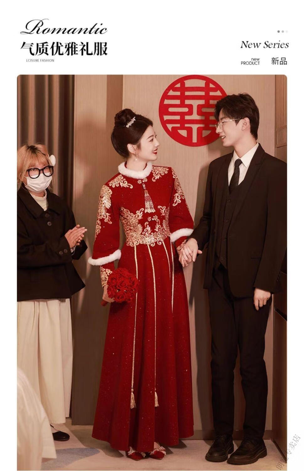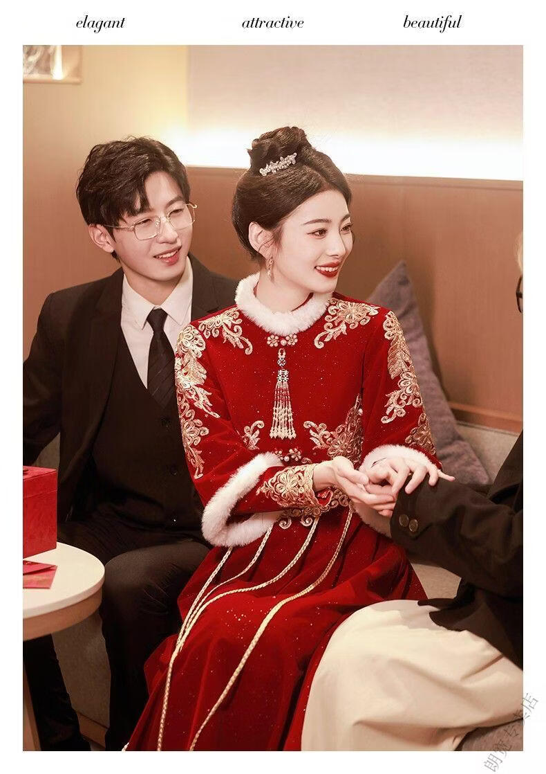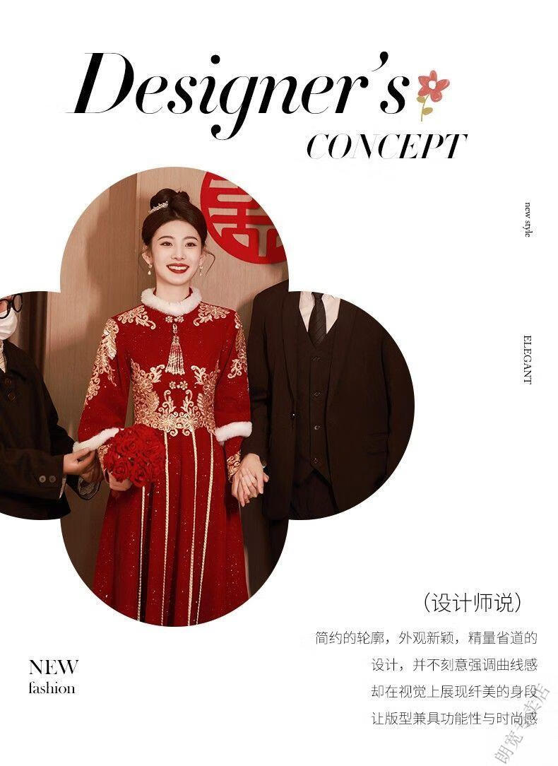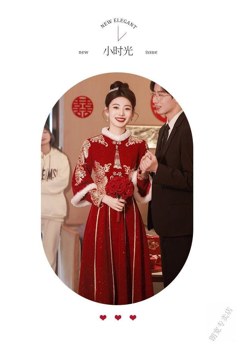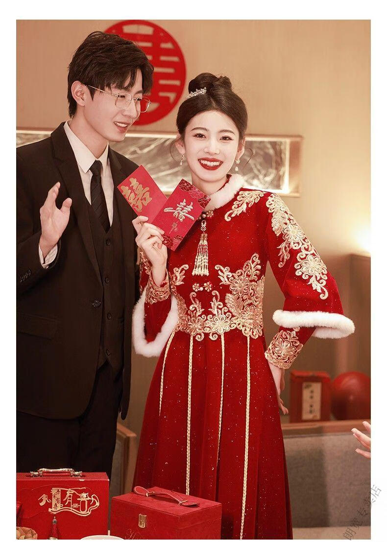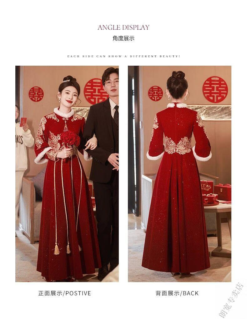 Pierre Cardin Cheongsam Toast Wear Bride 2025 New Red Engagement Wedding Dress Chinese Style Xiuhe Wedding Dress Long Sleeve Winter Burgundy 2XL
