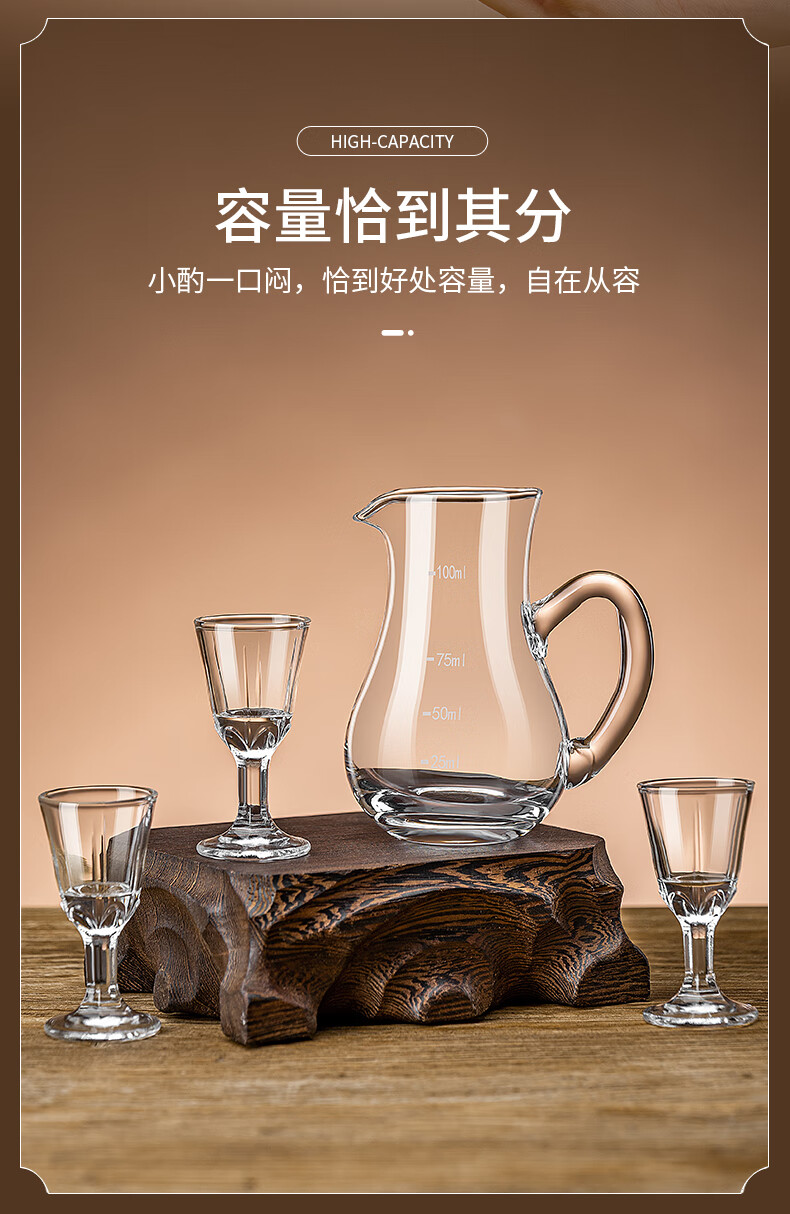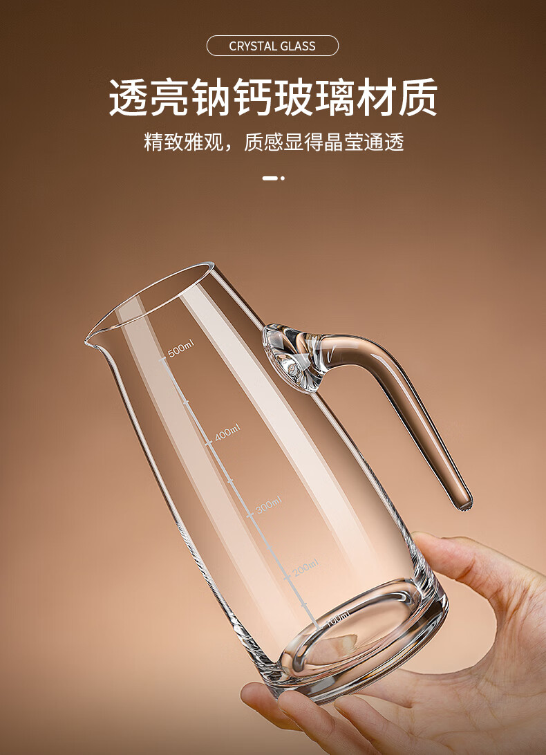 Thickened glass liquor dispenser household scale wine jug with handle small foreign wine red wine decanter tie pot strengthened thickened wine dispenser with handle 500ml
