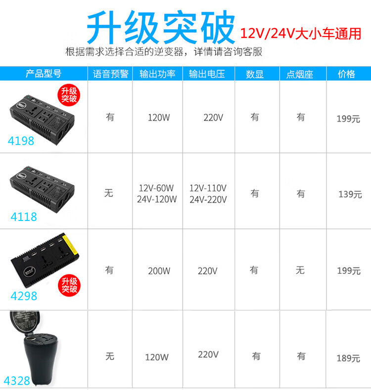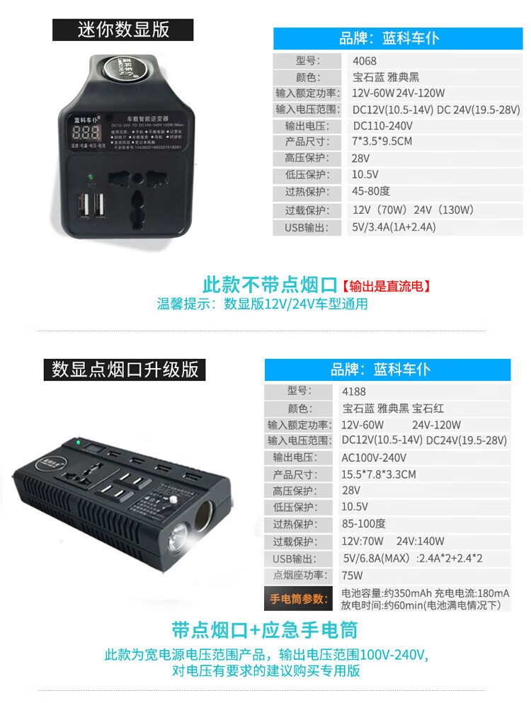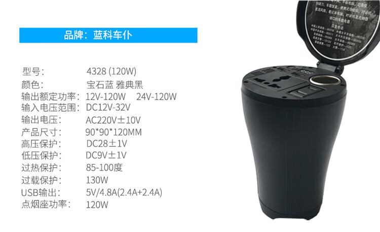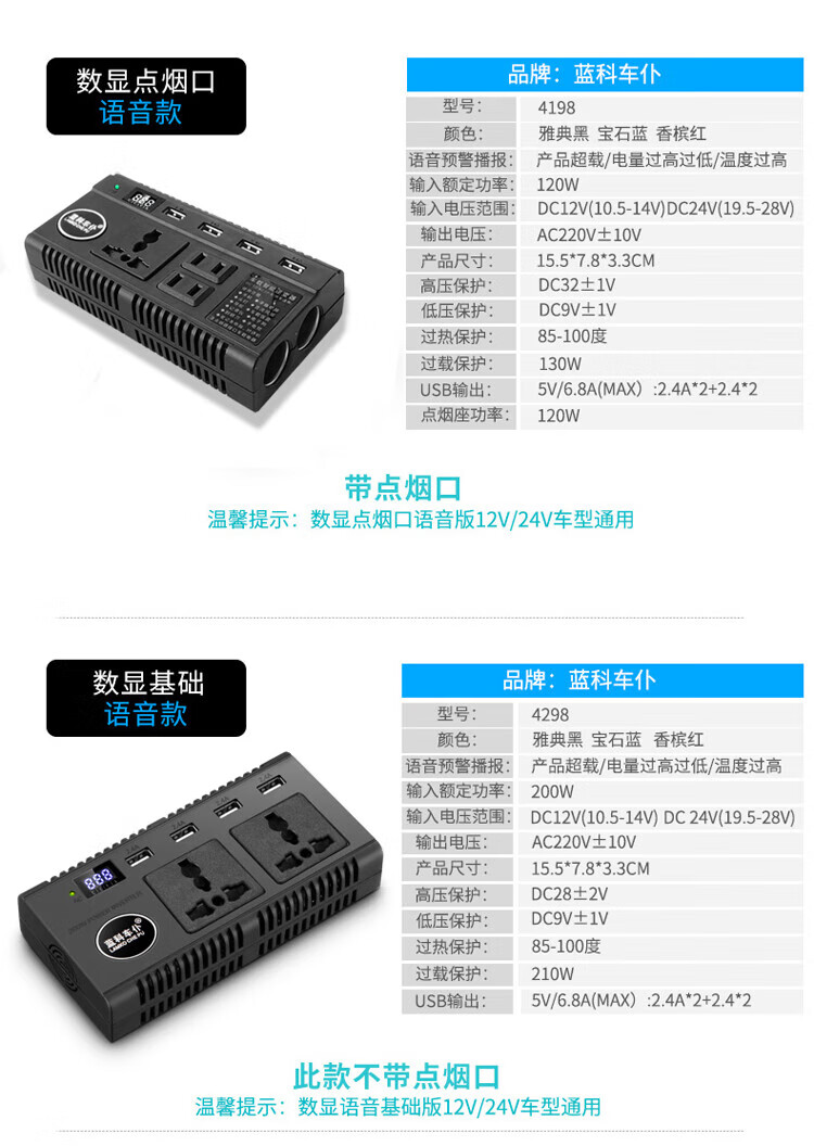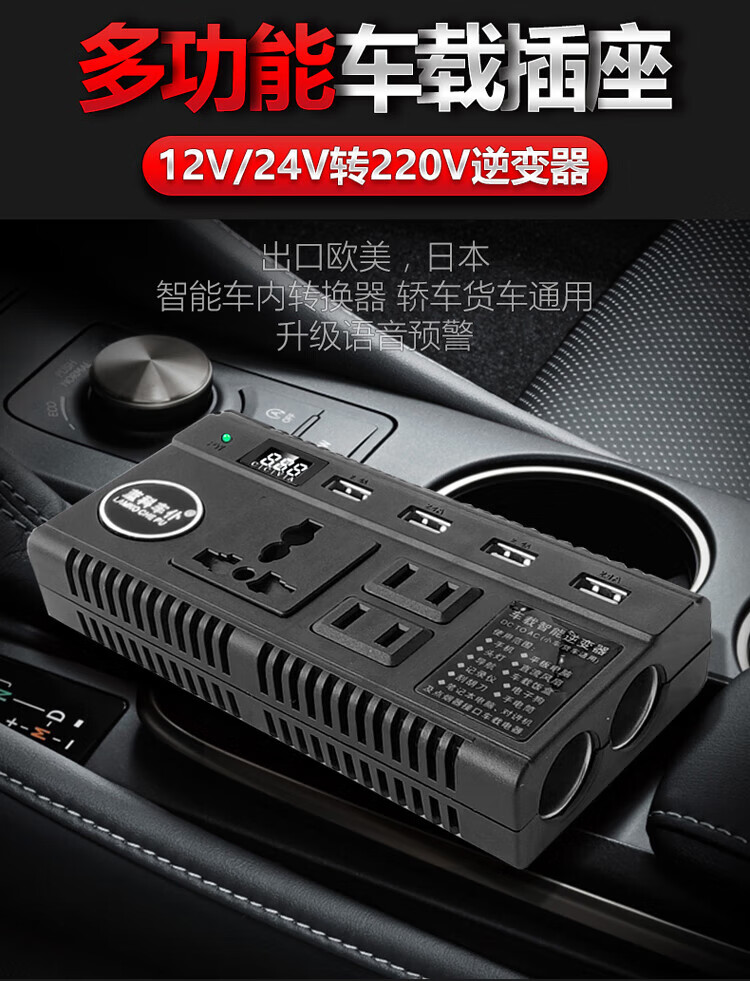Car 12V24V to 220V power converter multi-function truck car socket charger 12V/24V universal mini black 220V x 12V