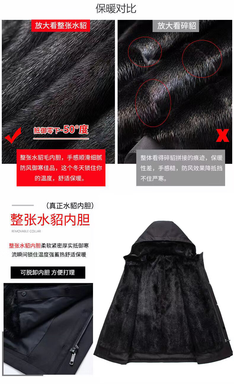 CHEVALPES international first-line brand pie overcome men's mink liner whole mink fur integrated fur hat removable thickened black whole mink liner + rabbit fur sleeves detachable hat one size fits all 48/170 recommended weight 100-125 Jin Jin equals 0.5 kg
