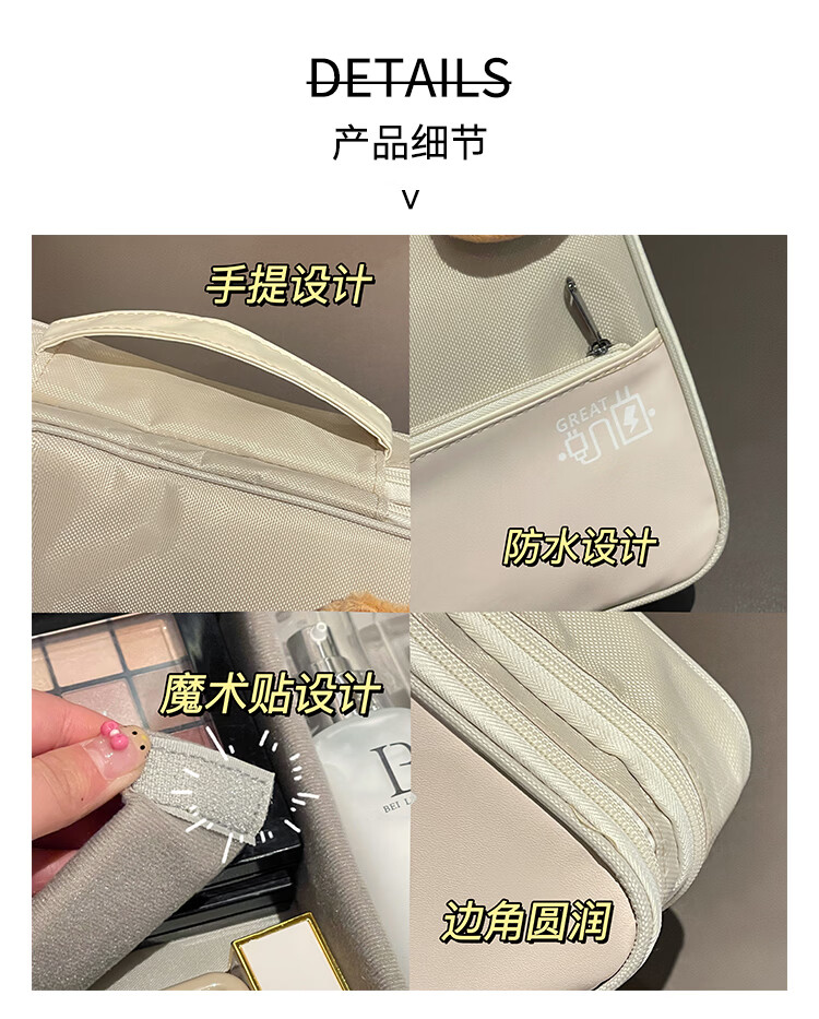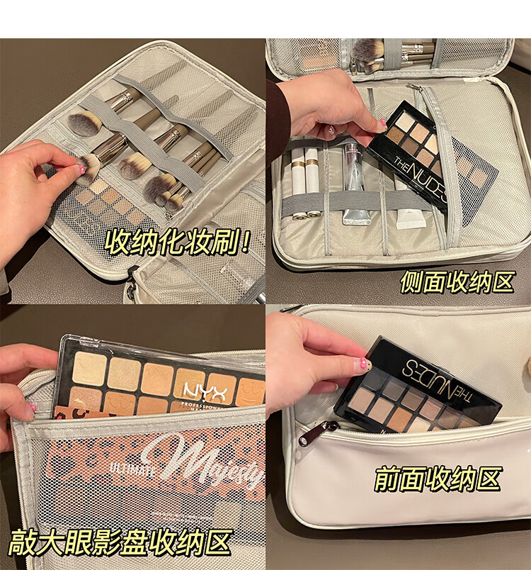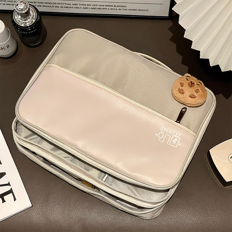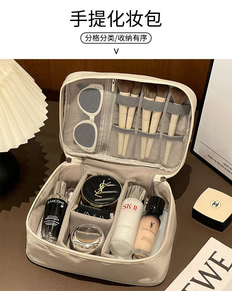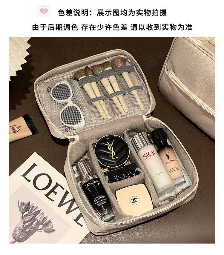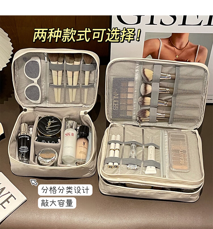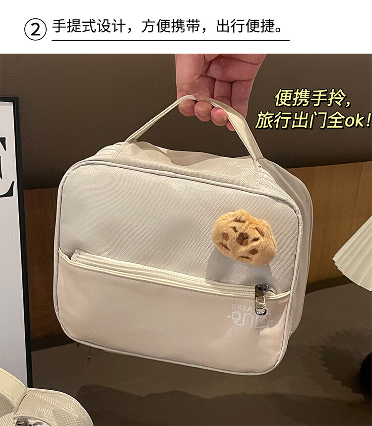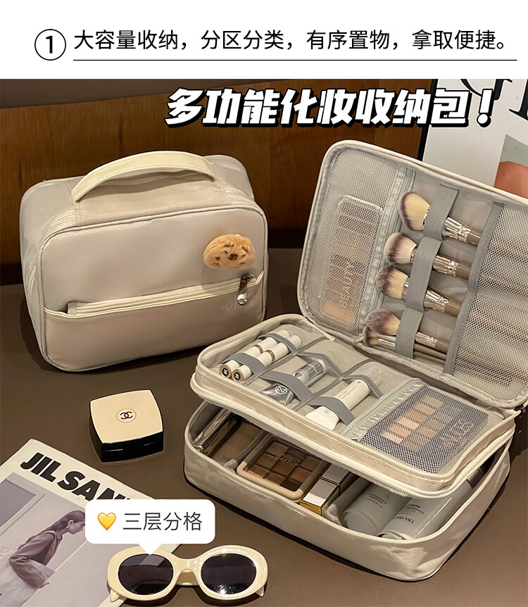 Aoyanlai New Product Cute Large Capacity Portable Women's Makeup Brush Cosmetic Storage Bag Portable Cosmetic Bag Travel Wash Double Layer Large Capacity Beige Free Capibala Brooch