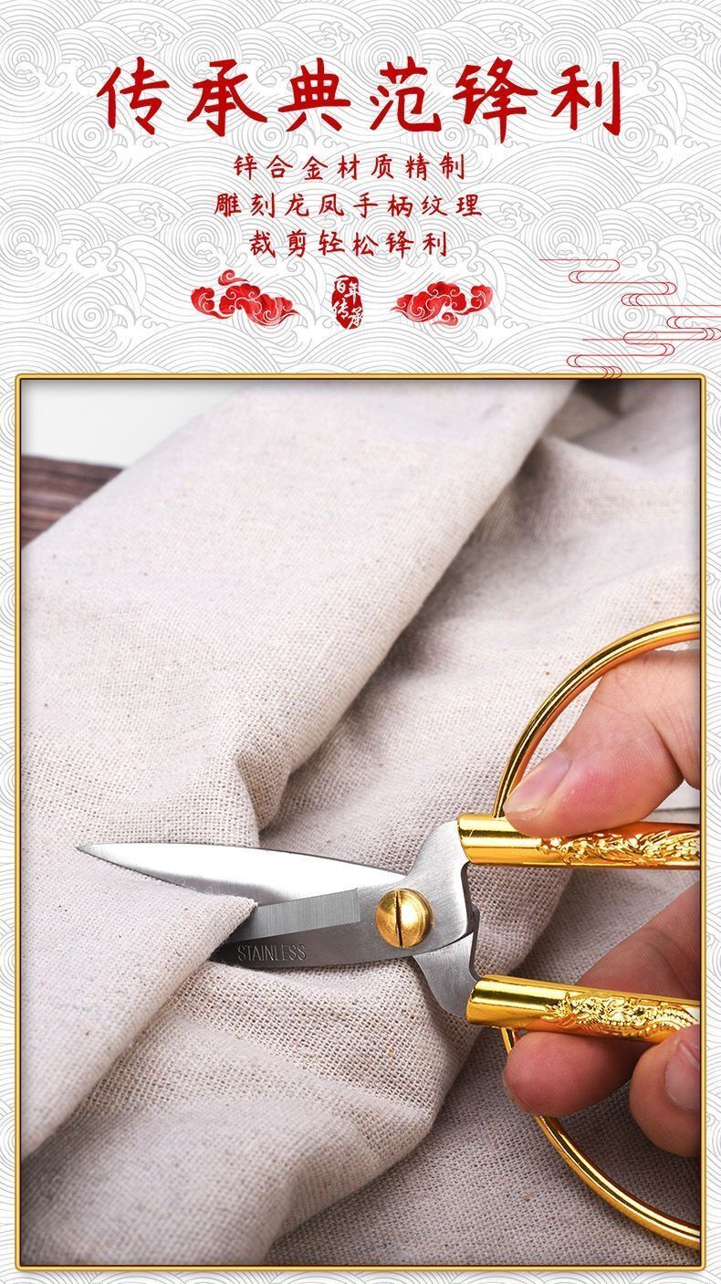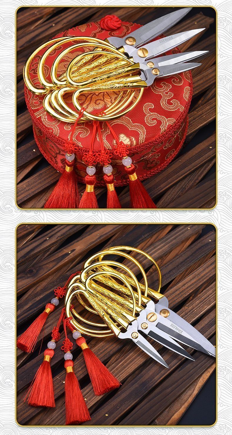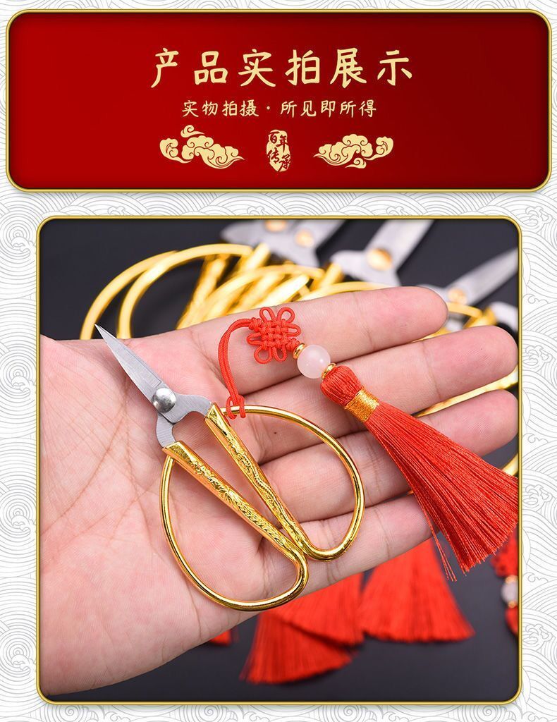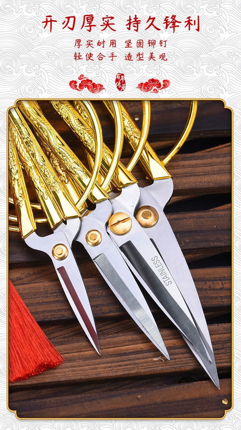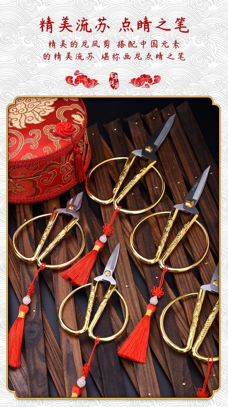 Shushe gold scissors household dragon and phoenix stainless steel scissors wedding retro opening ribbon cutting golden thread cutting scissors No. 1 dragon and phoenix scissors with free tassels