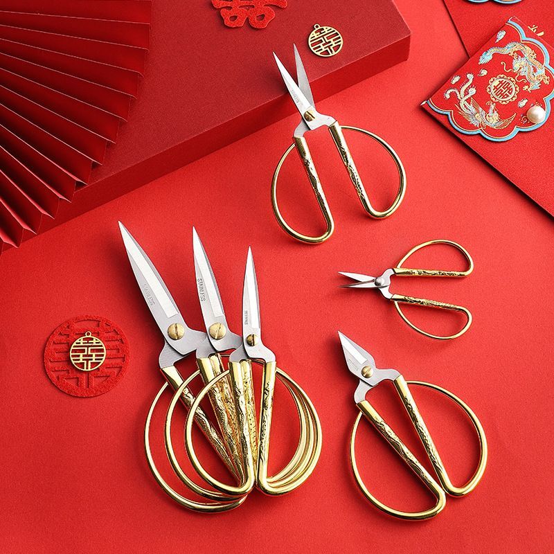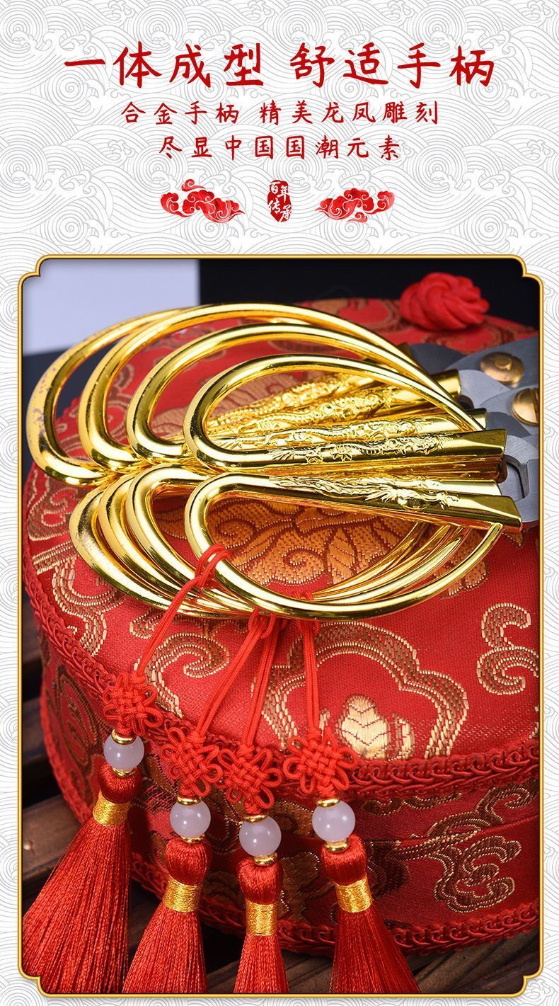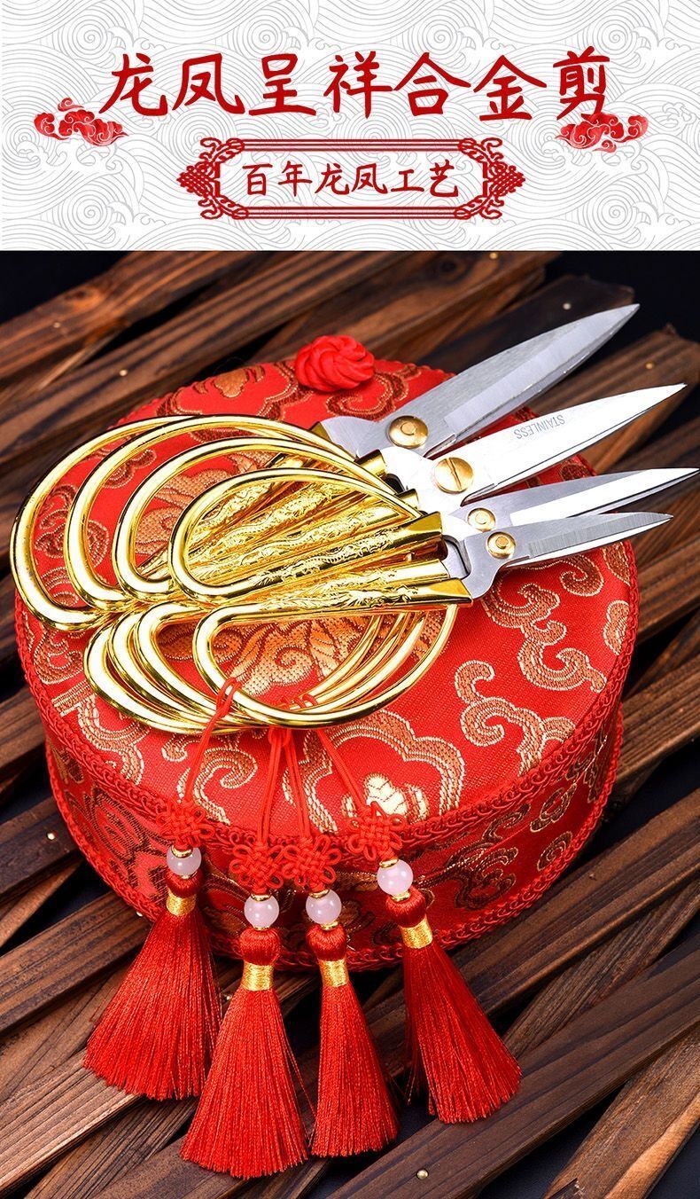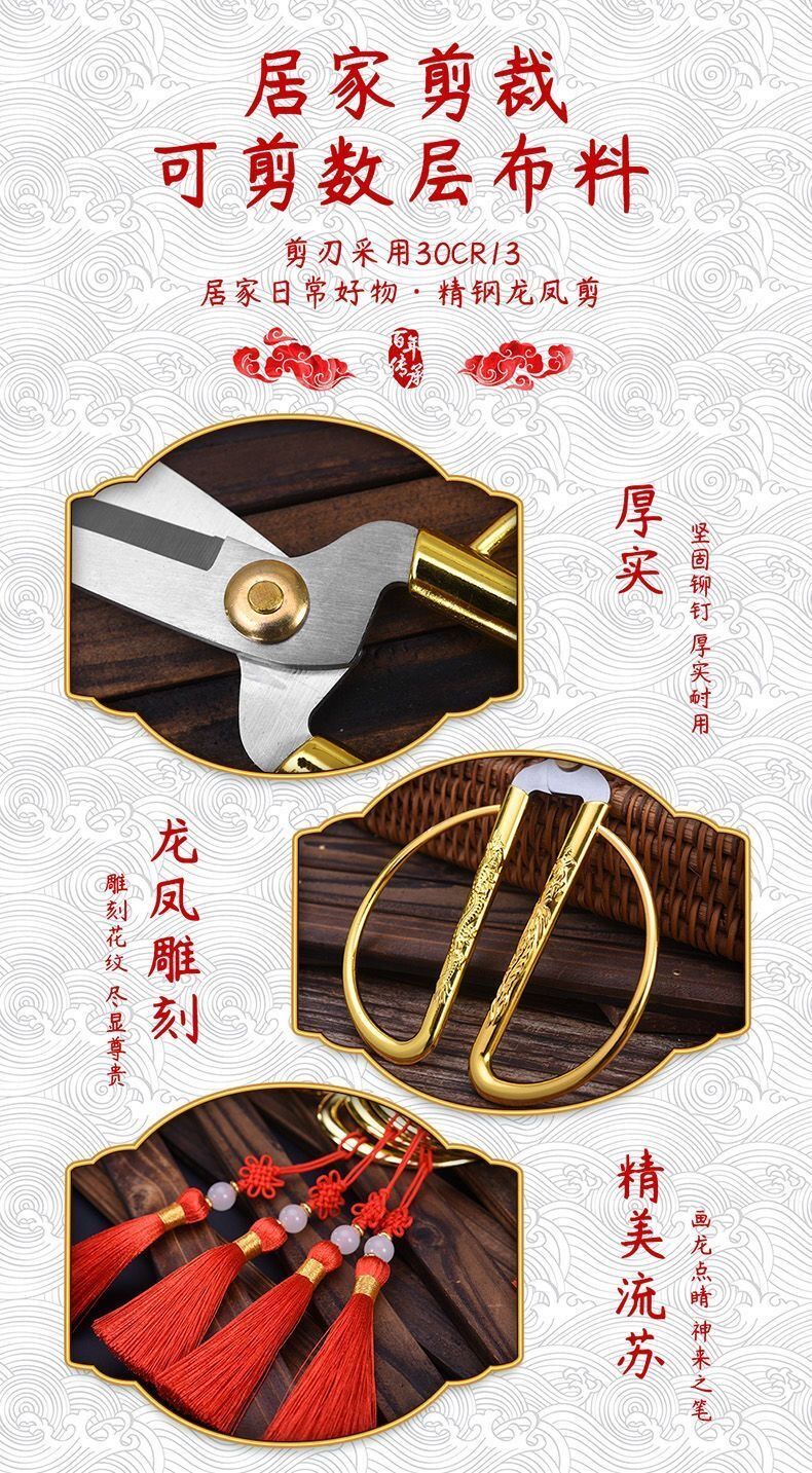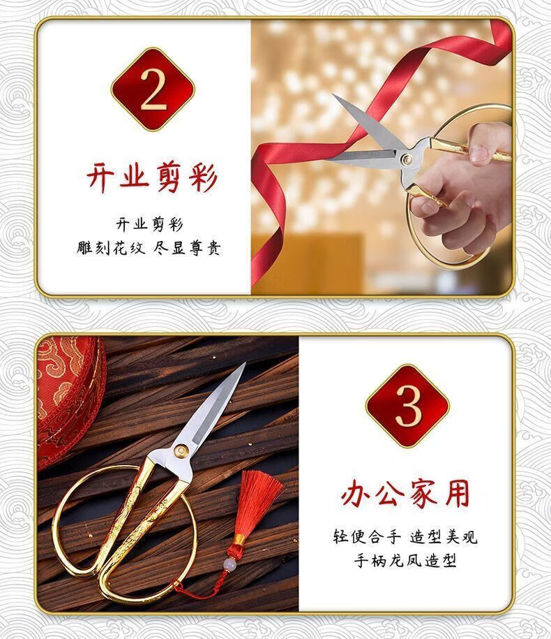 Shushe gold scissors household dragon and phoenix stainless steel scissors wedding retro opening ribbon cutting golden thread cutting scissors No. 1 dragon and phoenix scissors with free tassels