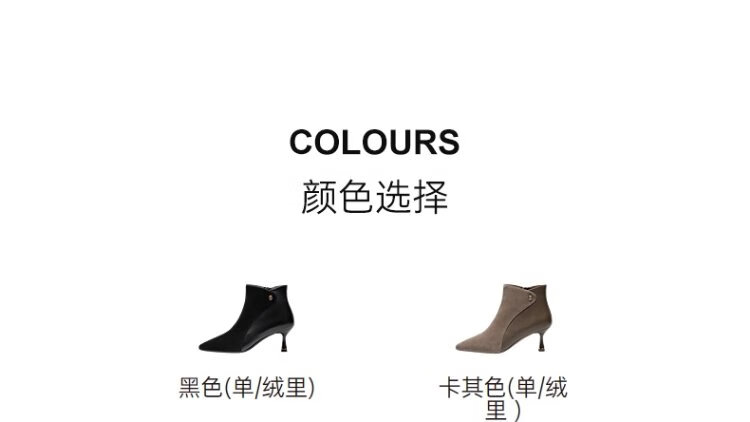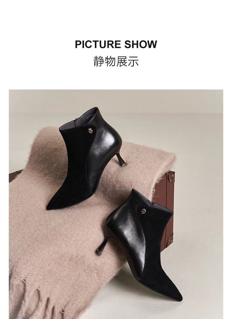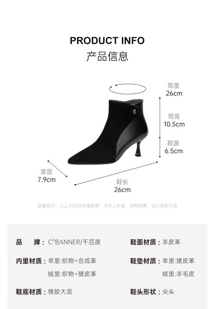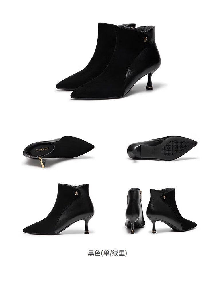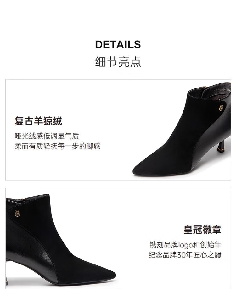 Qianbaidu Silent Series 2025 Winter Shopping Mall Same Style Ankle Boots Pointed Toe High Heel Sheepskin Short Boots for Women A25571635 A15 Khaki (velvet lining) (6.5cm) 37 (235mm)