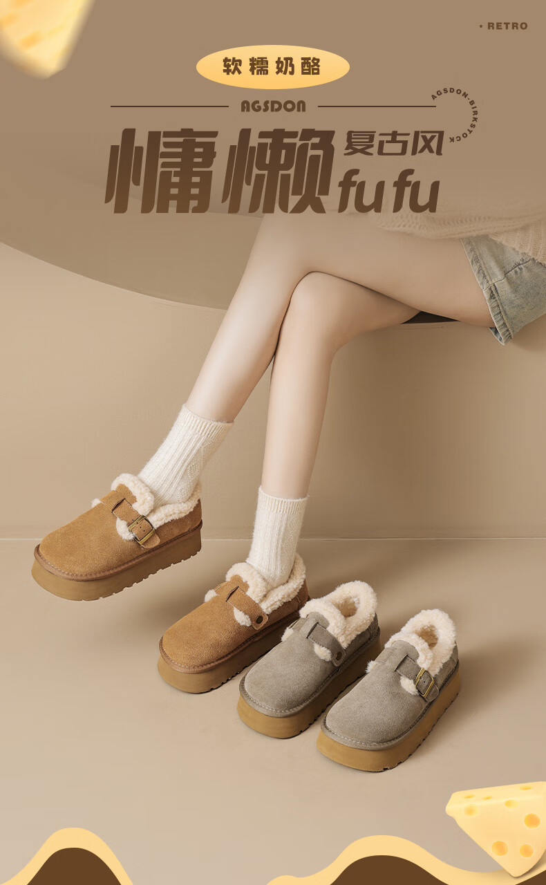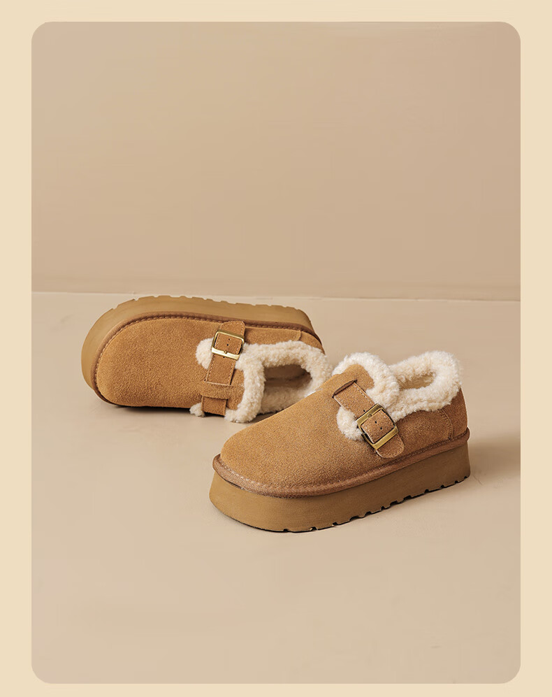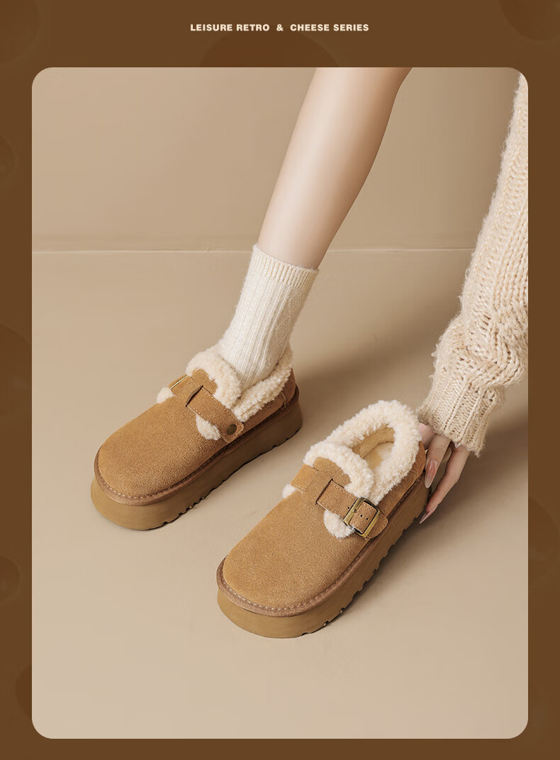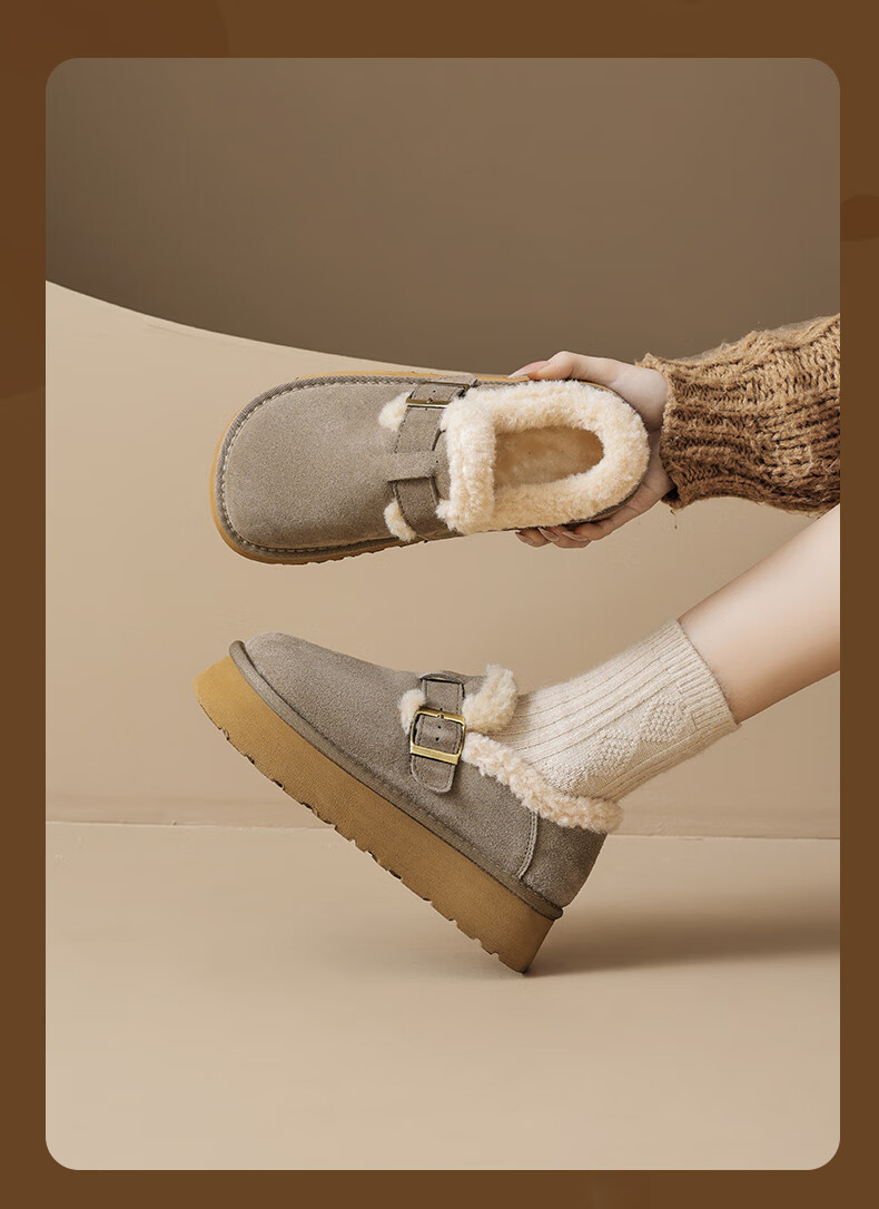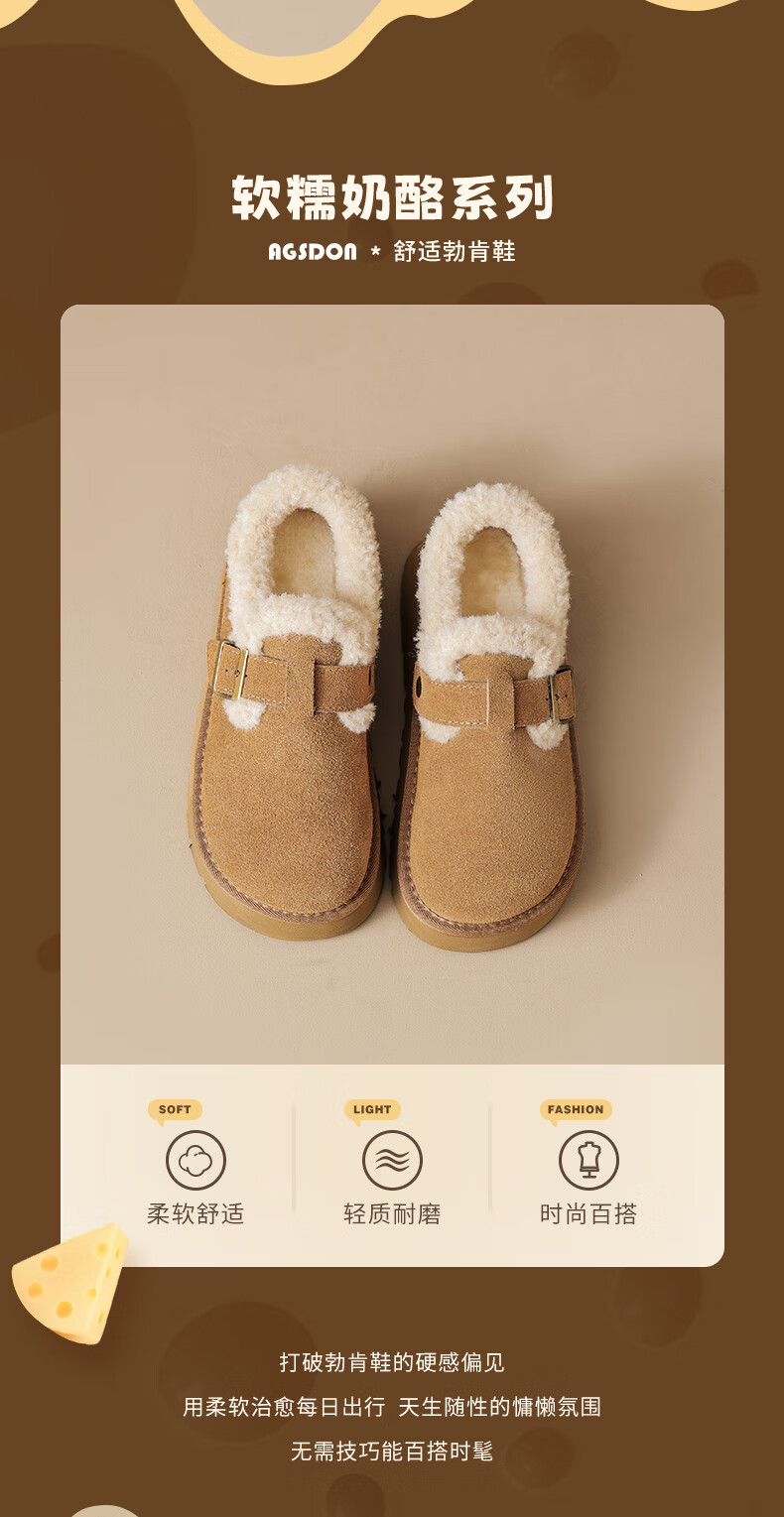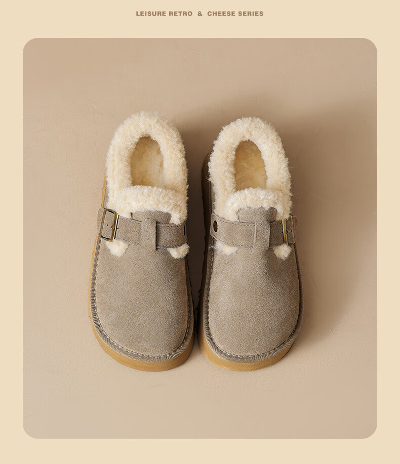 Augushiden Birkenstock shoes for women 2026 winter new style plus velvet slip-on cotton shoes for women, versatile fashionable thick-soled beanie shoes, maroon 35