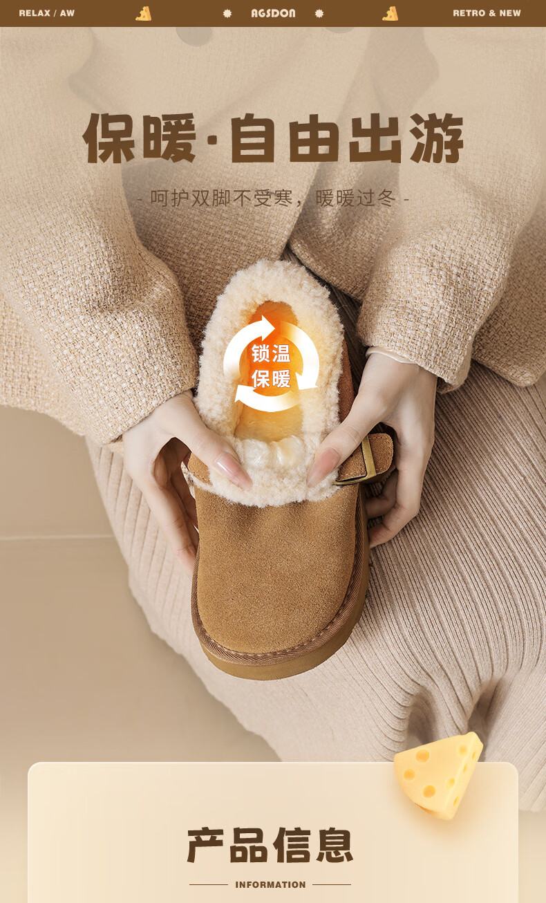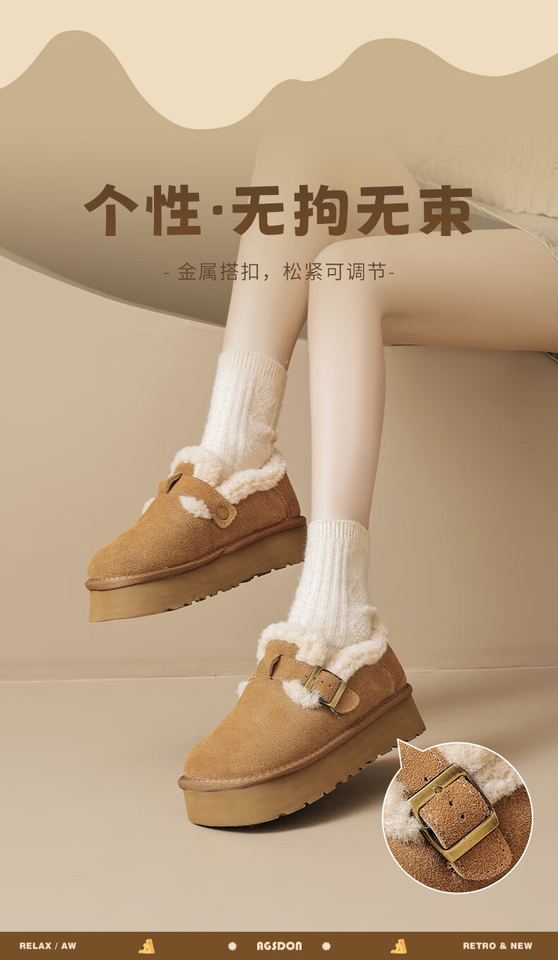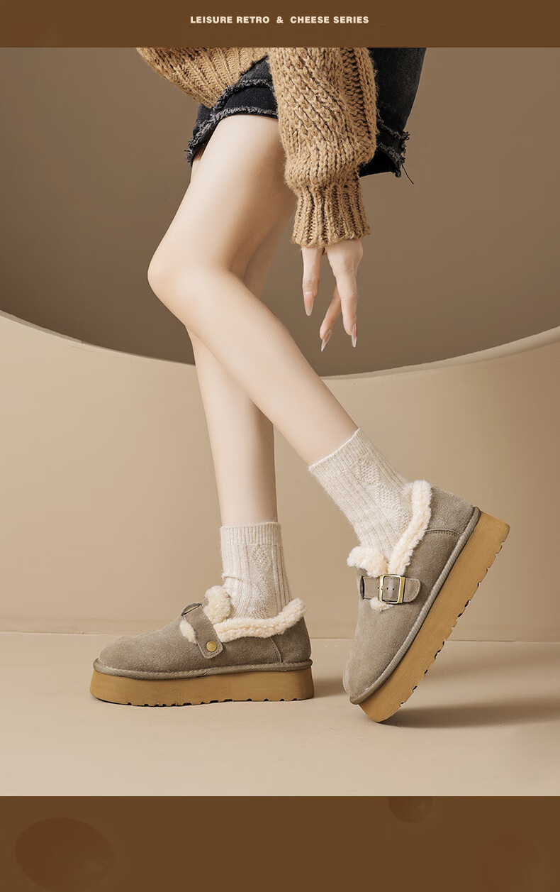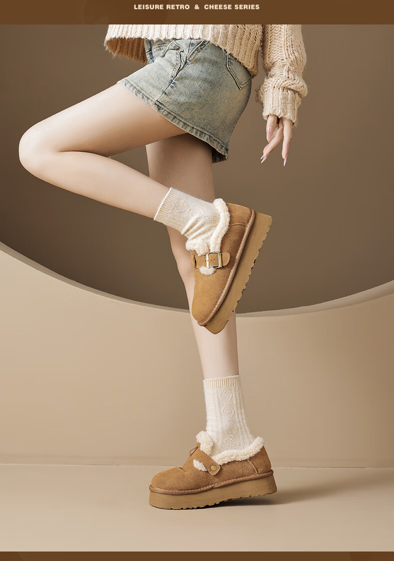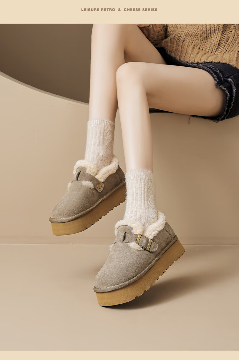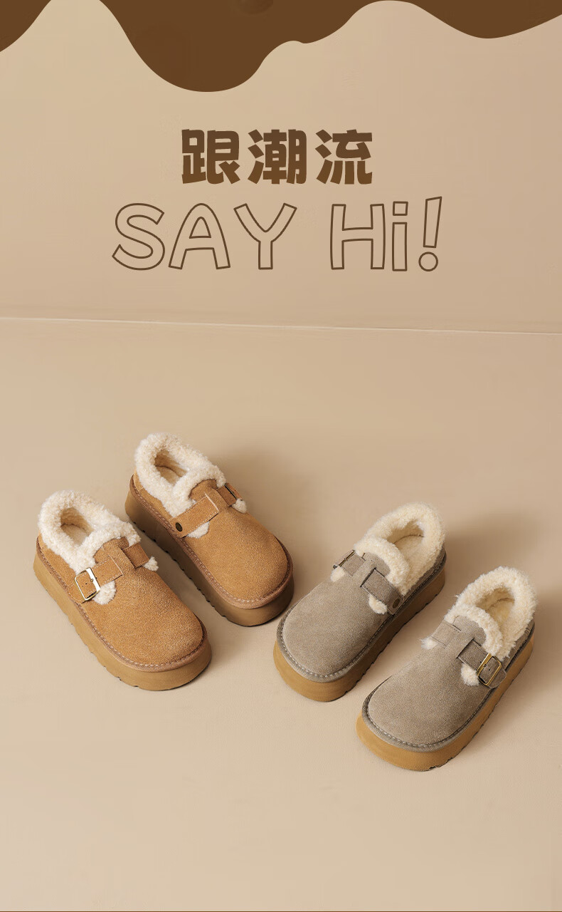 Augushiden Birkenstock shoes for women 2026 winter new style plus velvet slip-on cotton shoes for women, versatile fashionable thick-soled beanie shoes, maroon 35