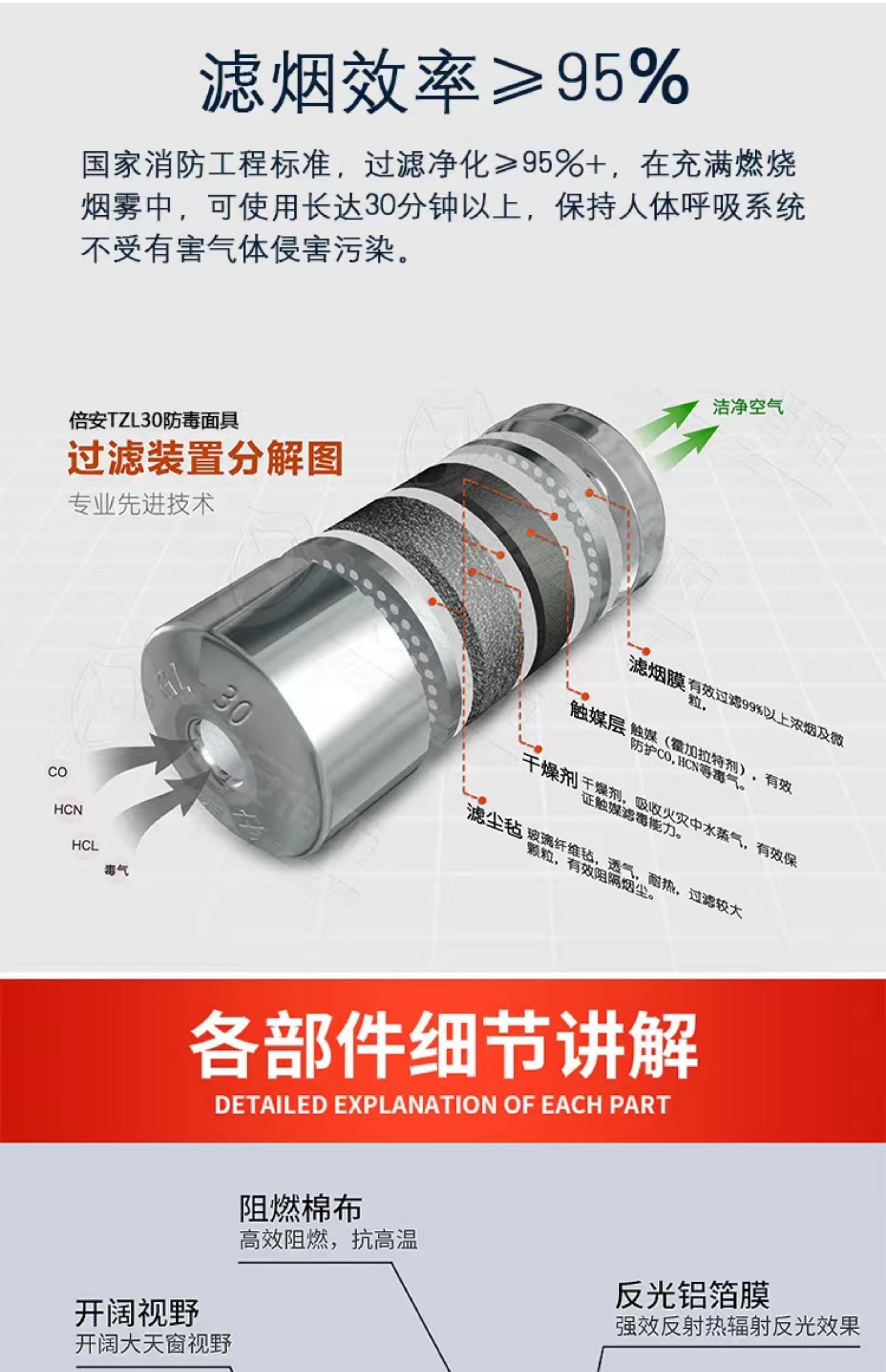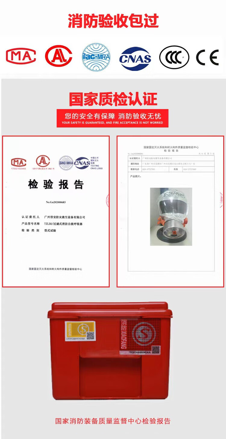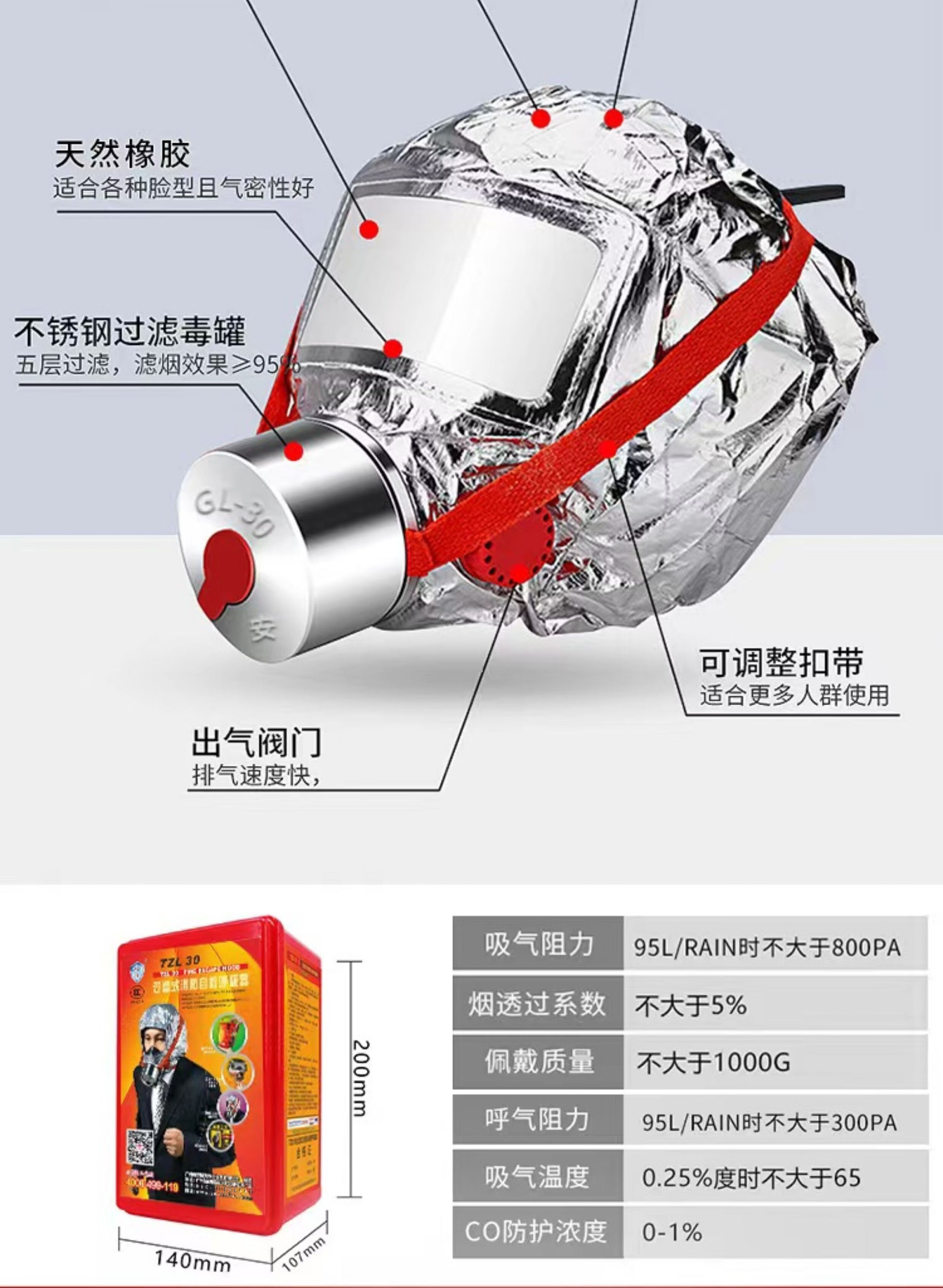 Zhe'an fire mask TZL30A Guang fire smoke gas mask home hotel fire escape self-rescue respirator Orca An ultra-thick fire blanket 1.5*1.5