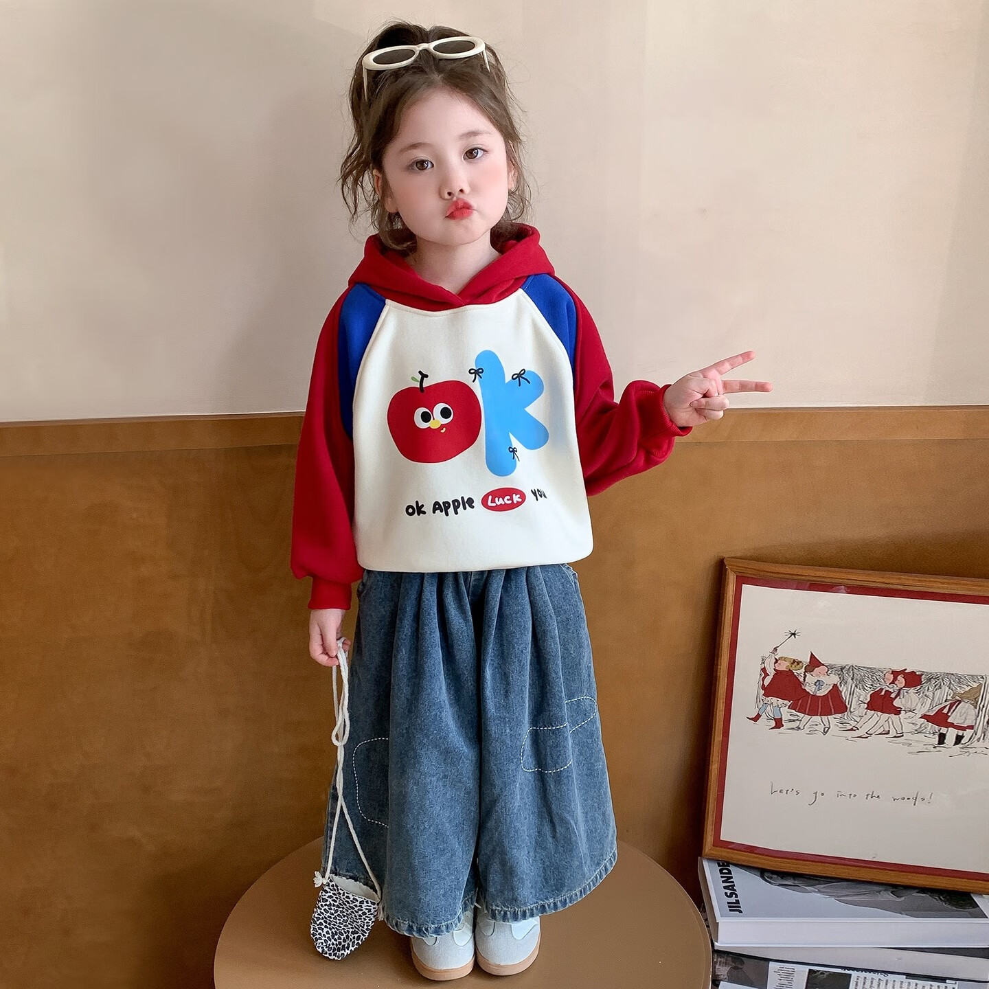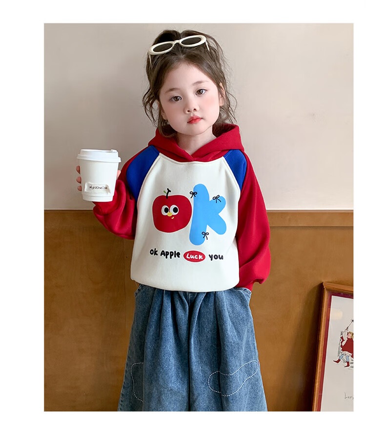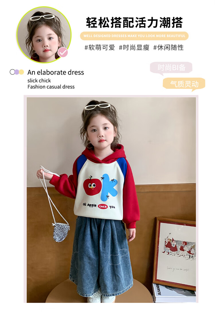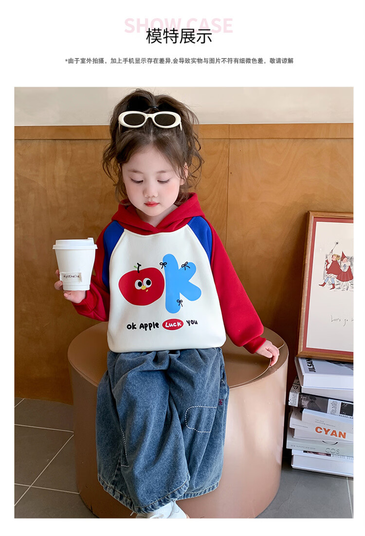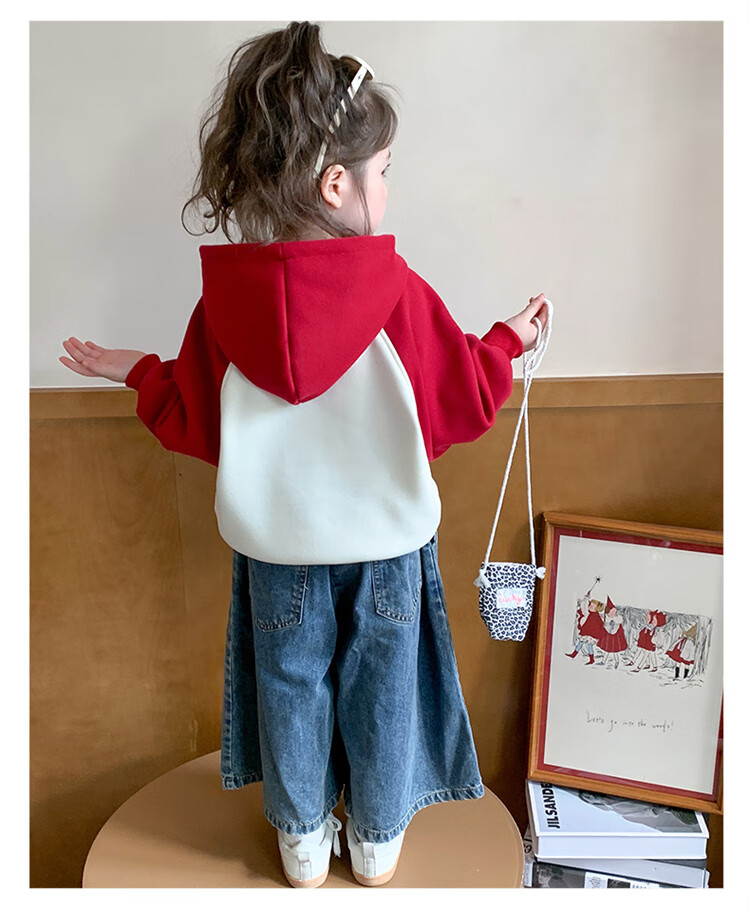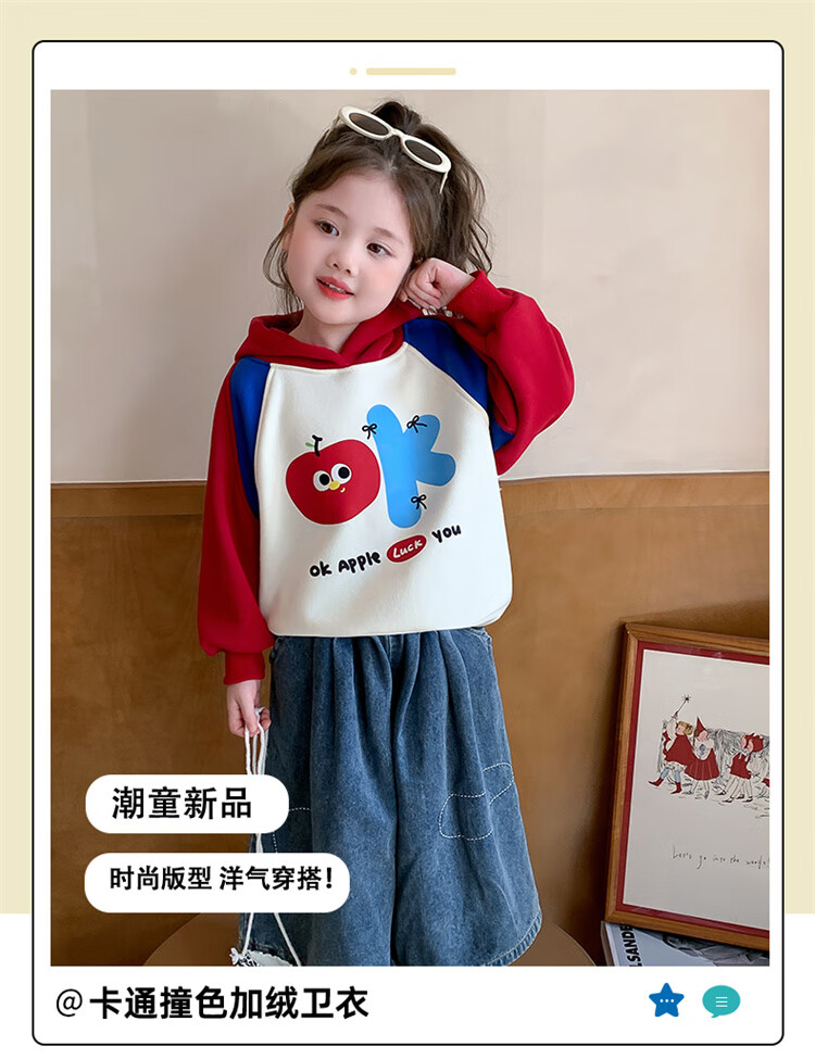Xiaohongshu hot style girls autumn and winter contrasting color velvet sweatshirt 2025 new style children's style baby thickened and warm picture color cm1 100