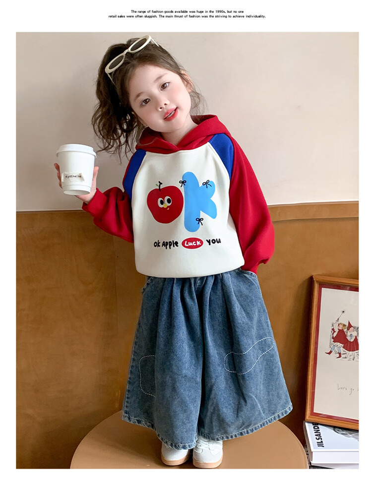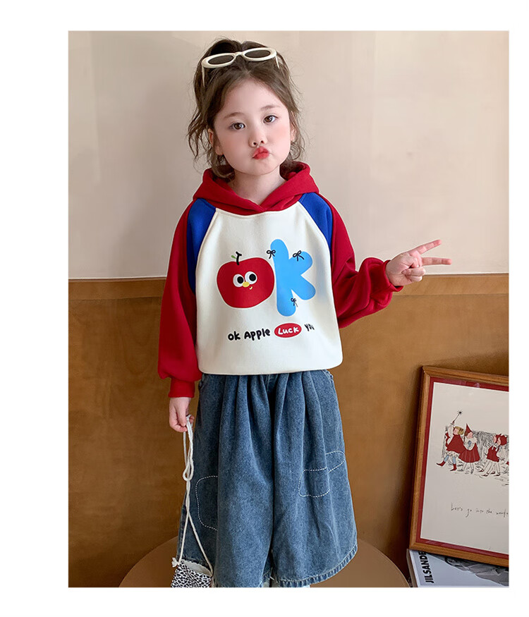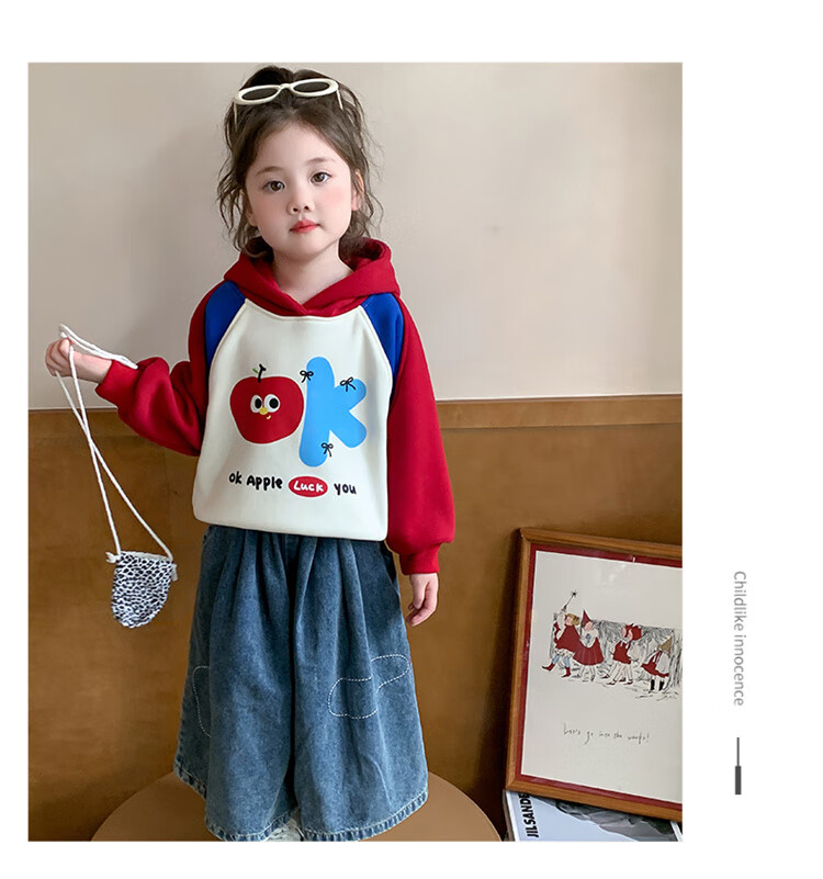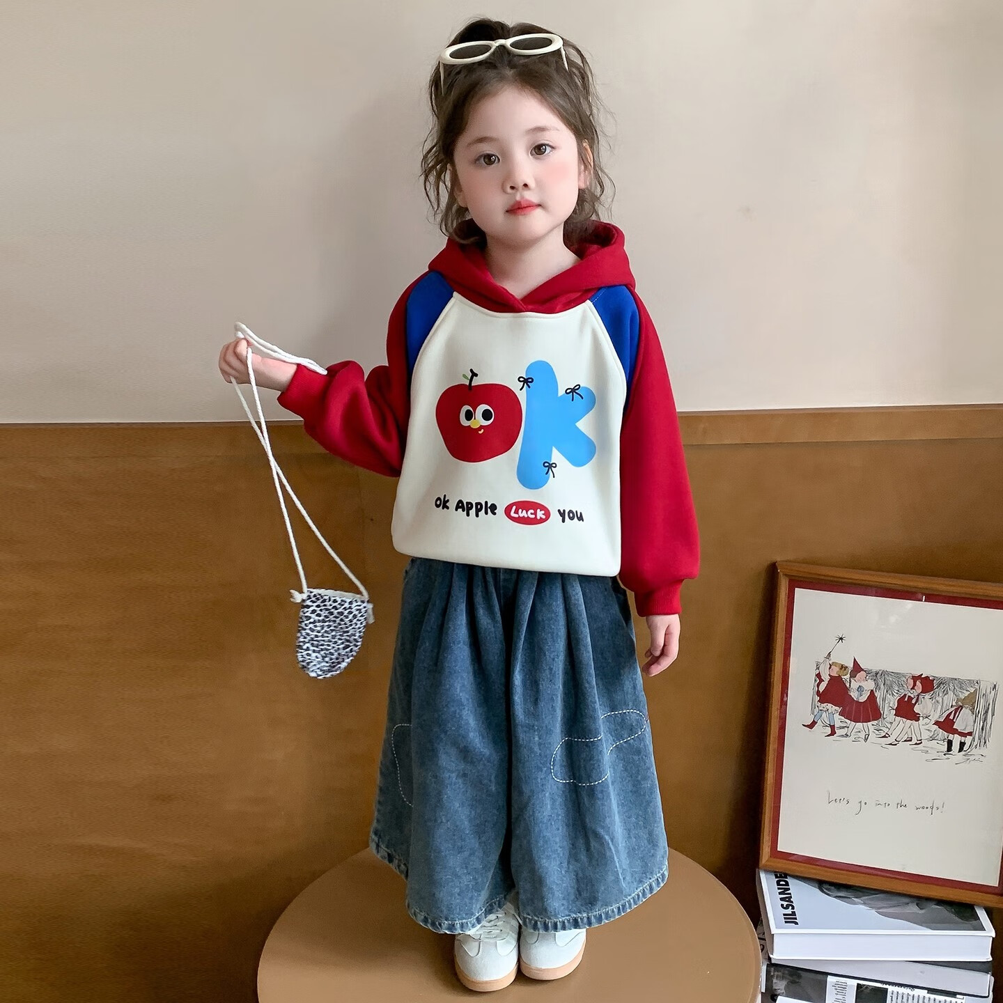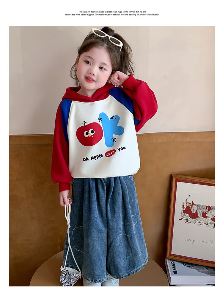 Xiaohongshu hot style girls autumn and winter contrasting color velvet sweatshirt 2025 new style children's style baby thickened and warm picture color cm1 100