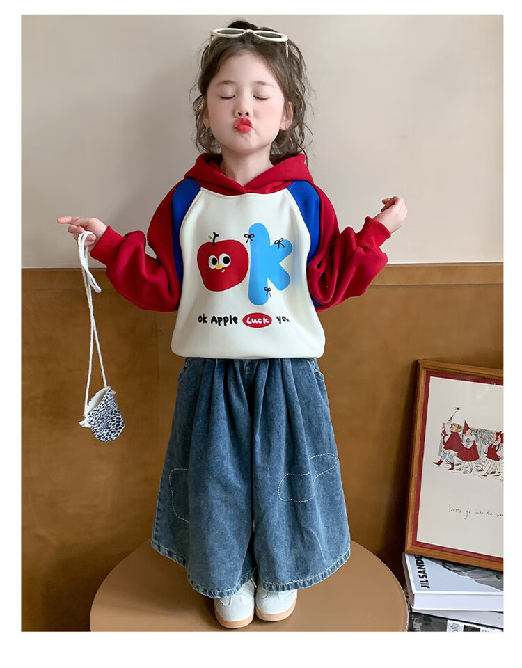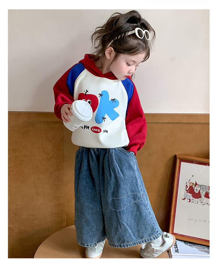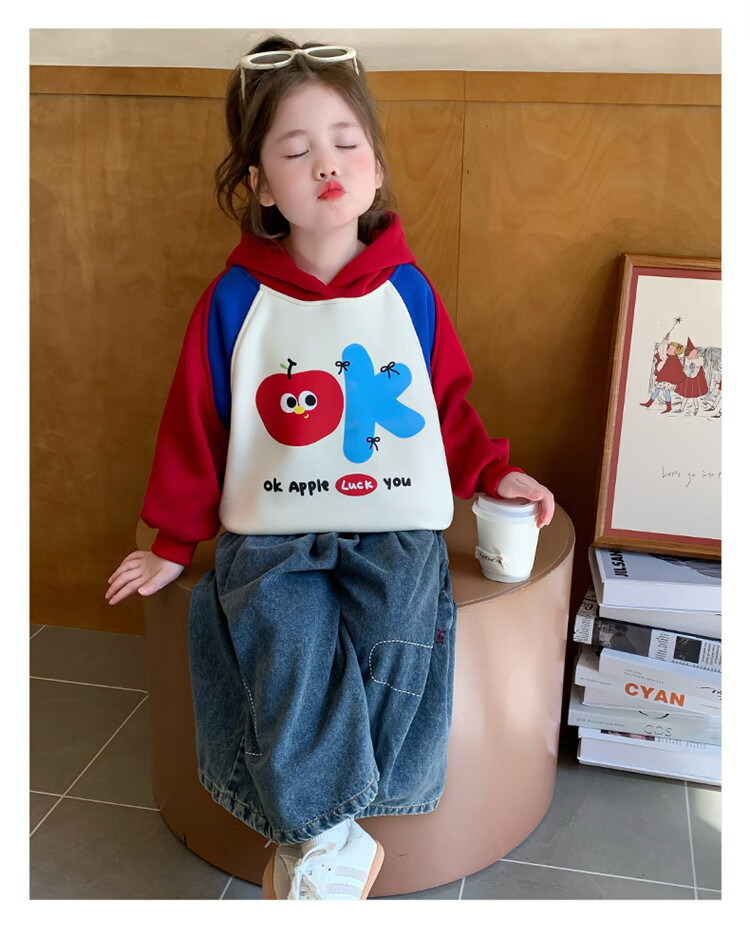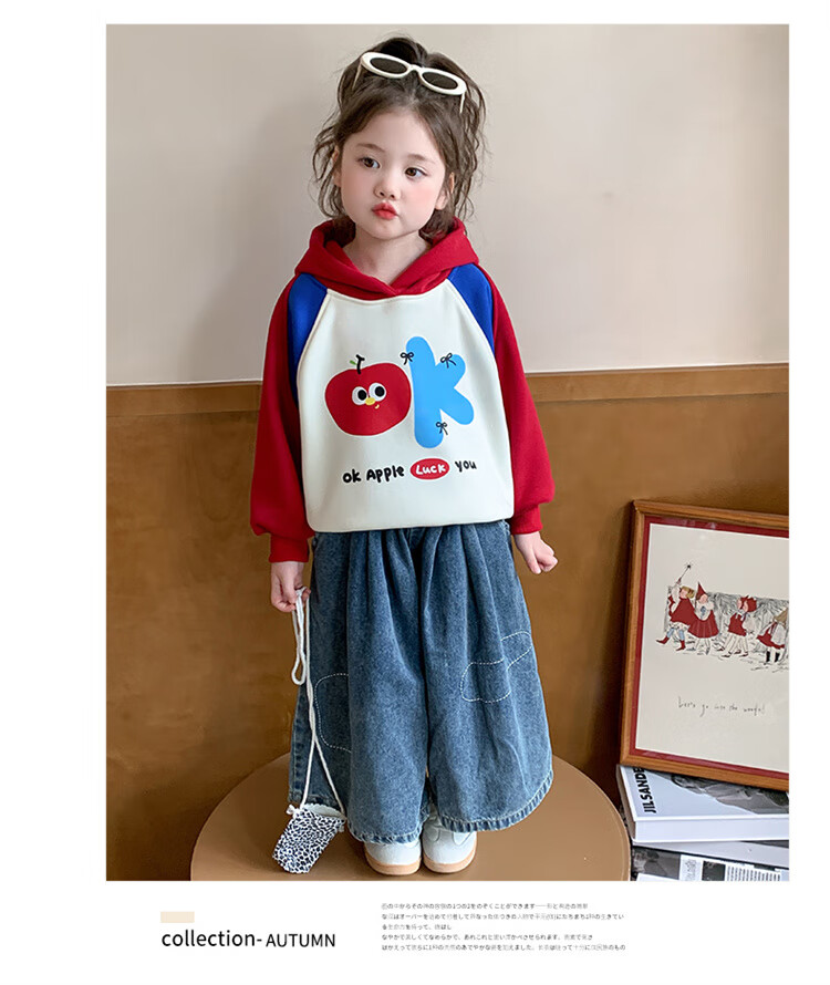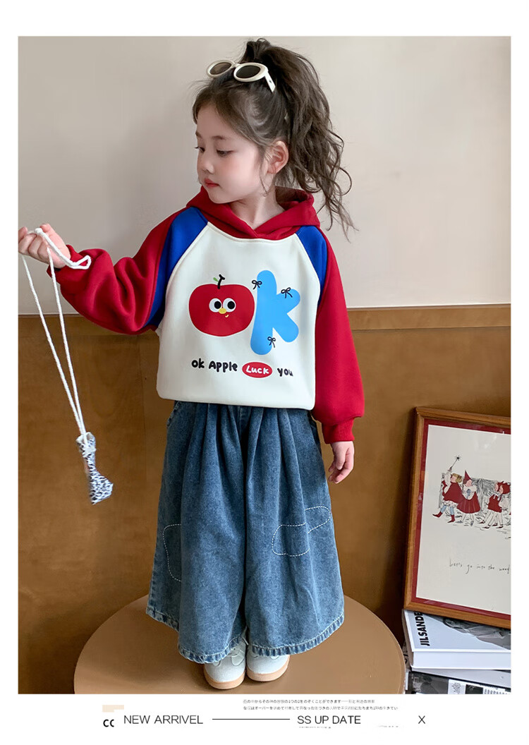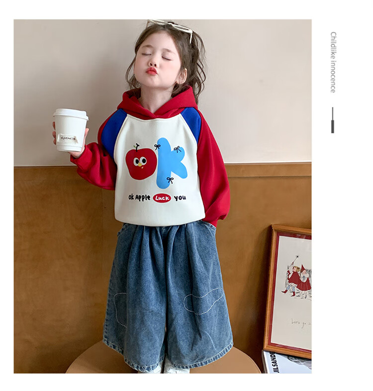 Xiaohongshu hot style girls autumn and winter contrasting color velvet sweatshirt 2025 new style children's style baby thickened and warm picture color cm1 100