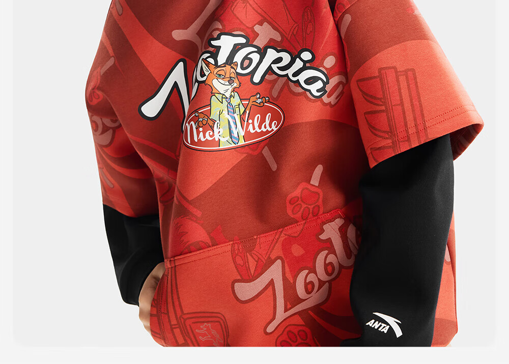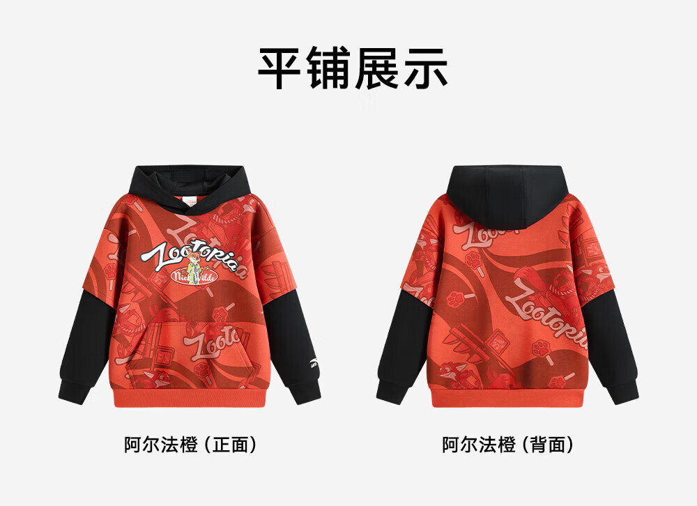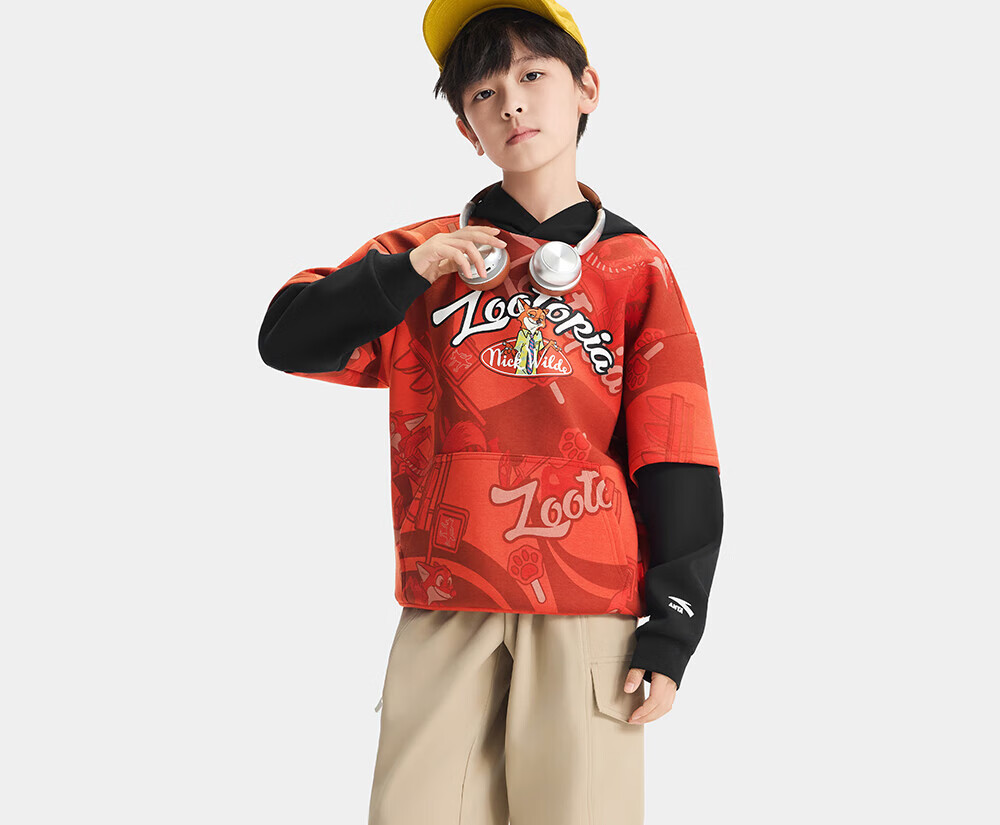 ANTA Children's Sweater Men's Big Children's Clothing Zootopia 2026 Spring New Hooded Pullover 352618748S Alpha Orange 160