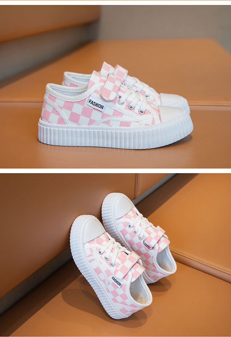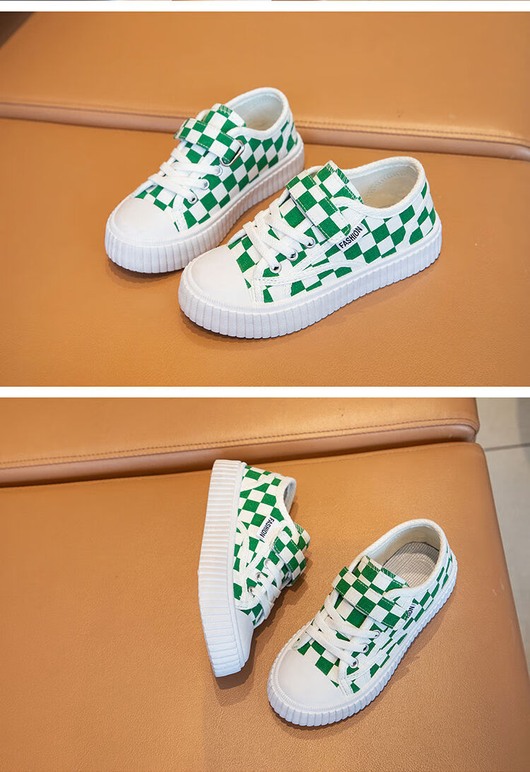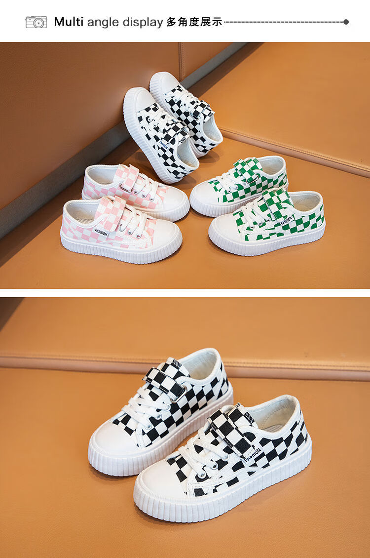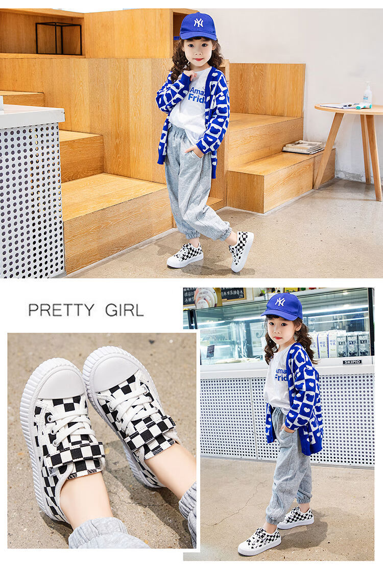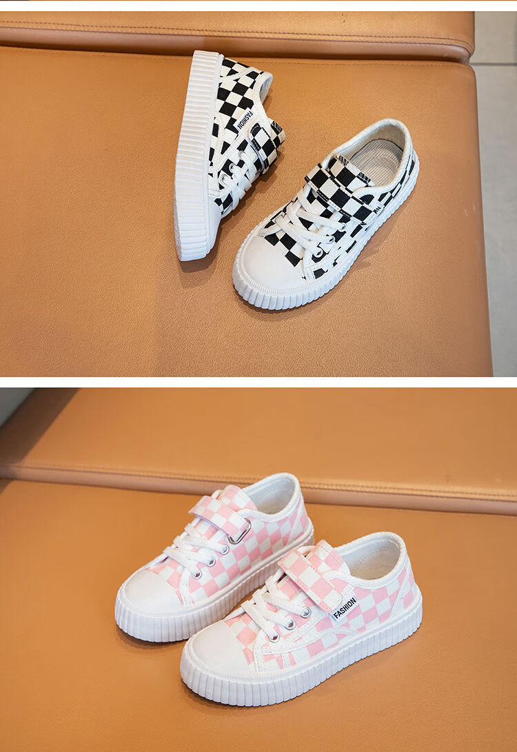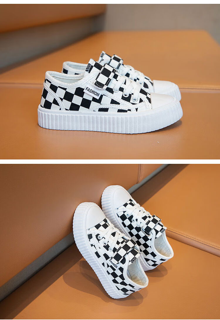Children's canvas shoes 2025 spring and autumn new student shoes boys plaid sports shoes girls soft bottom low-top sneakers QC-A58 black 35 size 35 shoes inner length 21 points 5cm