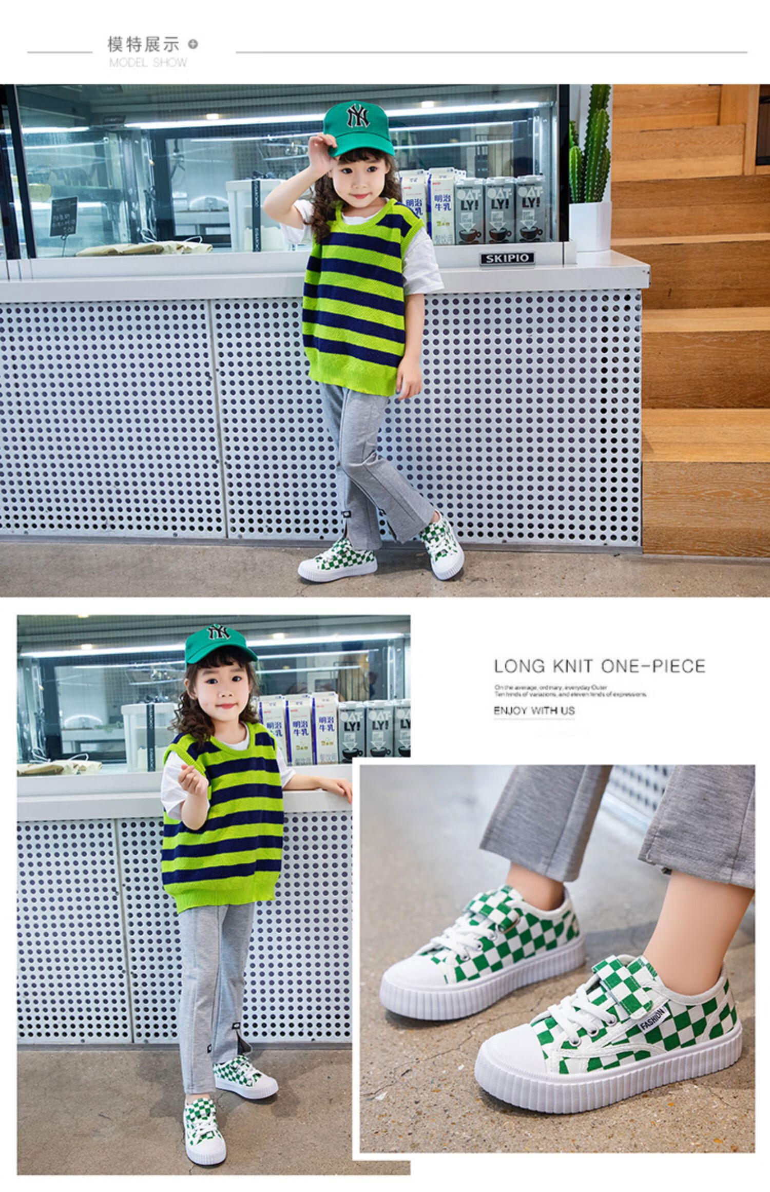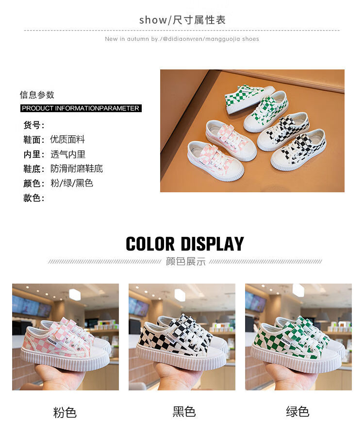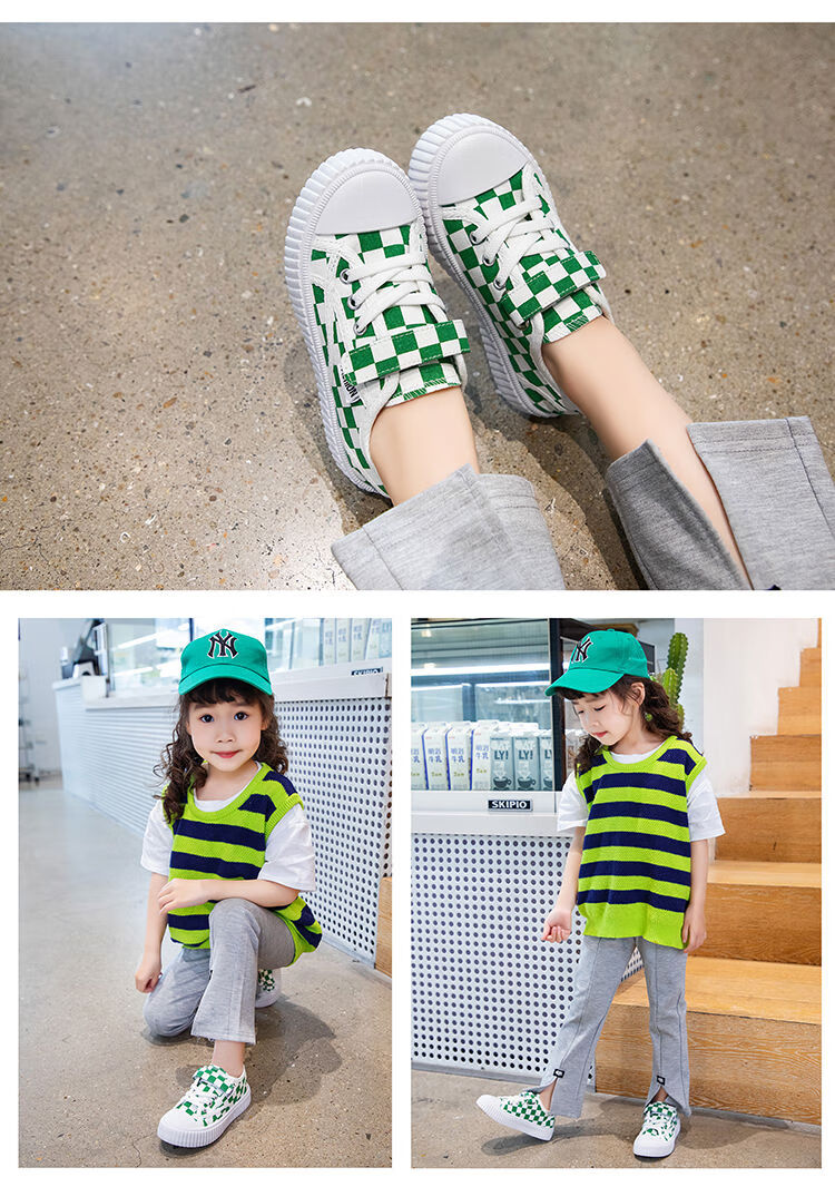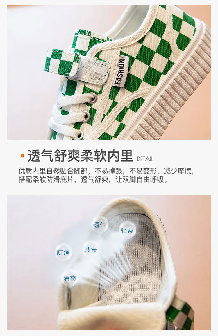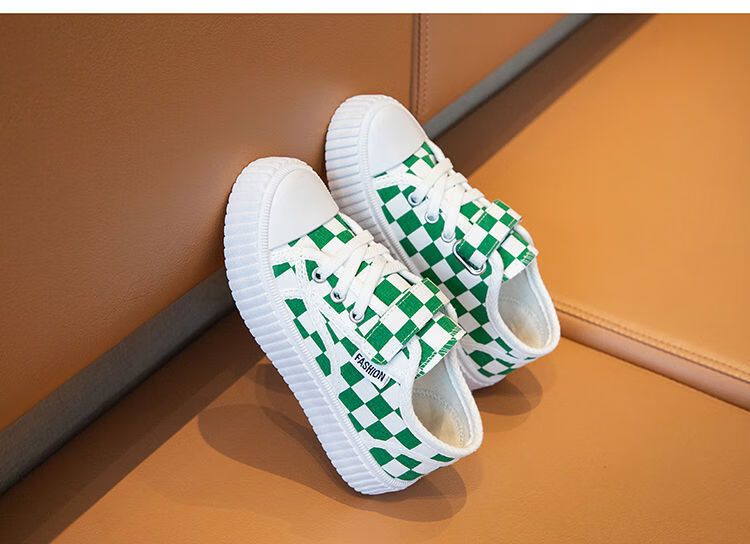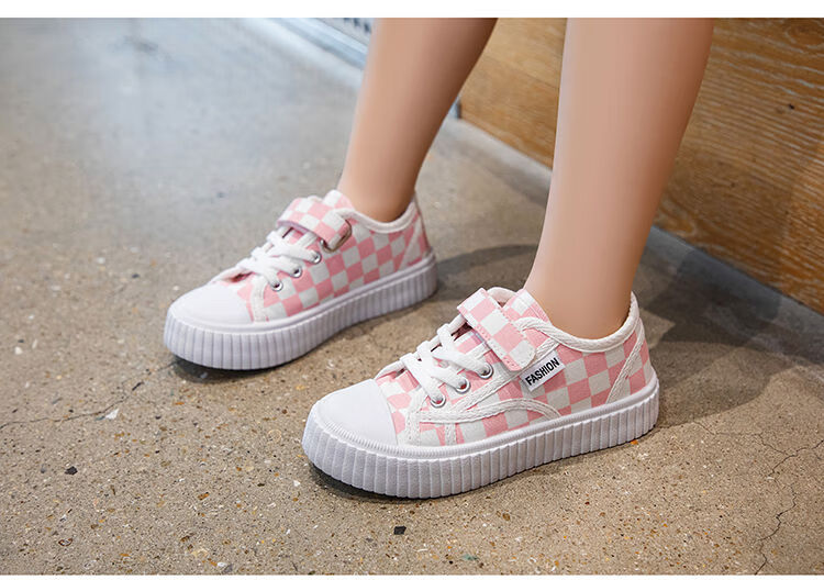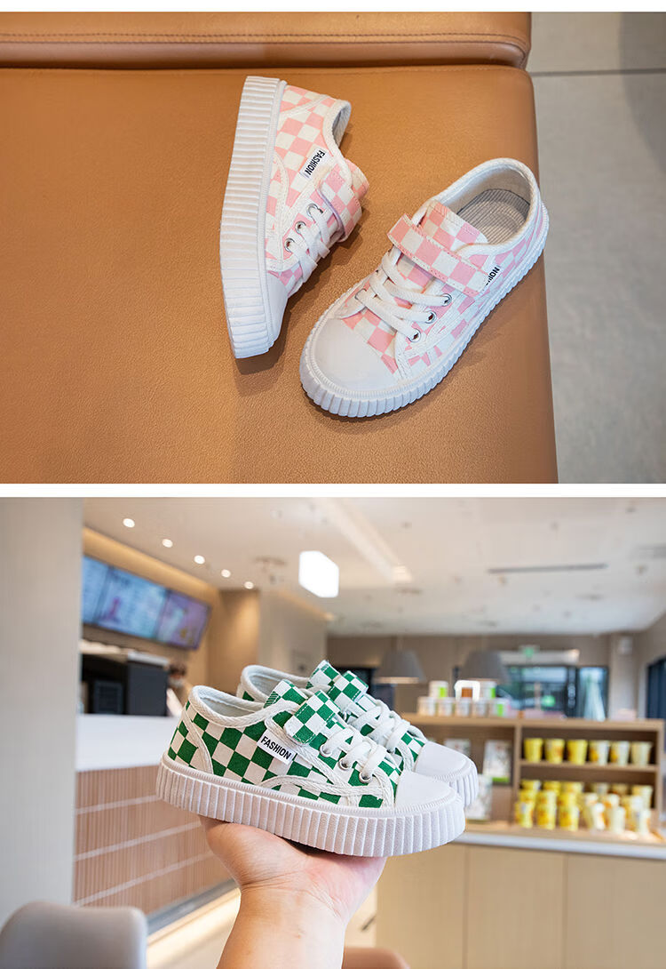 Children's canvas shoes 2025 spring and autumn new student shoes boys plaid sports shoes girls soft bottom low-top sneakers QC-A58 black 35 size 35 shoes inner length 21 points 5cm