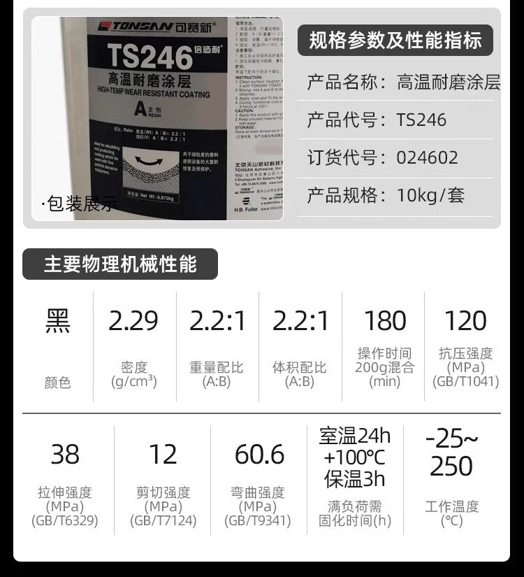 Ts226228 wear-resistant coating silicon carbide industrial metal anti-rust coating wear-resistant ceramic particle glue TS2282kg