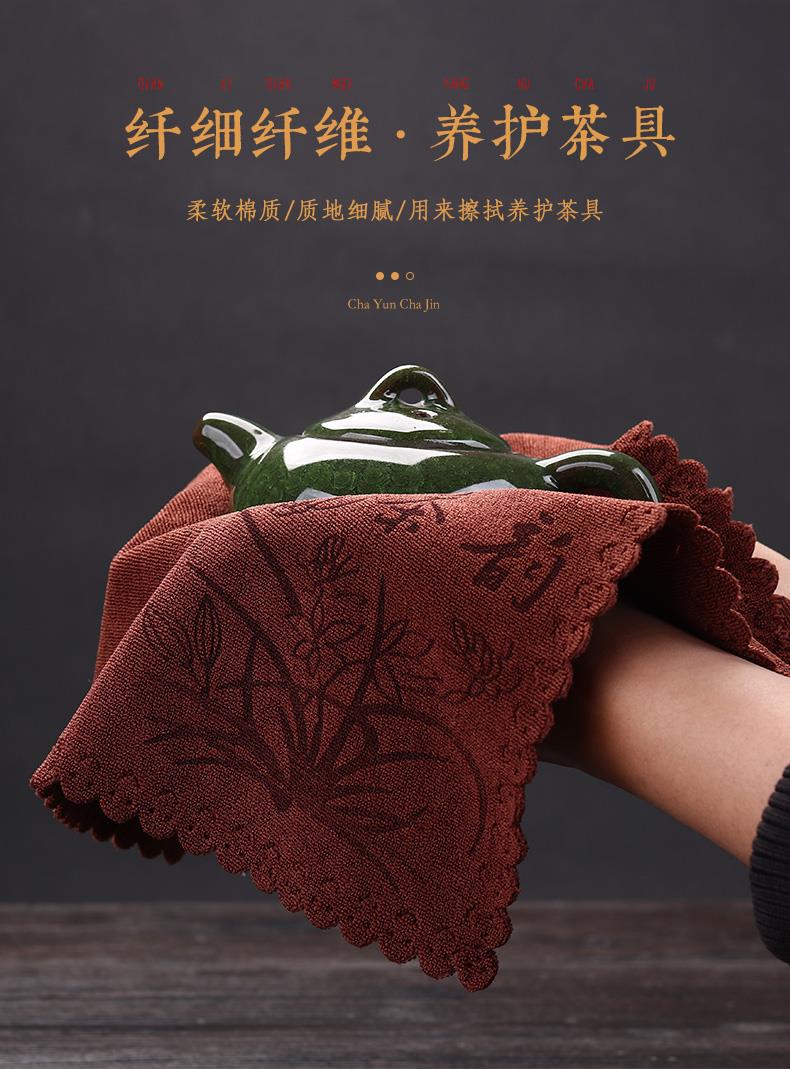 Fantasy high-end tea cloth absorbent and thickened tea towel Kung Fu tea set towel coffee table tea 30*30cm coffee color 6 times absorbent 2 pieces