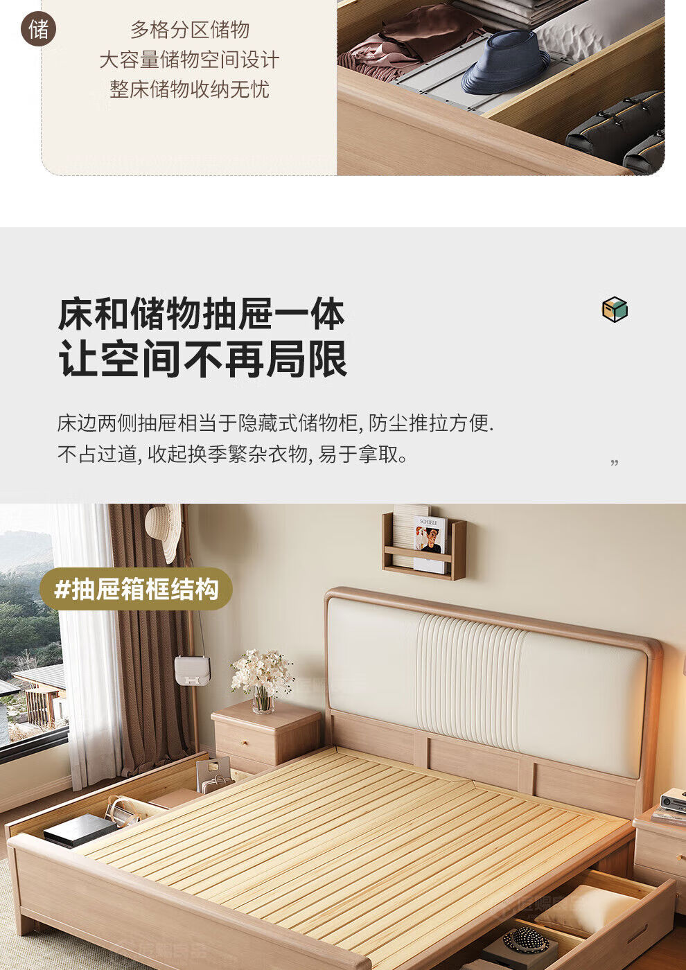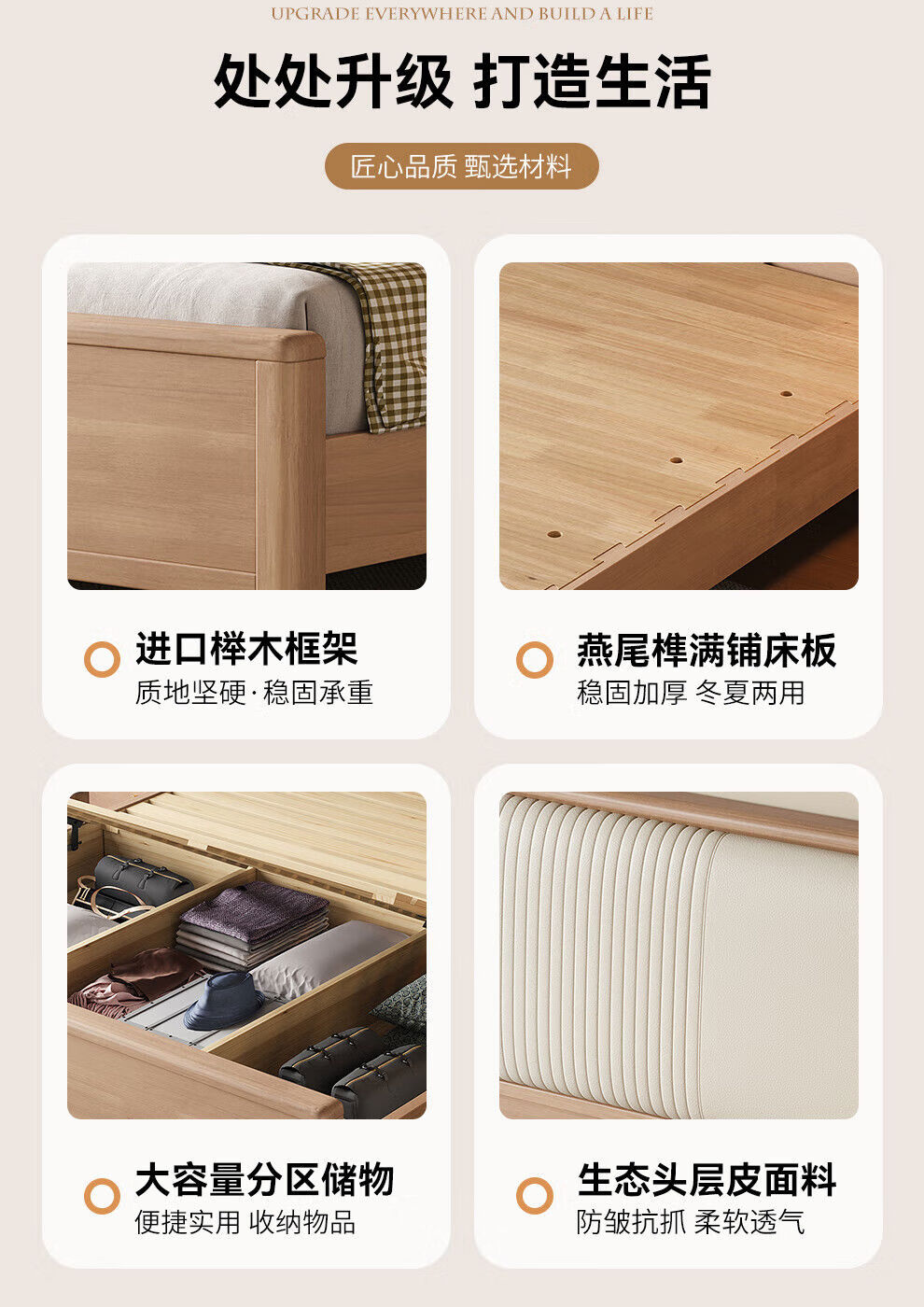 Yusenyi bed 18m double bed 15m master bedroom soft-packed large bed storage bed wedding bed bed + 10 brown cushions 15002000 frame structure + breathable bed board