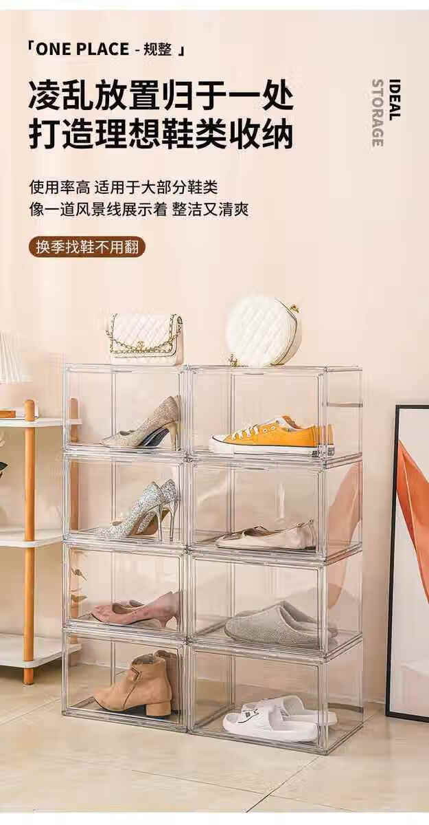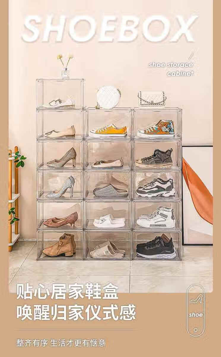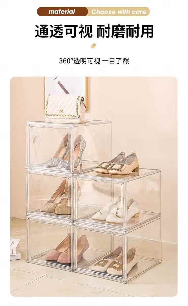 Sailotou transparent magnetic acrylic shoe box sneaker storage box thickened shoe box anti-oxidation household shoe storage 36x27x fully transparent upgraded double door thickened full HD magnetic 12 pack