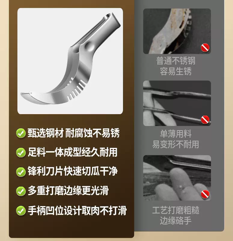 Yusenyi quick cut watermelon artifact commercial stainless steel multi-functional household fruit cutter and meat divider tool knife watermelon cutter 1 pack