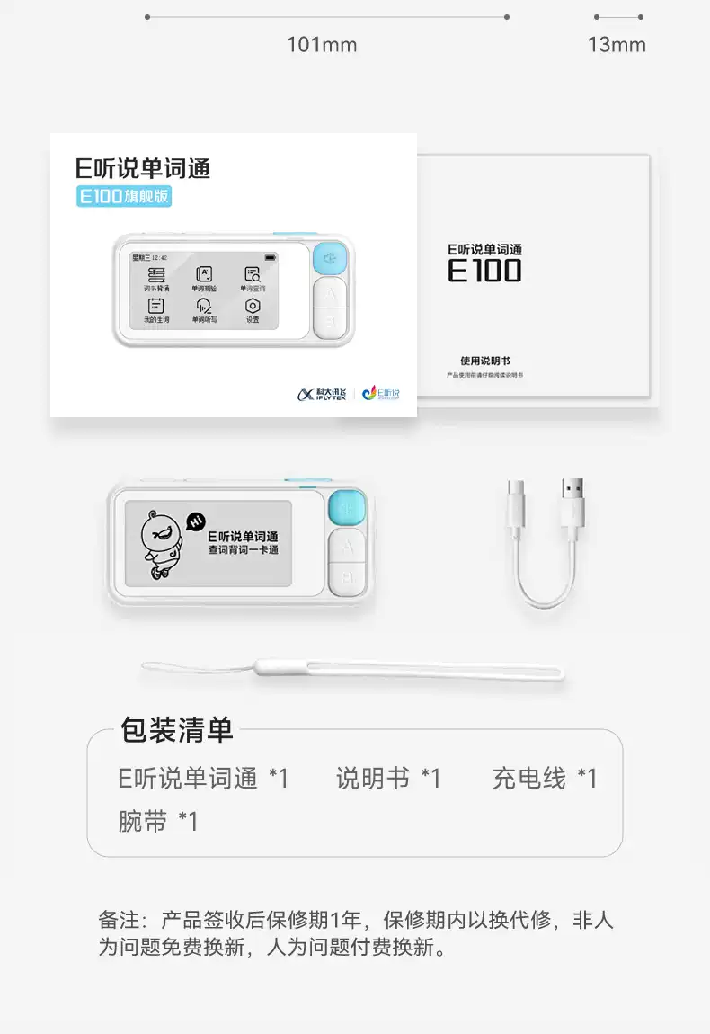 Shantou Lincun E Listening and Listening Dictionary E100 word machine real-person pronunciation word card back word ink screen English Dictionary 8G + protective case + earphones + lanyard fake one will pay ten for worry-free after-sales