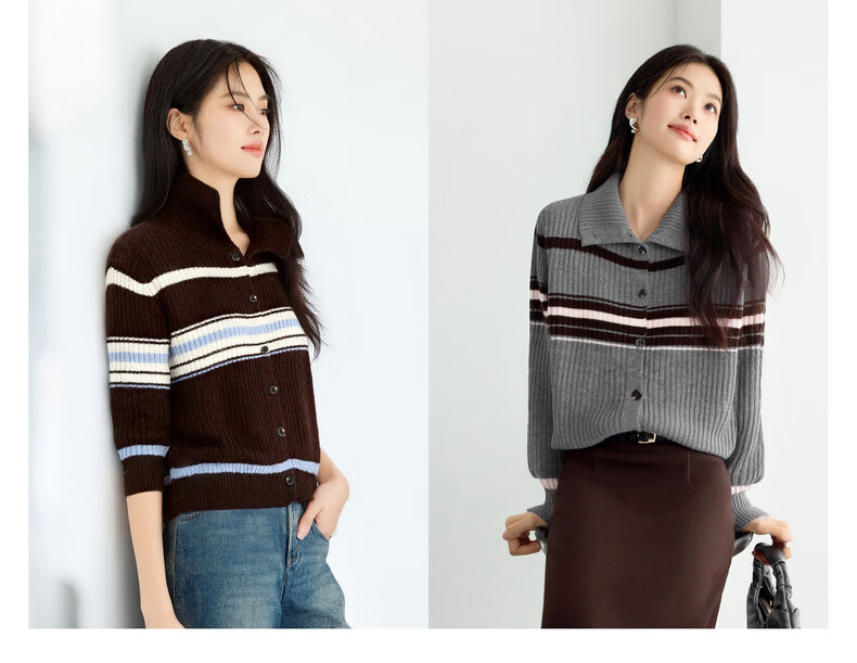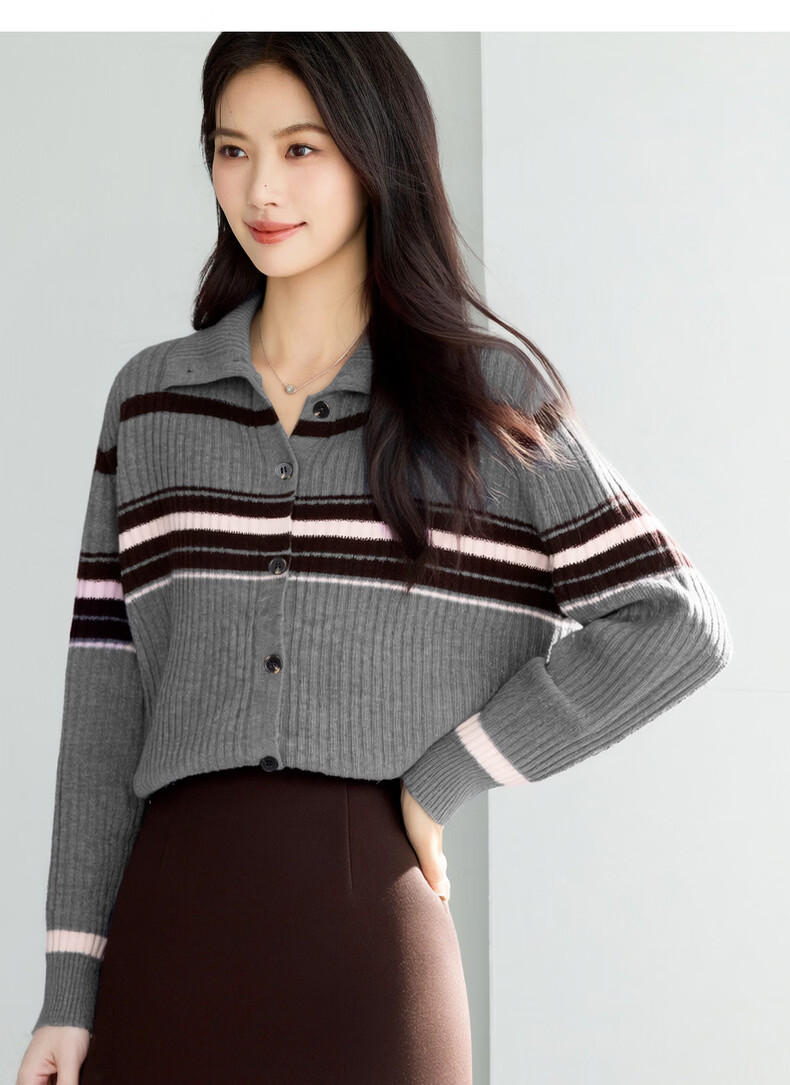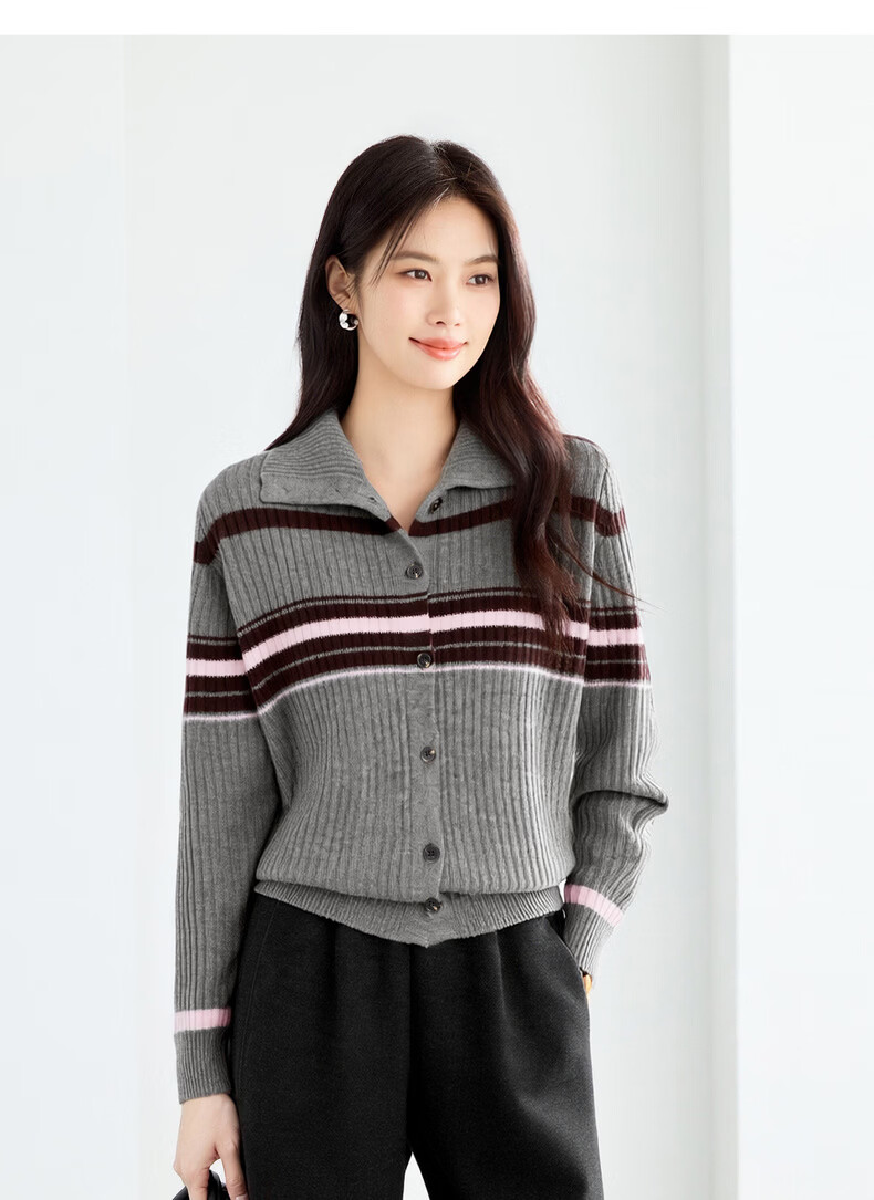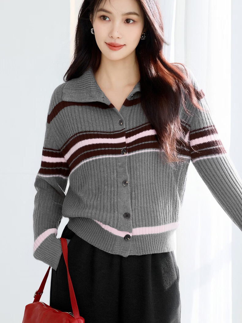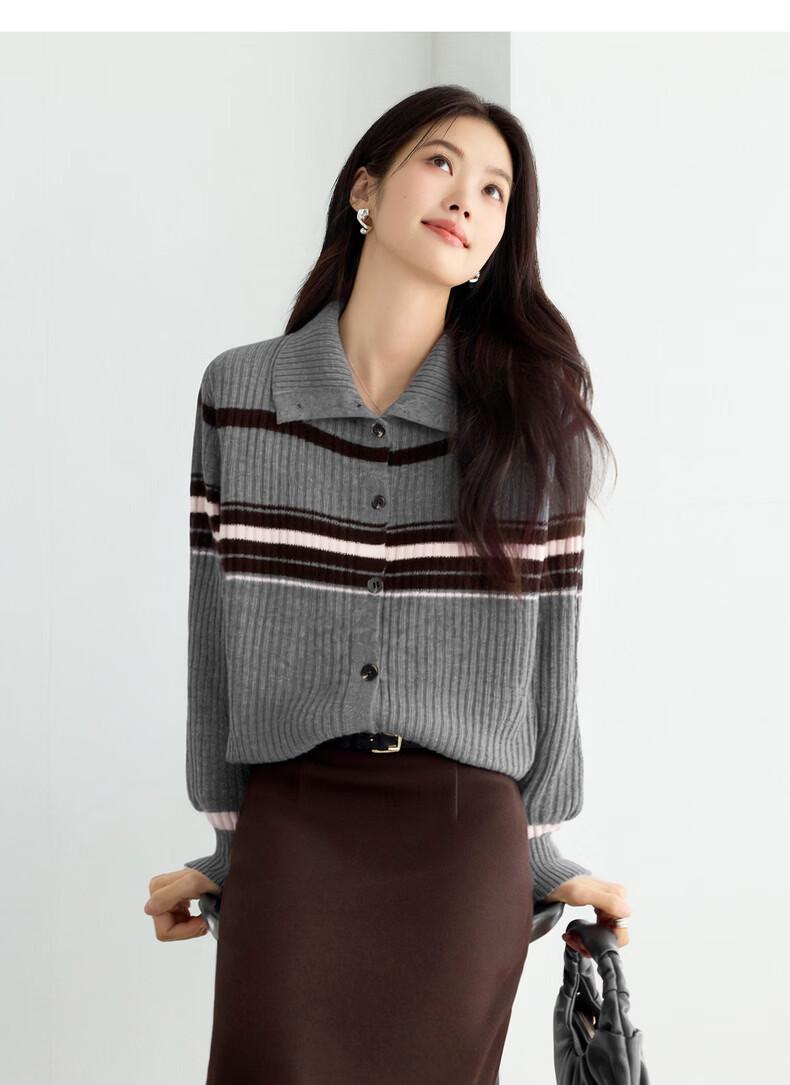 Eveli (eifini) Eveli Stripe Contrast Color Fashionable Wool Sweater Women's 2025 Winter New Versatile Casual Sweater Women Gray M