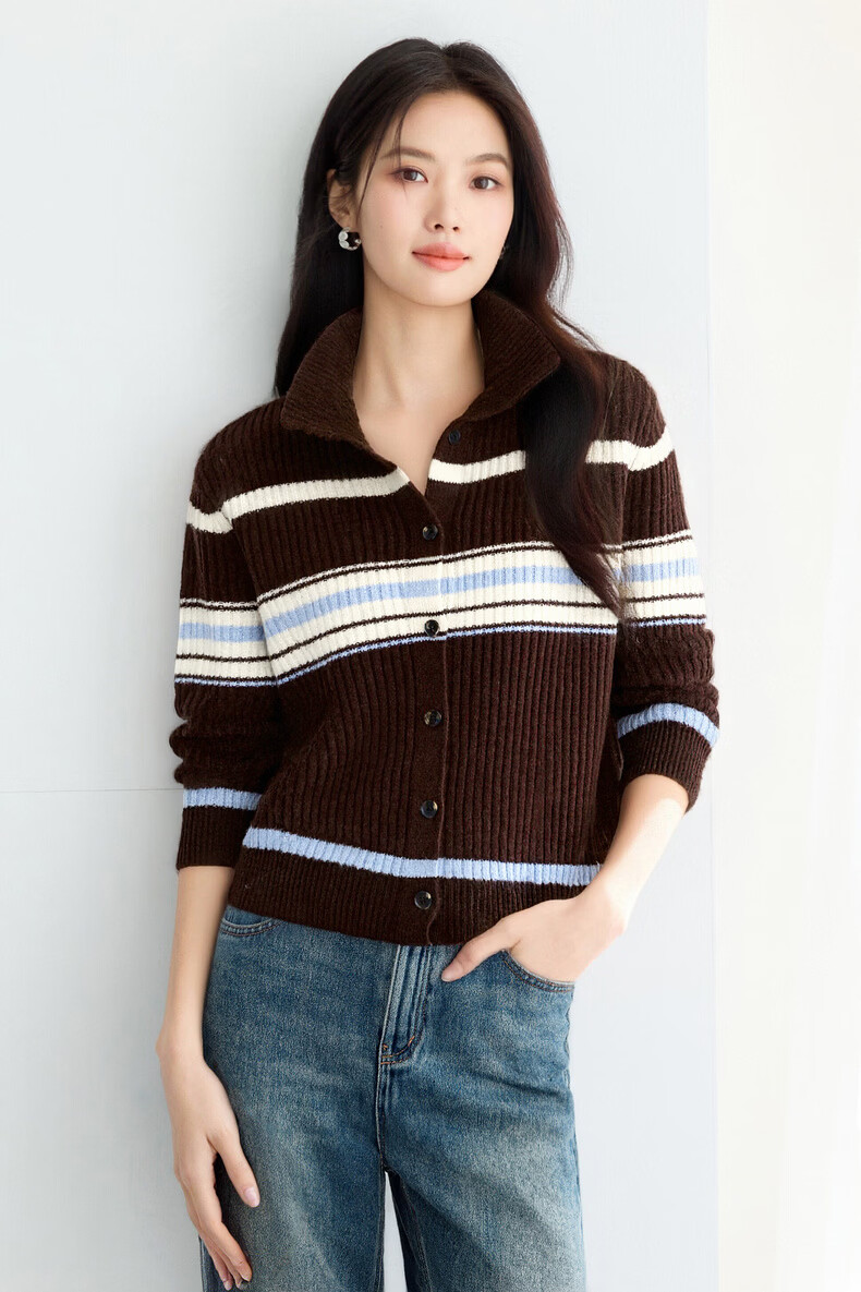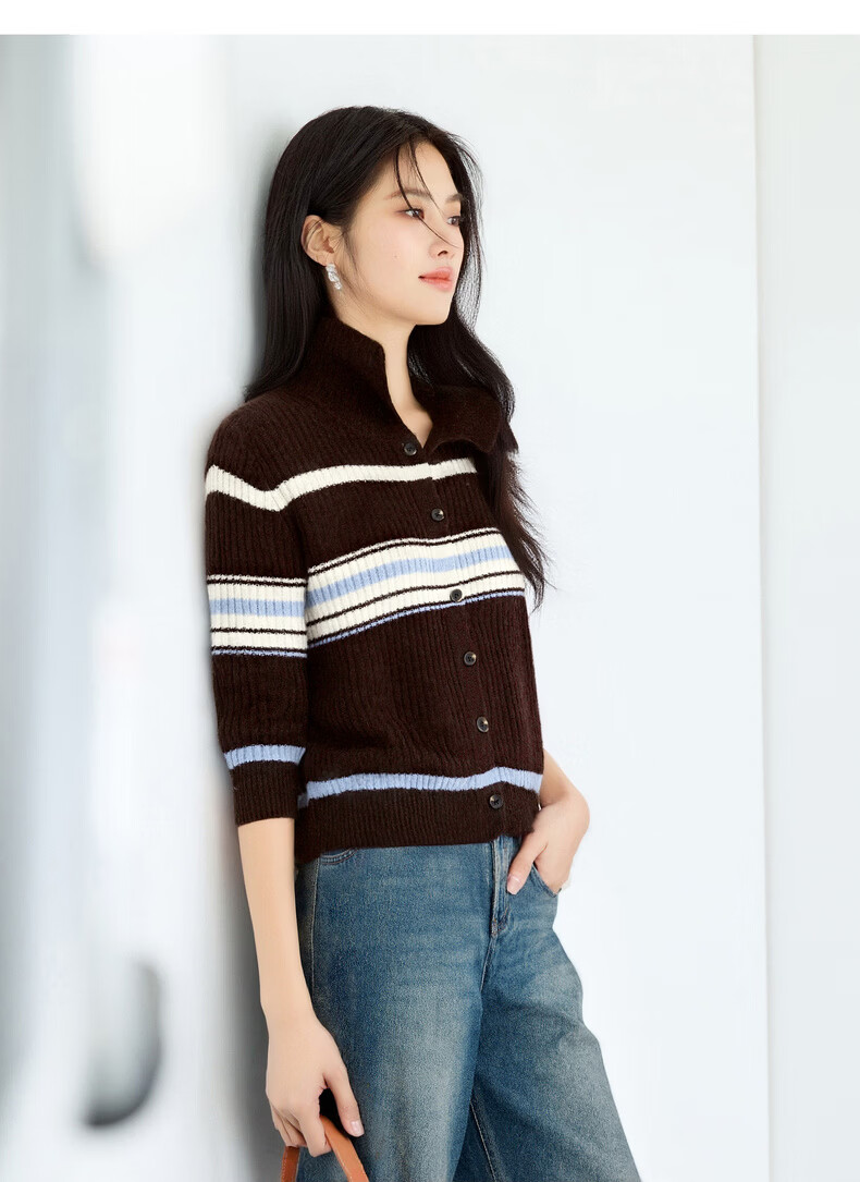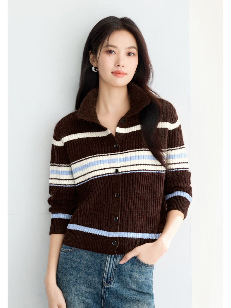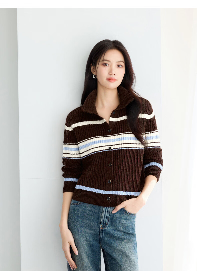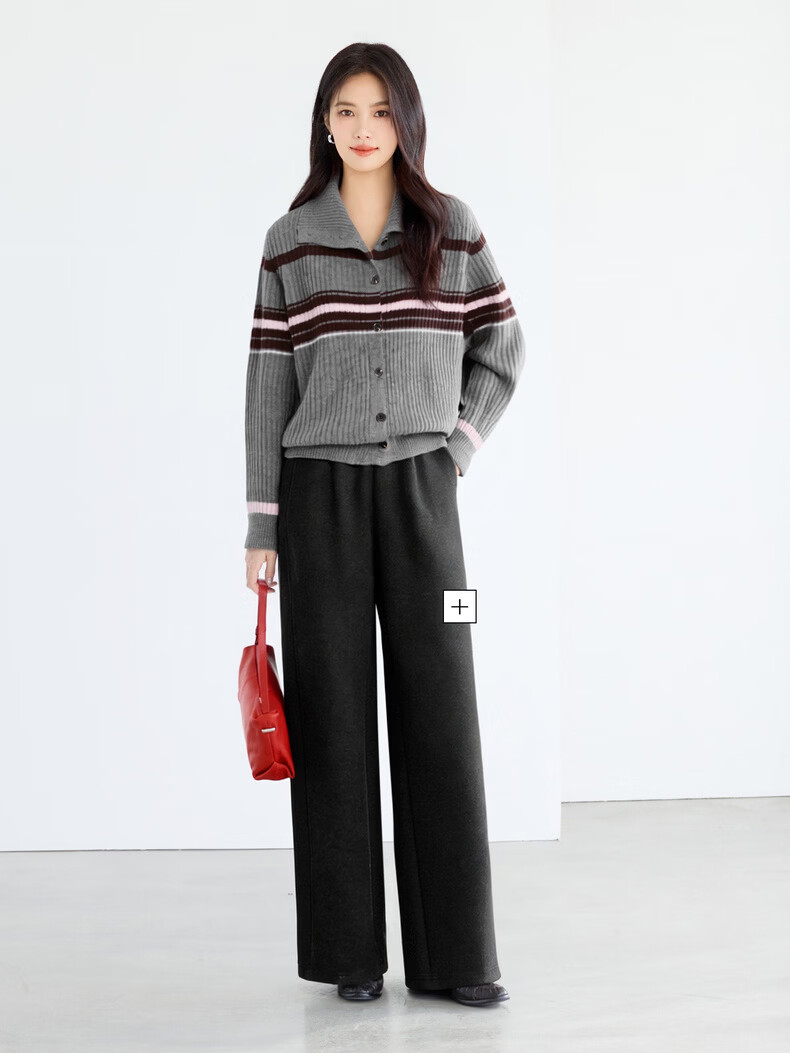 Eveli (eifini) Eveli Stripe Contrast Color Fashionable Wool Sweater Women's 2025 Winter New Versatile Casual Sweater Women Gray M