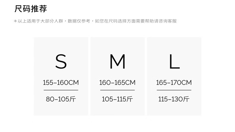 China (cm) 160-165/84-86 165-170 / 88-90 167-172 / 92-96 168-173 / 98-102 170-176 / 106-110
