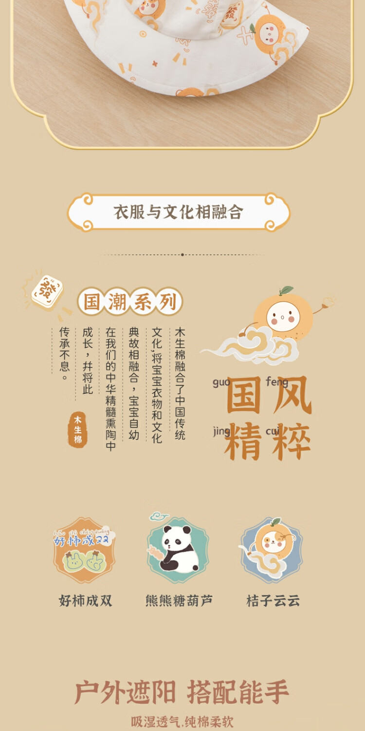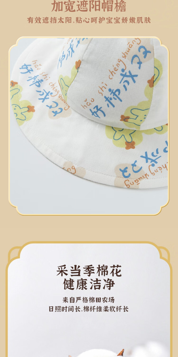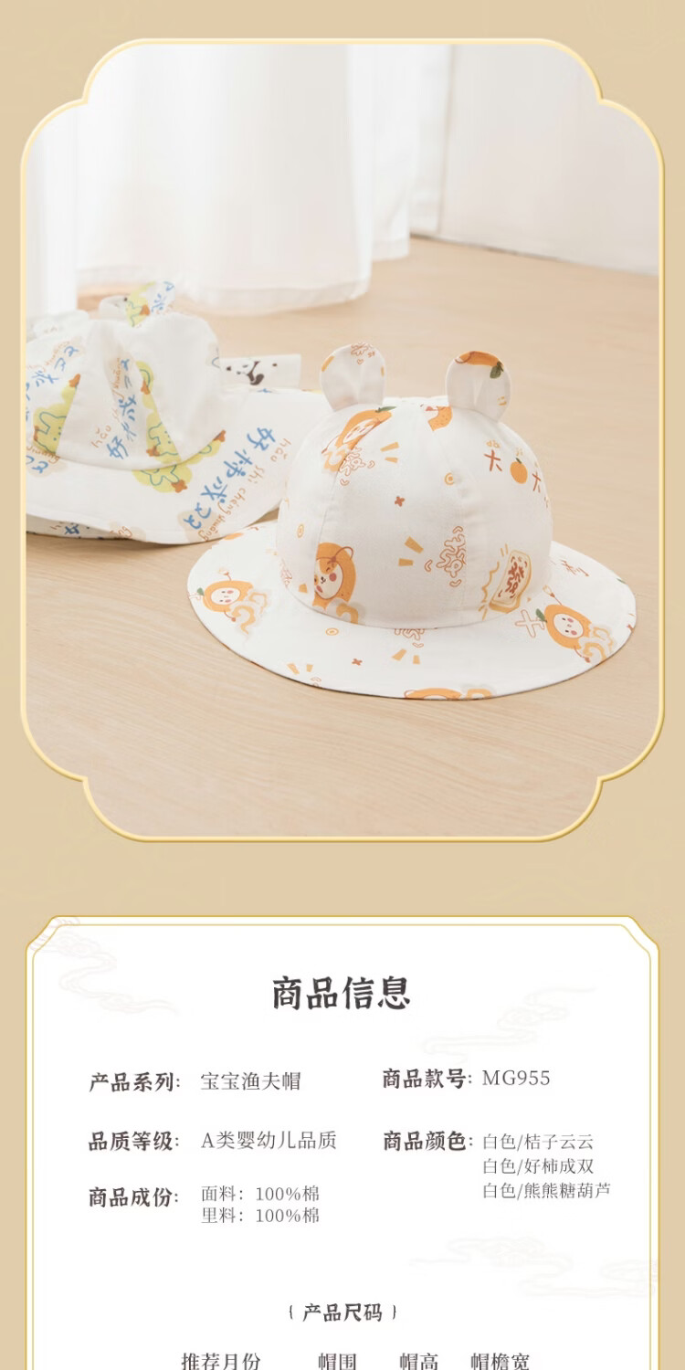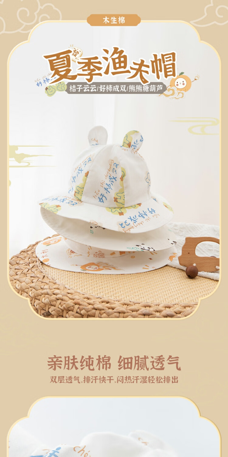Wooden cotton baby fisherman hat summer thin sun hat summer pure cotton sun hat baby sun protection hat when going out white/Hao persimmon in pairs #scln# 43CM (recommended for 3-6 months)