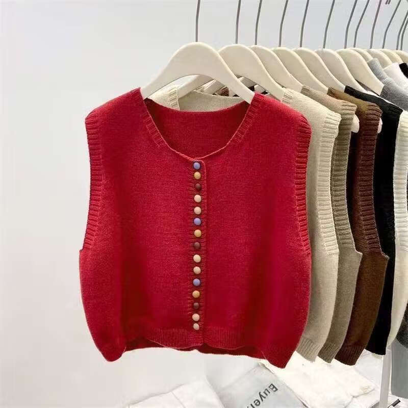 Light luxury quality, stylish rainbow button knitted round neck pullover vest, fashionable layered sweater vest, gray (high quality version) L recommended 120-150Jin Jin equals 0.5 kg
