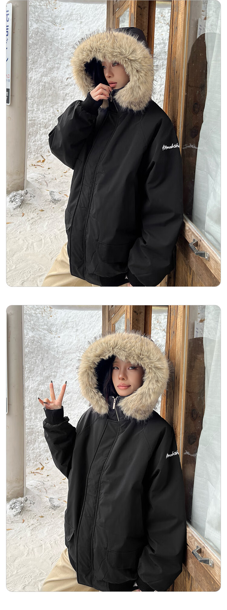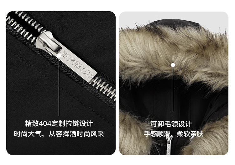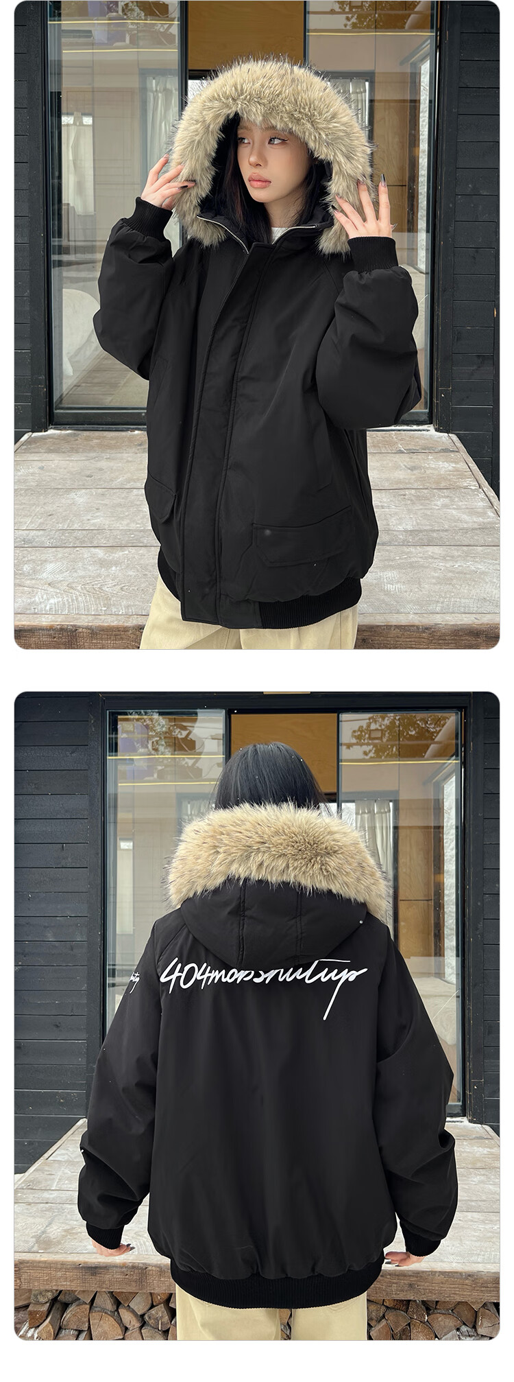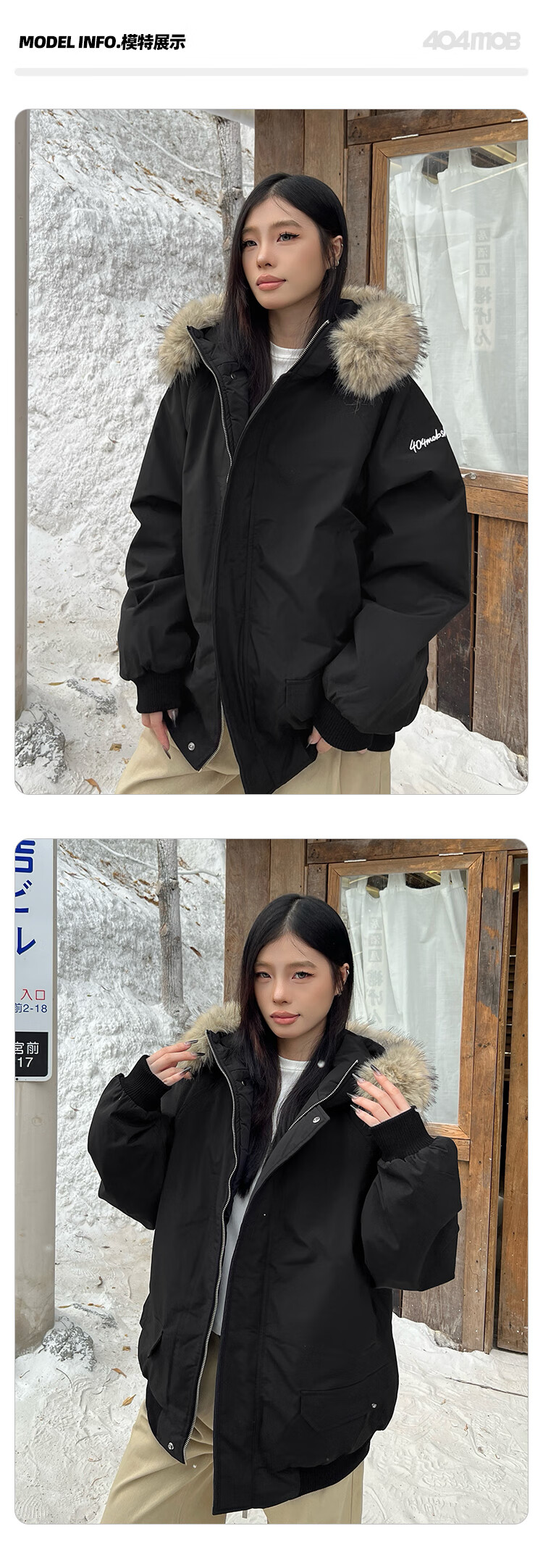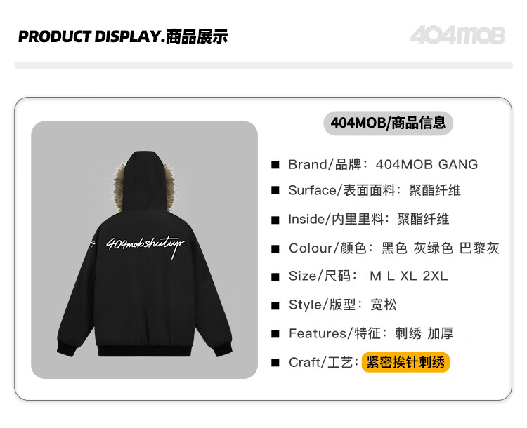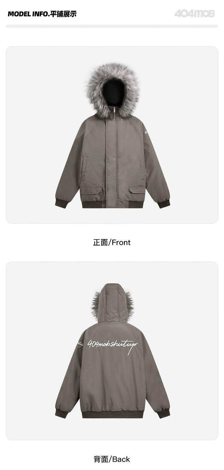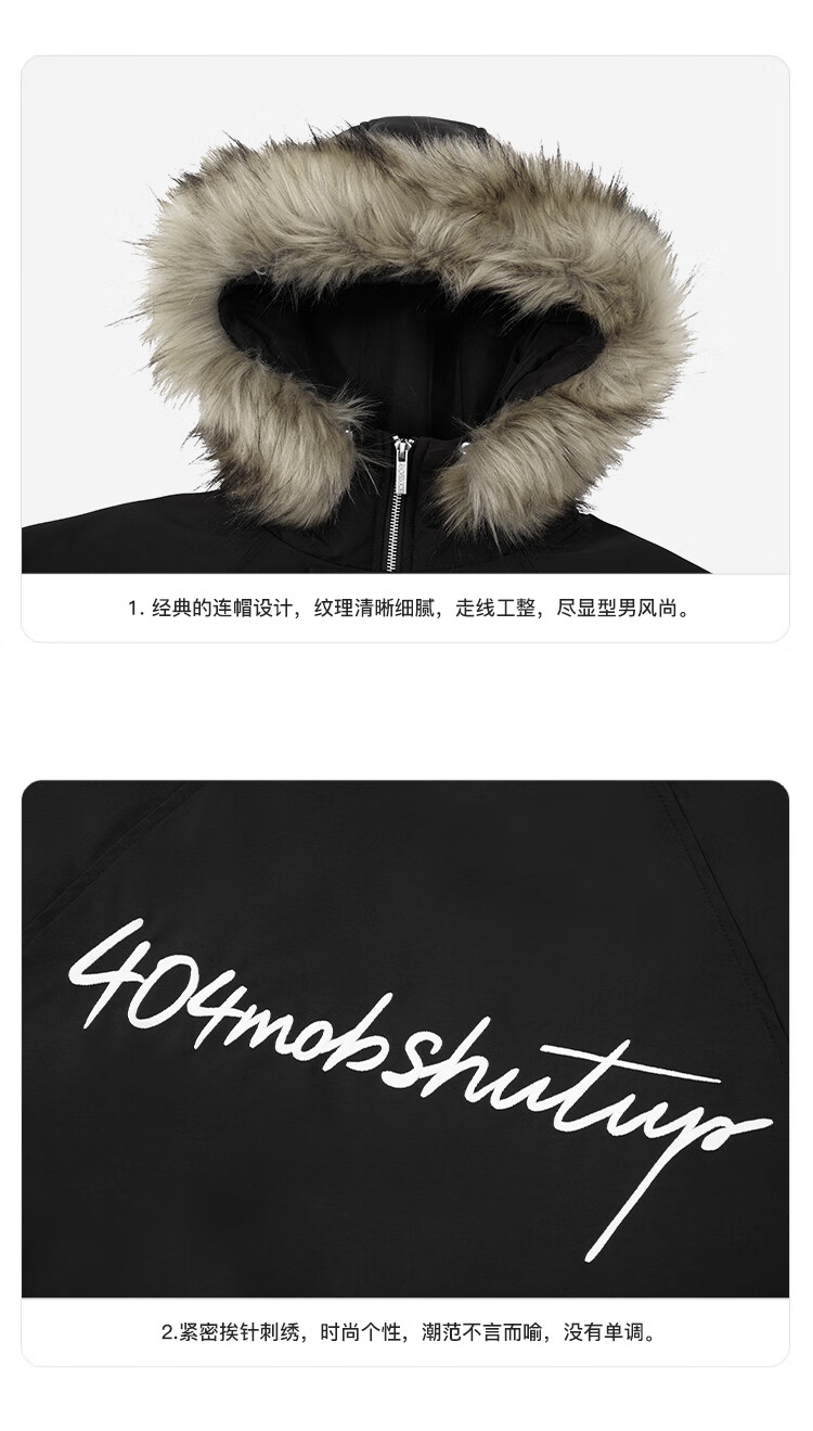 404MOBGANG American retro detachable fur collar jacket men's winter waterproof embroidery thickened warm couple cotton clothing Paris Gray L