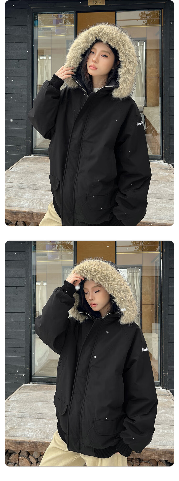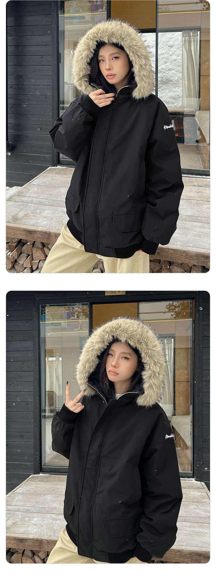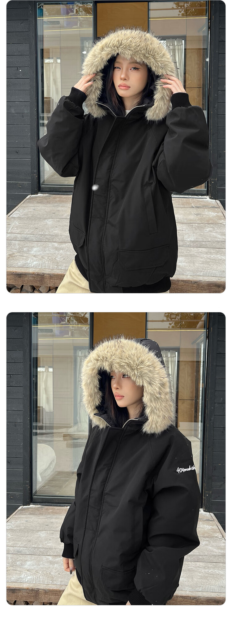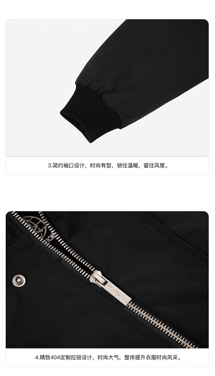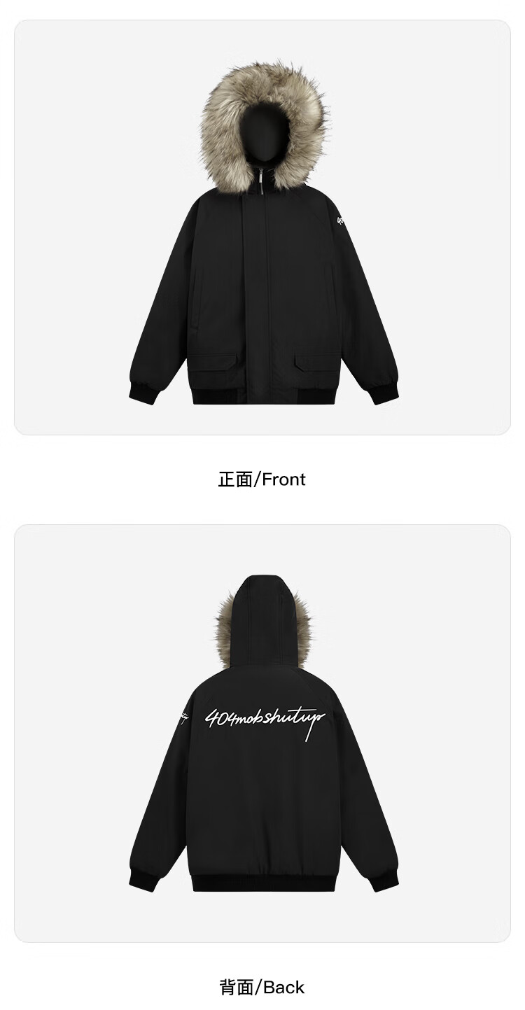 404MOBGANG American retro detachable fur collar jacket men's winter waterproof embroidery thickened warm couple cotton clothing Paris Gray L