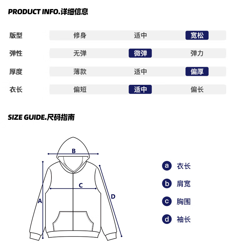 China (cm) 165 / 88-90 170 / 96-98 175 / 108-110 180 / 118-122 185 / 126-130